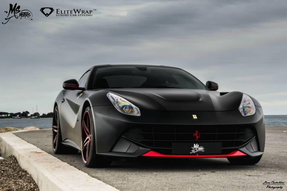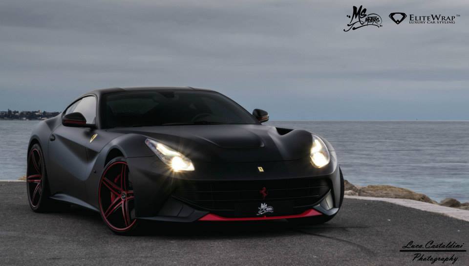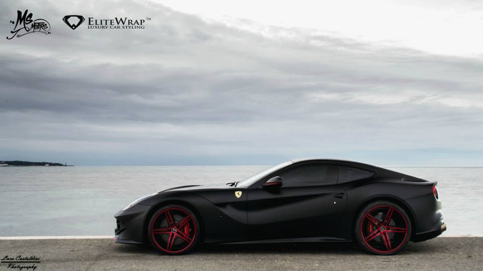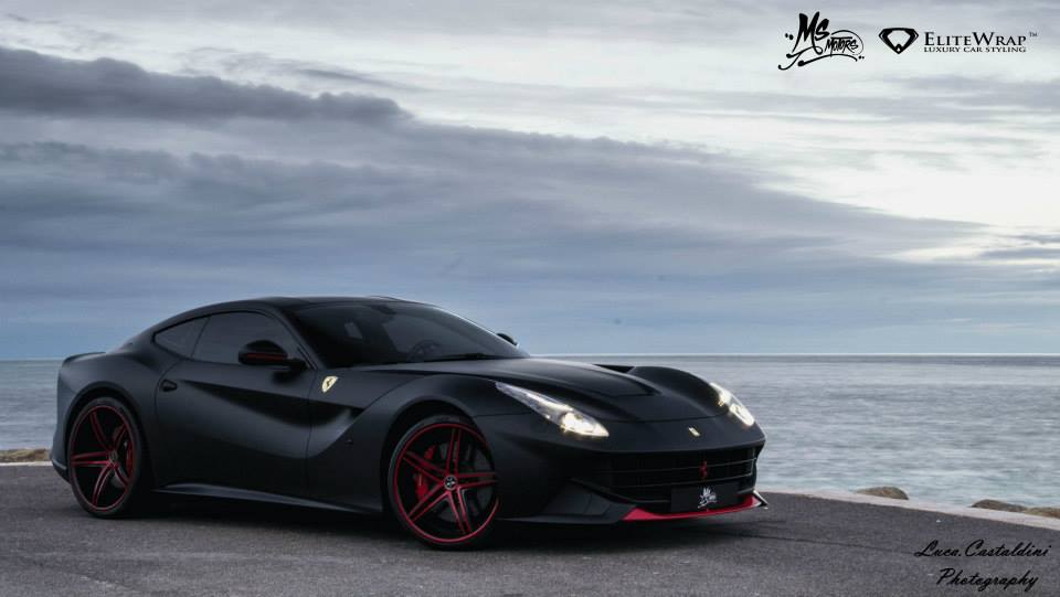 今天帶給各位由汽車貼膜專家Elite Wrap所操刀的Ferrari F12 Berlinetta,全車施以銷魂的消光黑色貼膜,前氣壩、後視鏡下緣、車頭與車尾logo等處則是以紅色處理,搭配同樣黑紅雙色的Vossen輕量化輪圈,相當與眾不同,各位喜歡嗎?