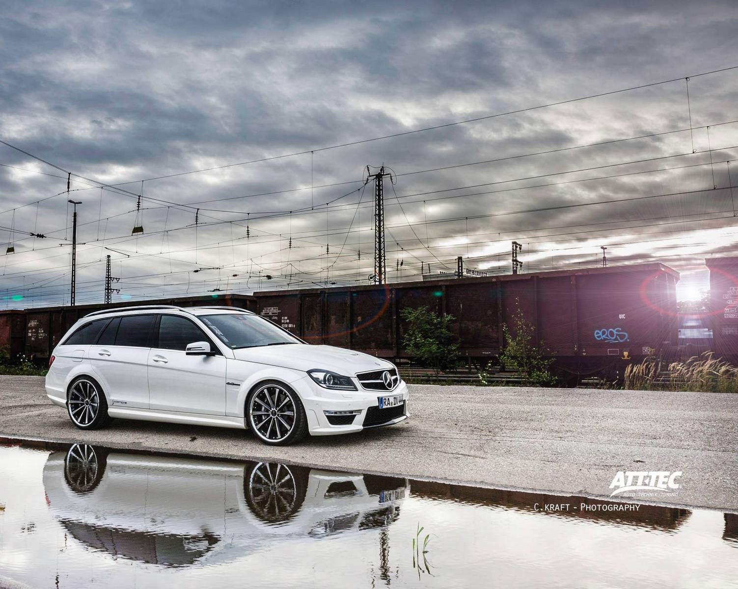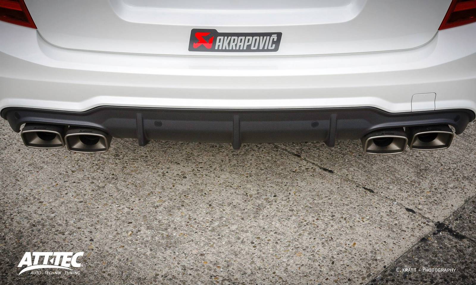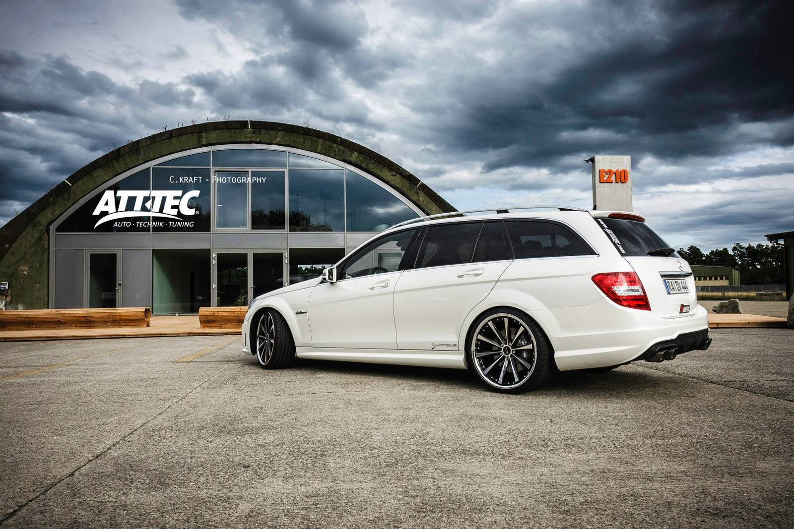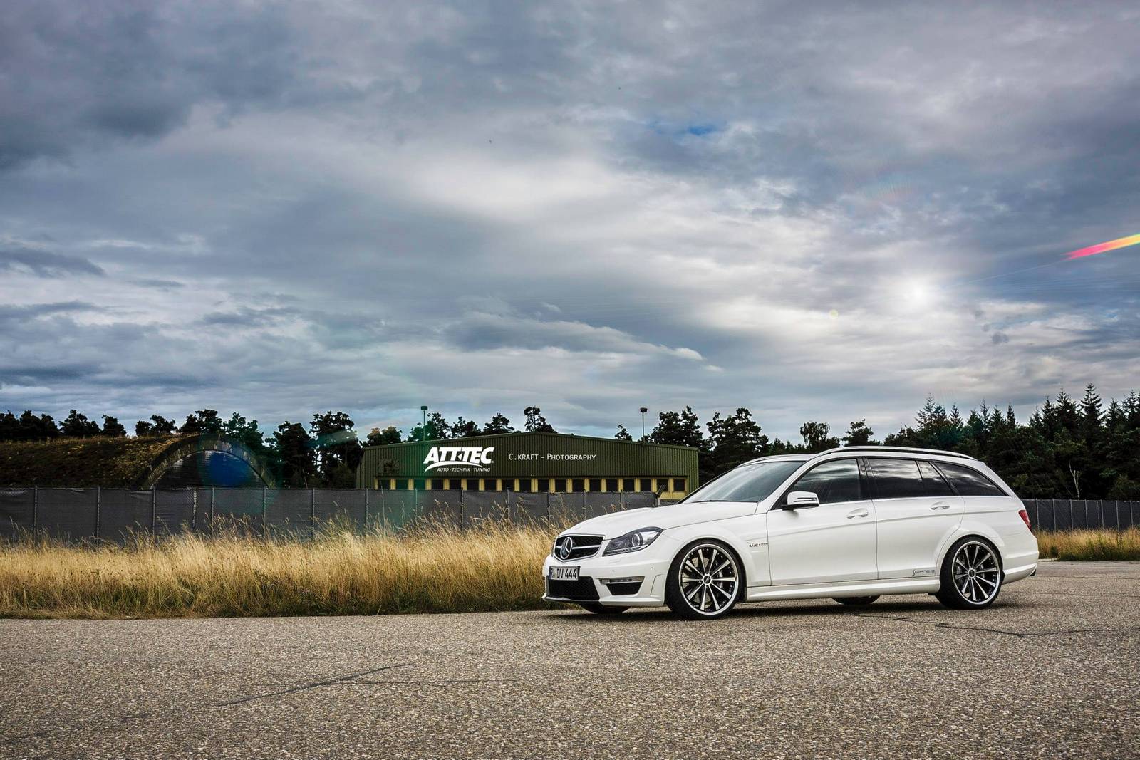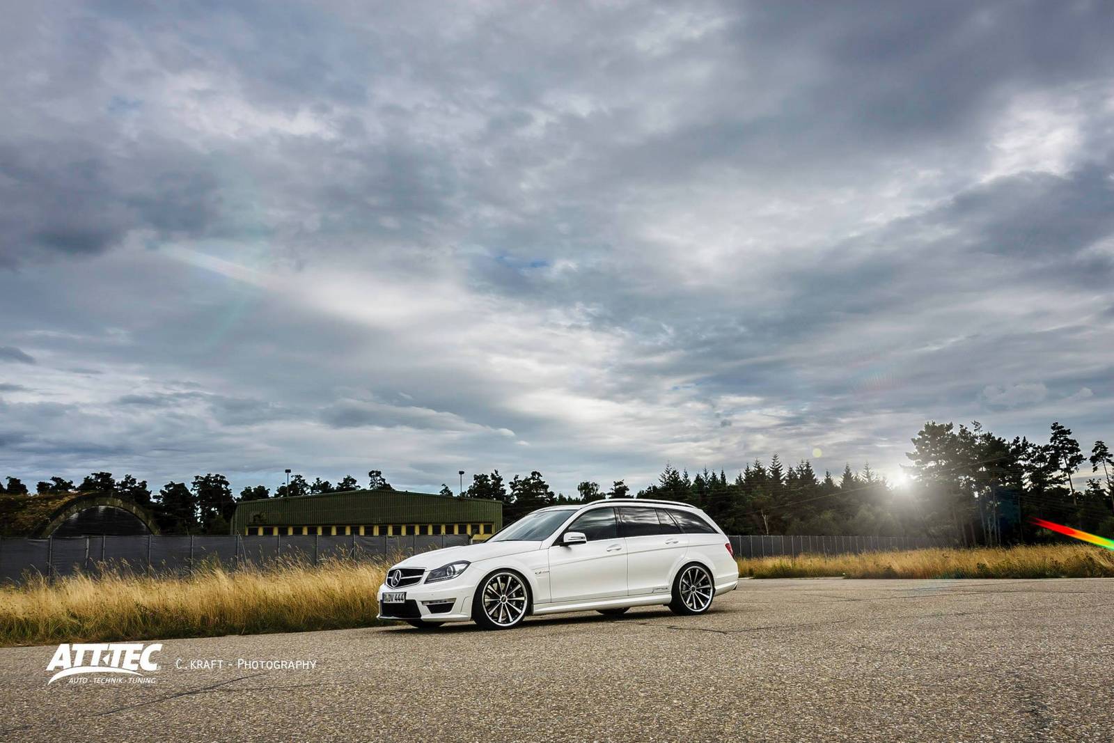 動力部分,ATT-Tec除了將M156引擎的電腦程式重新改寫外,另外換裝Akrapovic Evolution鈦合金高性能排氣管提升效率同時釋放狂暴音浪,使得這部德國旅行車的最大馬力提升至500HP左右。感謝攝影師C.Kraft Photography提供精美圖片集,在等候後繼渦輪C63 AMG來臨前,再次讓我們溫習讚嘆這部高人氣旅行車。