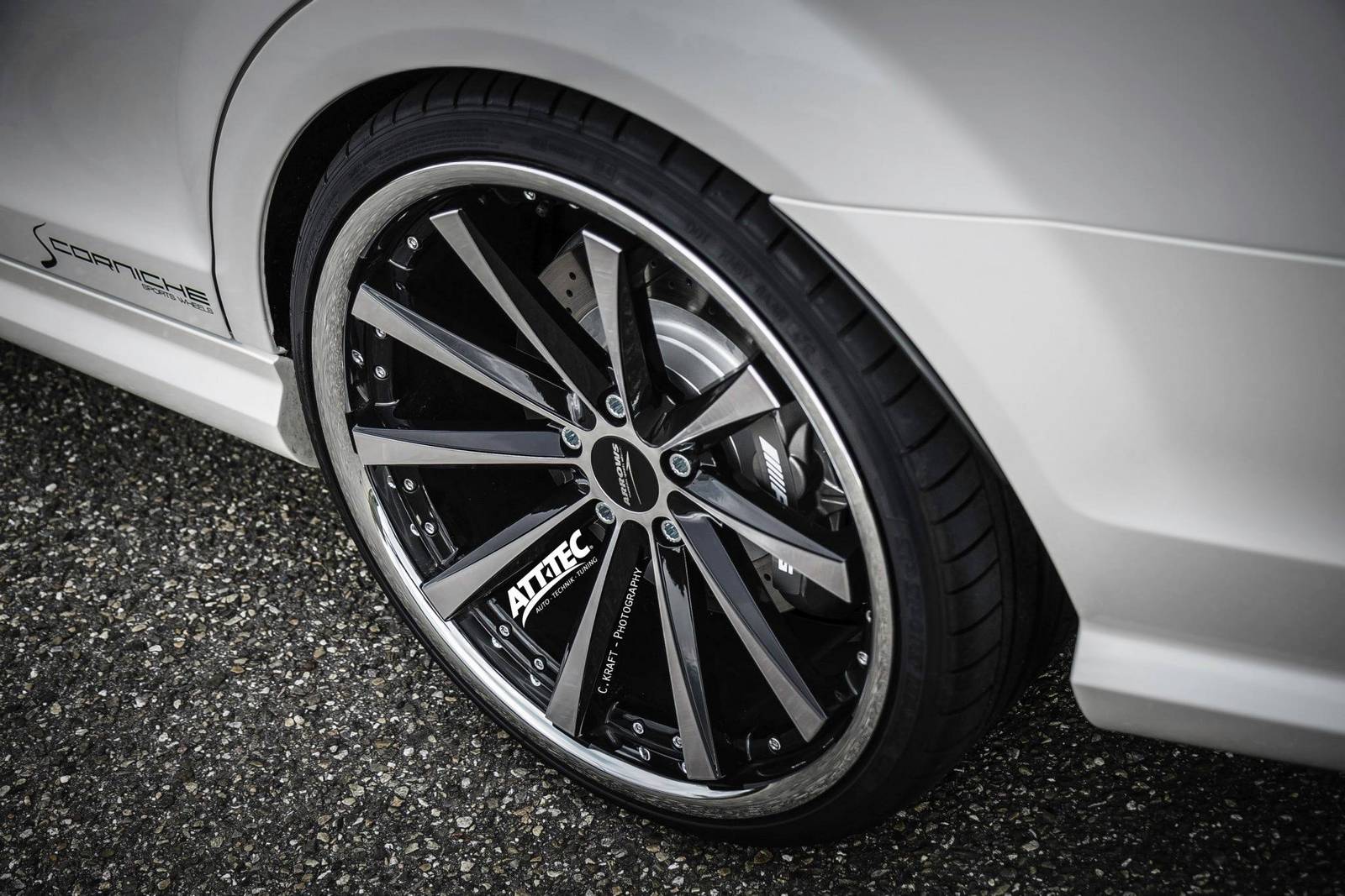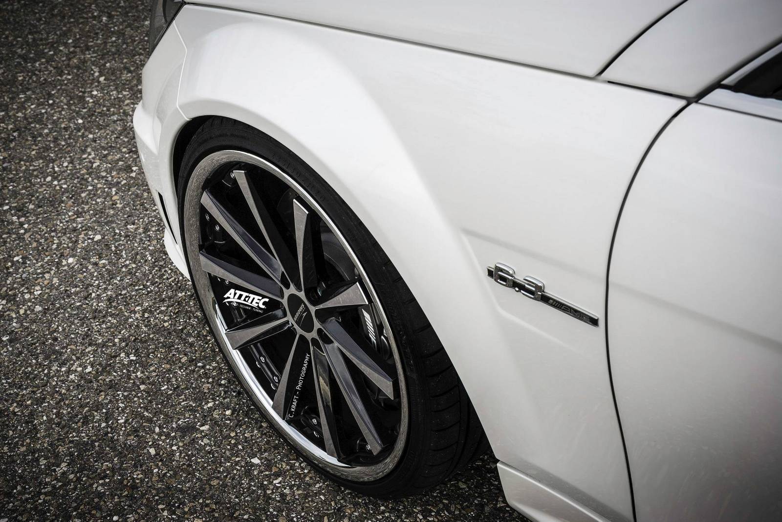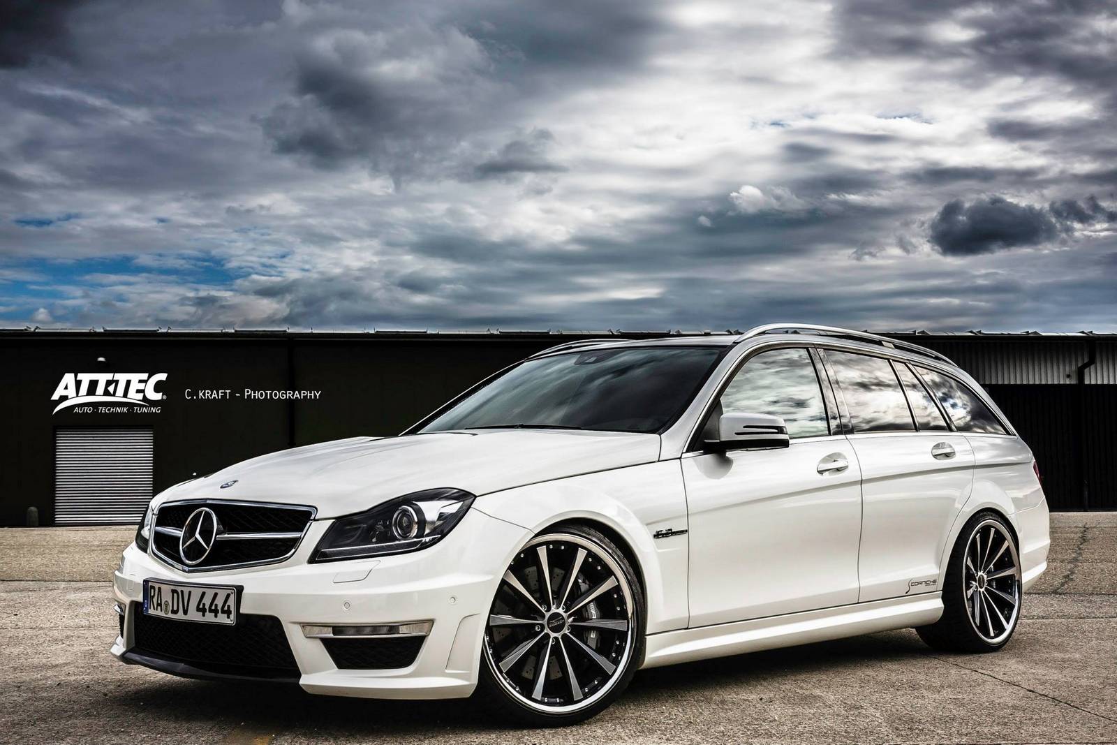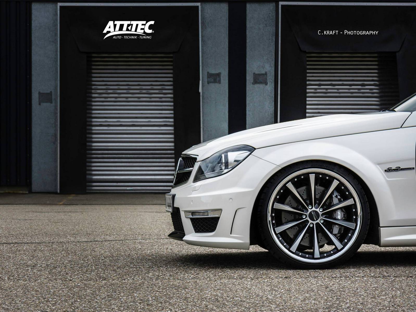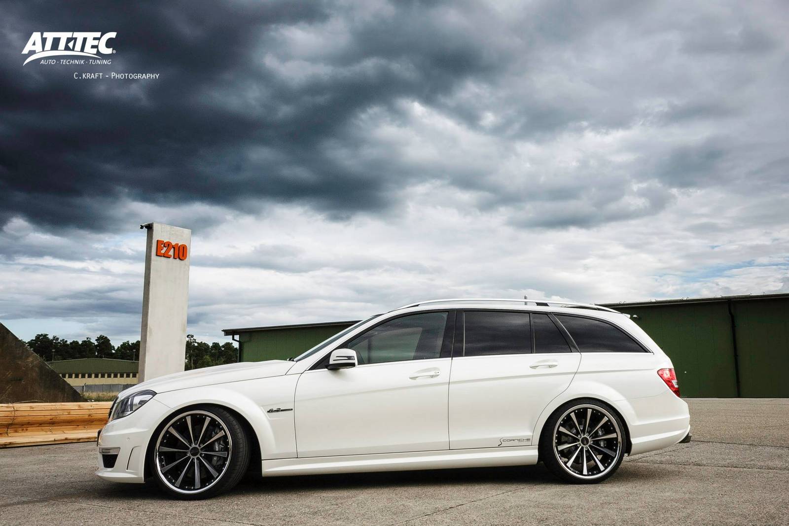 於2007年載著6.2升V8自然進氣引擎登場的Mercedes Benz C63 AMG向來是街道霸主的熱門候選人,而在換成4.0升V8渦輪增壓引擎的下一代C63 AMG尚未登場前,改裝熱潮依舊居高不下。今天帶給各位由德國改裝廠ATT-Tec GmbH所操刀的小改款五門版本Mercedes Benz C63 AMG Estate,輪圈選用Corniche Wheels的產品搭配Dunlop Sport Maxx GT高性能跑胎,另外換裝電子可調式KW頂級避震器組將車身降低,同時能透過智慧型手機app軟體、以無線方式調整軟硬度。該部C63 AMG Estate素雅的白色車身配上偏向華麗風格的輪圈與扁胎,與時下常見之殺氣風格改裝略有不同,質感獨具,而其所懸掛的鐵支444車牌本地倒是也沒見過。