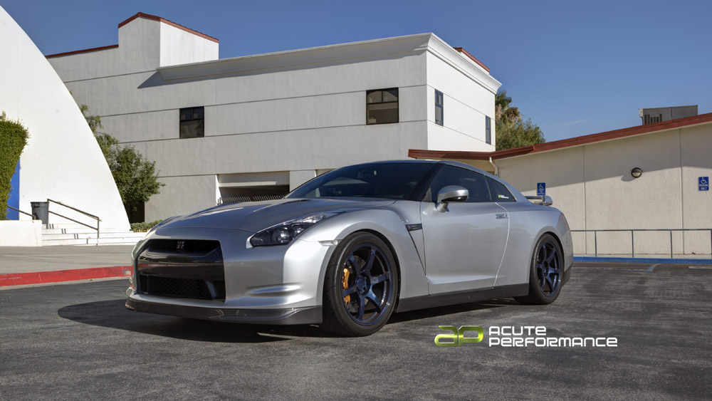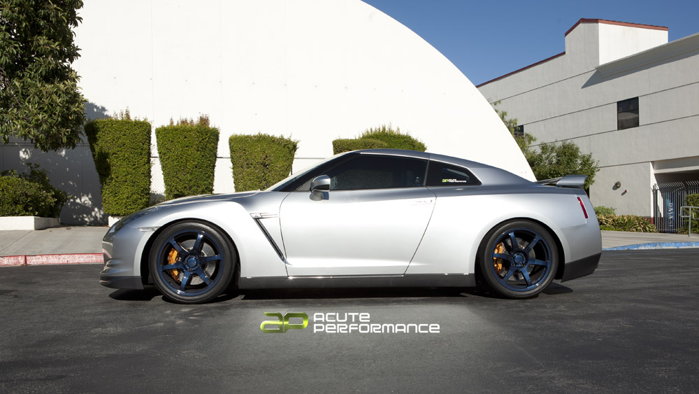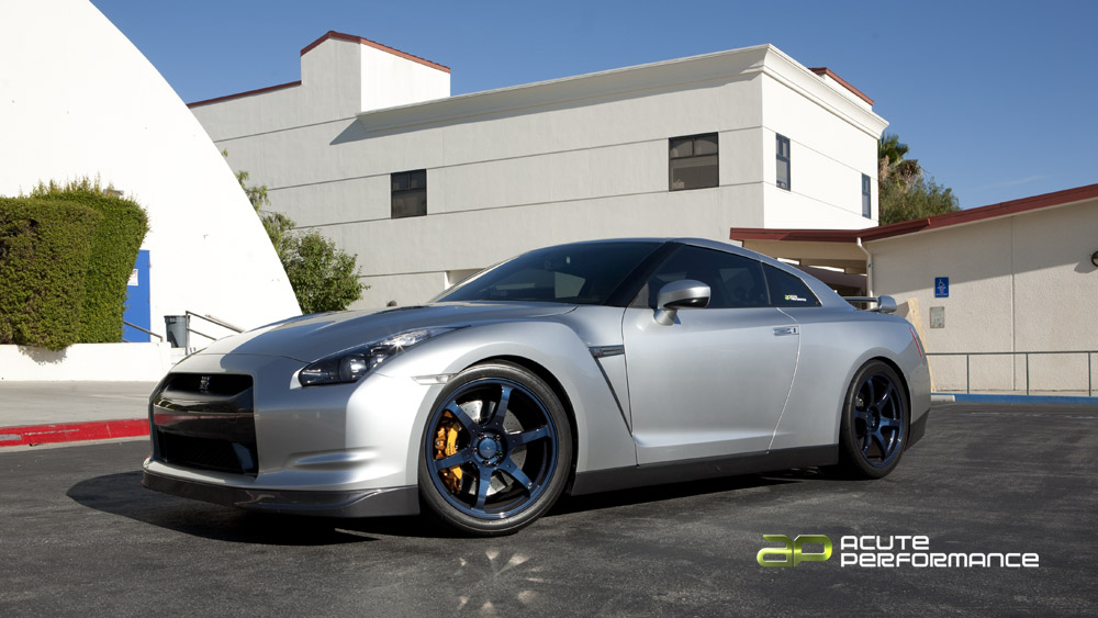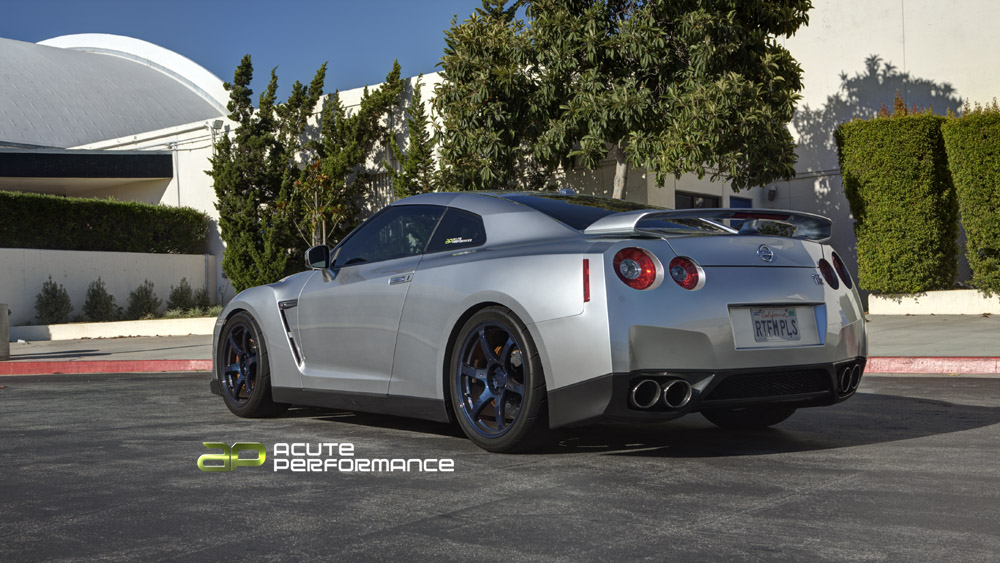 今天帶給各位總部於美國加州(California, USA)、專精於改裝Nissan R35 GT-R的知名店家Acute Performance所操刀的Nissan R35 GT-R,動力部分著墨不多,僅修改電腦程式與換裝高性能排氣管,主要重點部分擺在底盤提升方面。除了換裝競技版本高低軟硬可調式避震器與強化煞車系統外,輪圈選用日本知名品牌Rays Volk Racing出品、型號G2的輕量化款式,尺寸為前20x10J、後20x11J的前後配設定,並施以少見的藍色塗裝,該圈簡單不華麗的造型似乎是走耐看路線,如此配法的改裝版本Nissan R35 GT-R也別具風味。