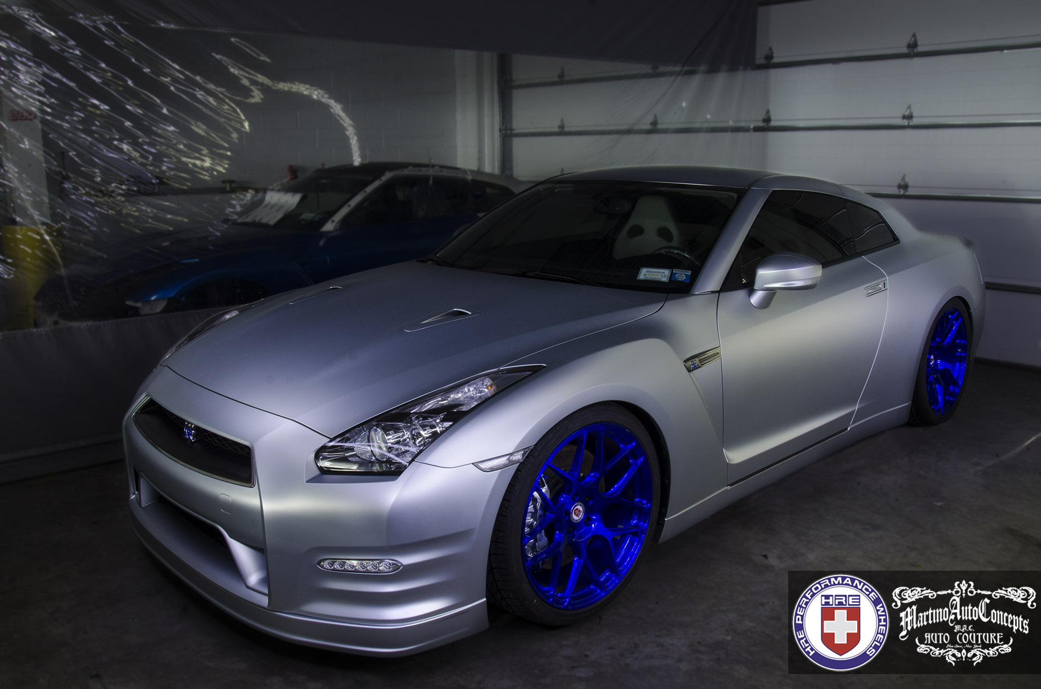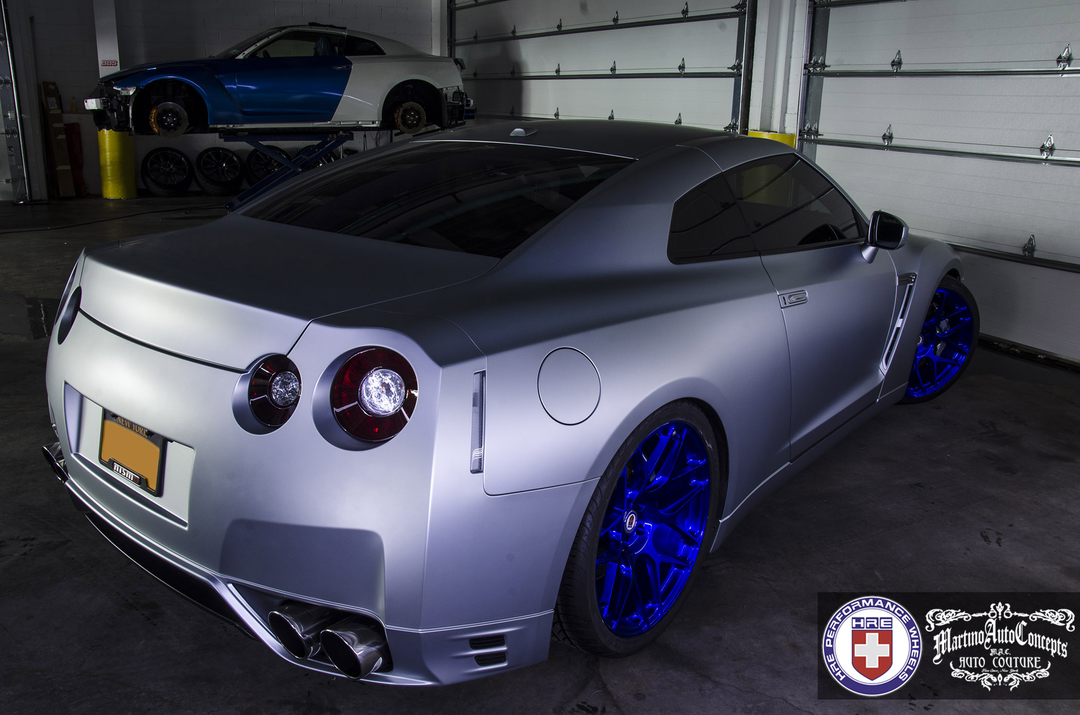 所以,其實玩玩外觀也不錯。今天帶給各位一部由改裝廠Auto Couture所操刀的小改款Nissan R35 GT-R,將原廠尾翼移除並施以全車消光銀色包膜,另外換裝知名品牌HRE Performance Wheels出品、型號P40SC的輪圈,圈面採用特殊的藍色塗裝,另外透過高低軟硬可調式避震器組將車身降得低趴,這樣走視覺系路線的改裝版本東瀛戰神,同樣相當帥勁!