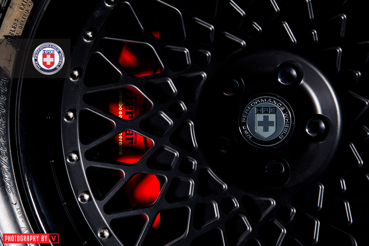 這是知名輪圈品牌HRE Performance Wheels當中Vintage系列、型號501的款式,樣貌也點類似經典的BBS RS多片式輪圈,然而不同於慣用的外唇拋光配色,這組HRE Vintage 501整顆以黑色塗裝現身,所搭配的Nitto INVO跑胎也在胎壁上塗上白色字體,另外換上全新設計的前保桿、側裙組與後保桿,品味極其特殊。