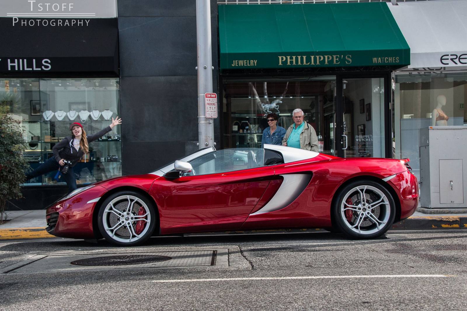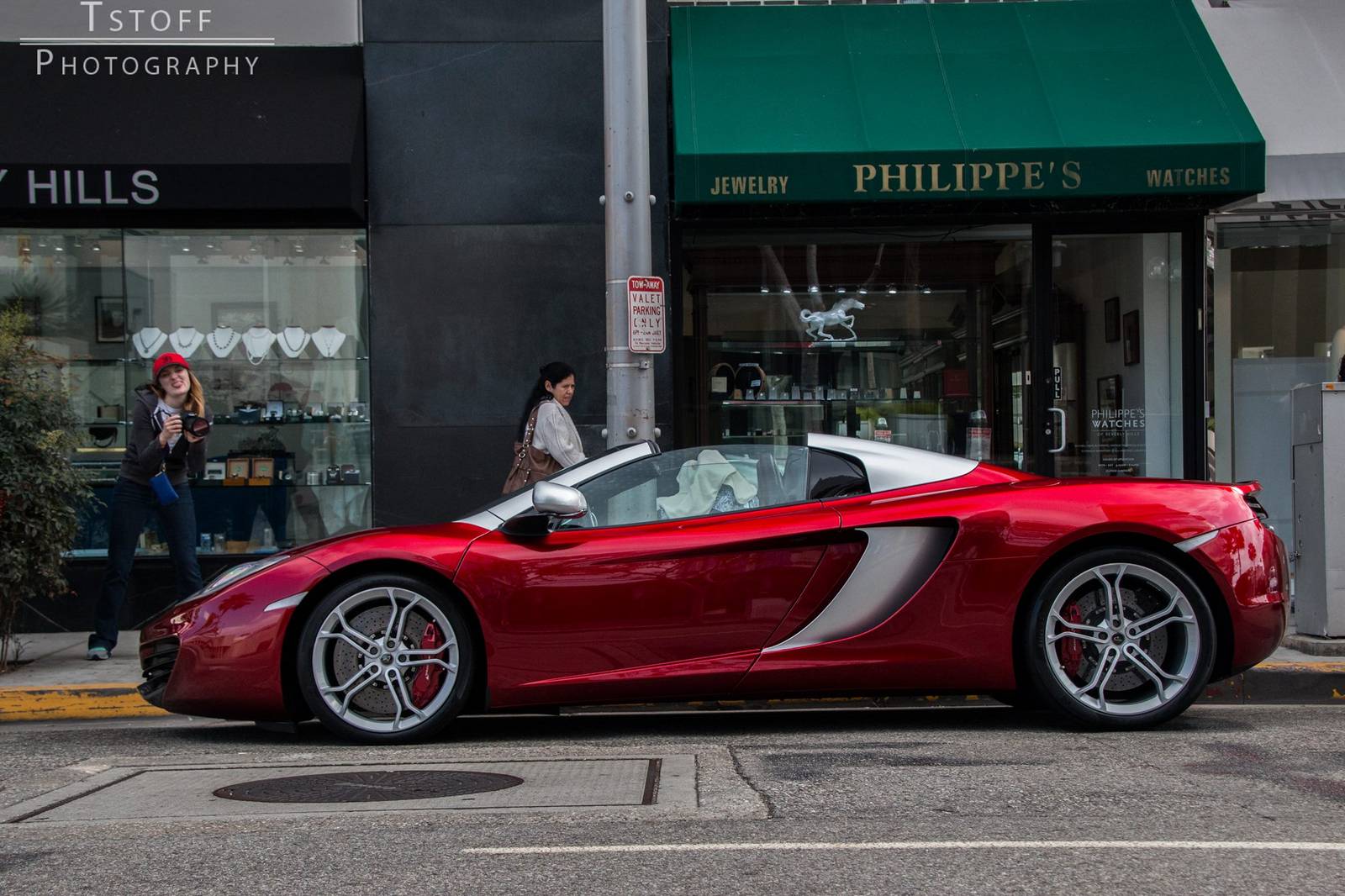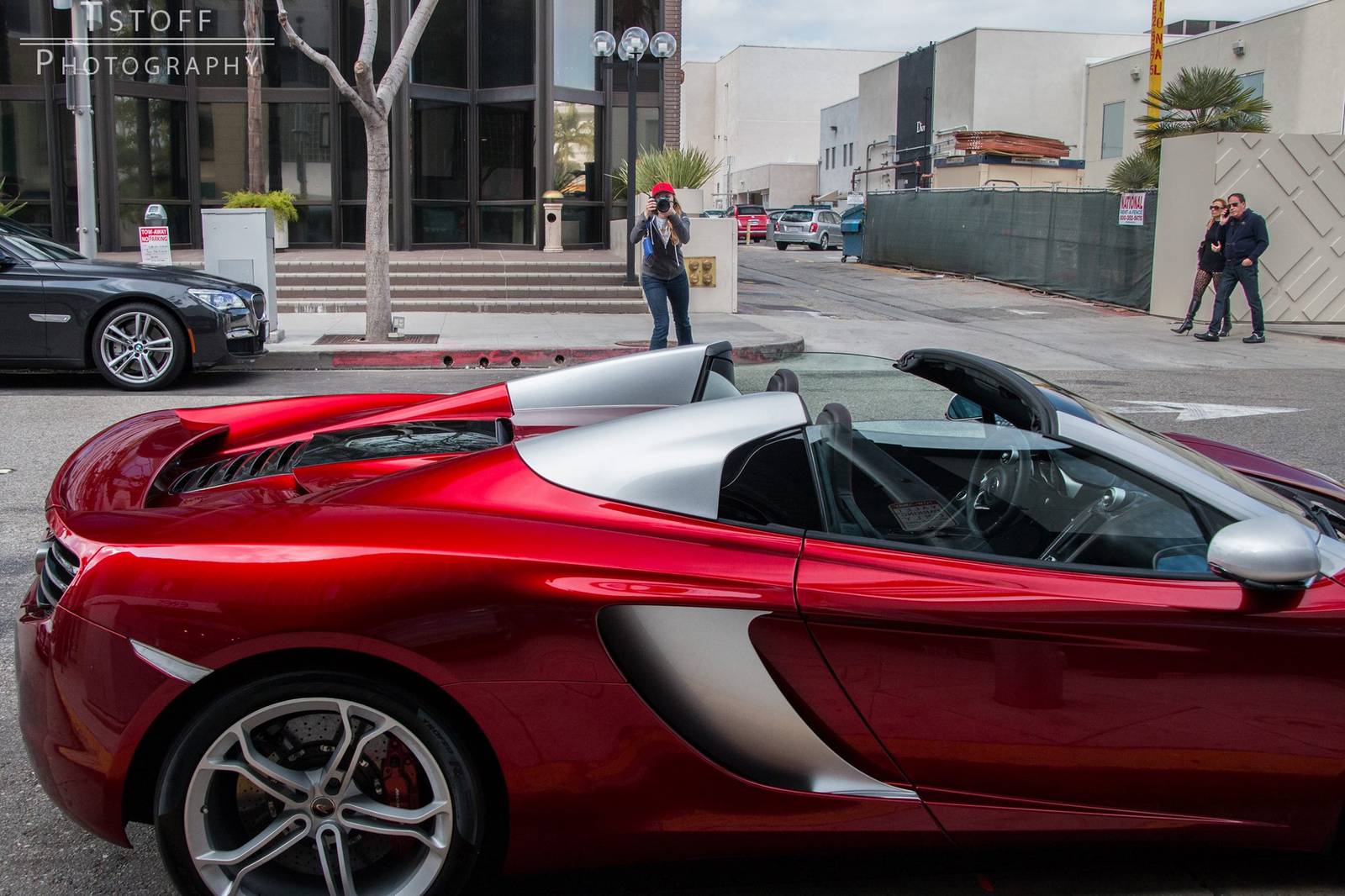 在結果出來之前,我們先來觀賞眼前這部特殊配色的McLaren 12C Spider,由攝影專家TSTOFF Photography於美國比佛利山莊(Beverly Hills, USA)街頭所擄獲,車身大部分採用帶有銀粉的Volcano Red紅色塗裝,而在後視鏡、A柱與敞篷雙駝峰部分以對比的鋁合金塗裝處理並將範圍延伸到側邊進氣口周邊,所選配的輕量化鍛造輪圈也採用銀色塗裝,搭配紅底白字的煞車卡鉗,整體令人耳目一新。