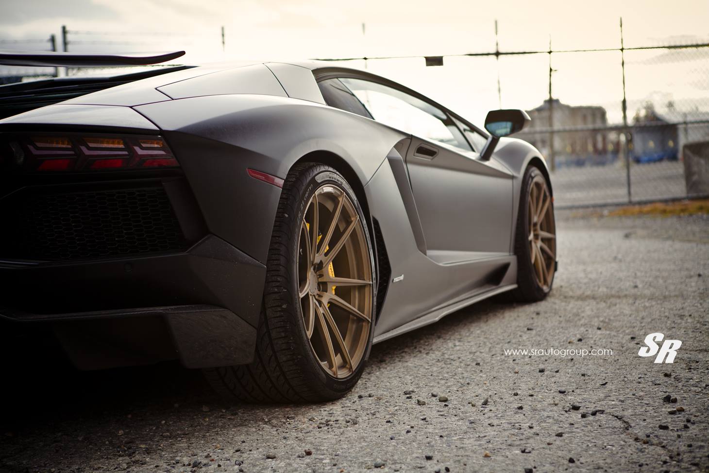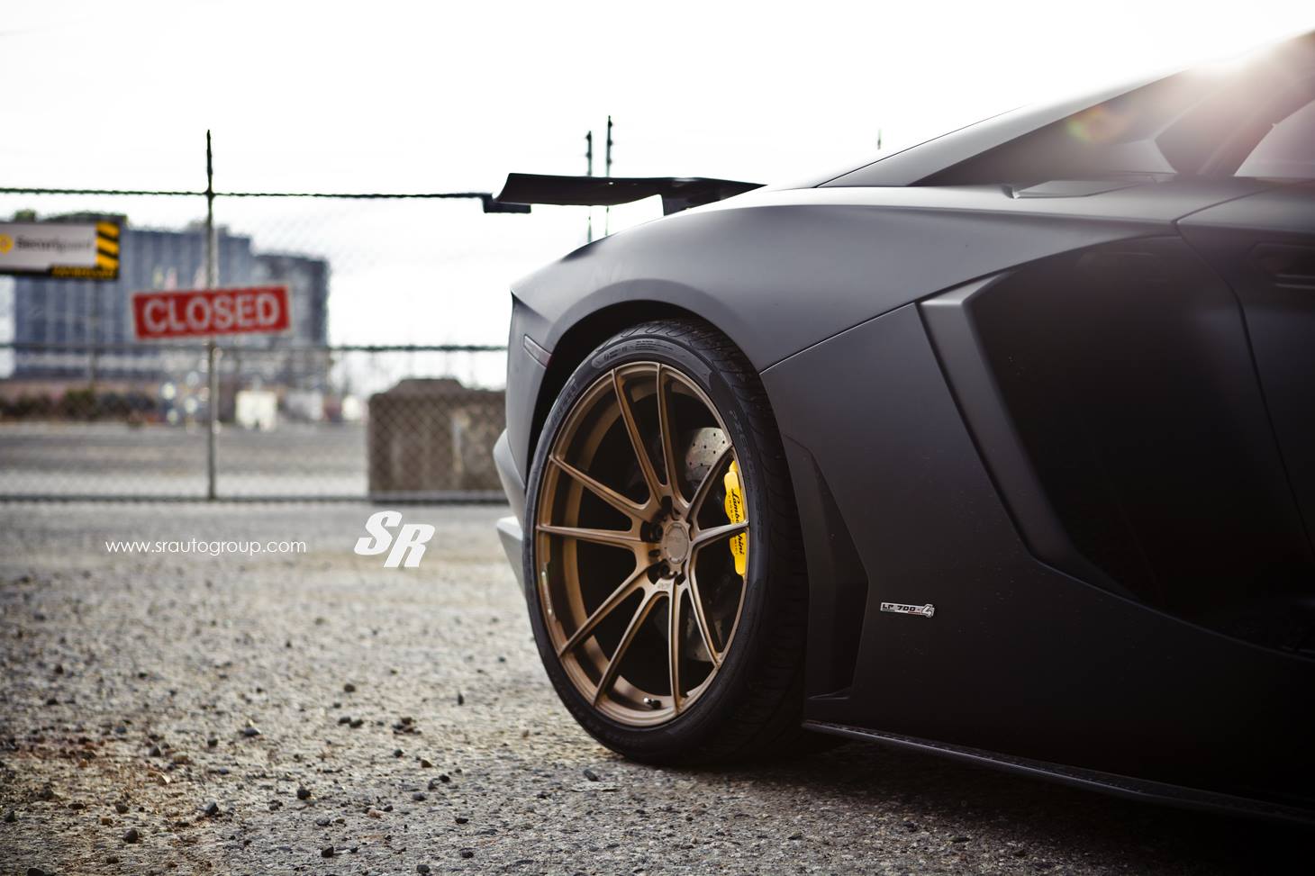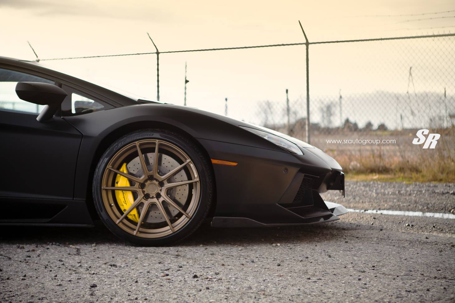 今天帶給各位由改裝團隊SR Auto Group所操刀的消光黑色塗裝Lamborghini Aventador LP700-4,輪圈選用知名品牌ADV.1 Wheels出品、型號ADV5.2.1 MV1的五幅雙肋款式,圈面採用消光銅色處理,尺寸為前20x9J、後21x12.5J的前後配設定,與原廠黃色煞車卡鉗形成流暢對比,加上所加裝的碳纖維前下巴、側裙組、後下擾流板與後上擾流尾翼等精裝部品,讓這部義大利超跑旗艦散發出令人陶醉的動感跑格。