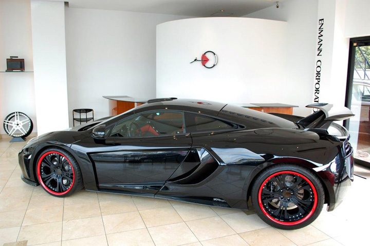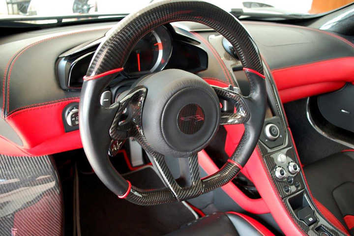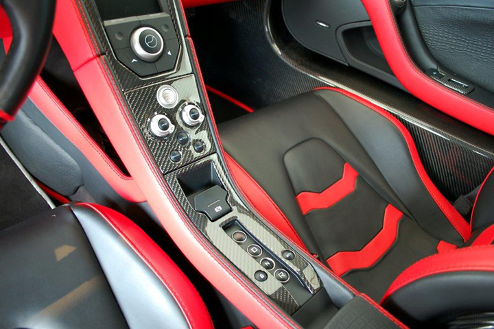 所以,不如這樣,買部改有全車空力套件的McLaren 12C搞不好還比較愉快些。今天分享給各位的是日本(Japan)超級跑車商Enmann Corporation所提供的中古McLaren 12C,裝有知名品牌FAB Design的全車空力套件,包含前保桿、側裙組、側邊進氣孔、後保桿與後下擾流板,同時將排氣管尾段改成中置三出的特殊設計,整部complete car被官方取名為FAB Design McLaren 12C Terso。該車輪圈部分採用FAB Design、型號Evolution的三片式鍛造款式,中心採用亮面黑色烤漆搭配銀色鉚釘,外唇則是施以紅色塗裝。內裝部分,為了呼應紅黑交織的外觀鋪陳,FAB Design同樣以紅色與黑色頂級皮革搭配碳纖維飾板環繞座艙,完整度極高。