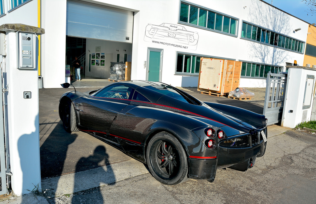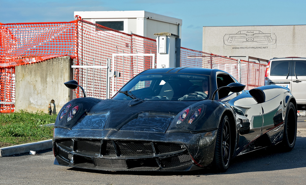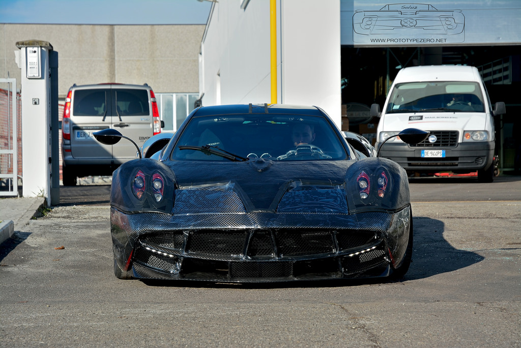 日前,知名媒體Prototype Zero於義大利Pagani總部外擄獲一部看似正在測試的碳纖維版本Pagani Huayra,除了全車採用碳纖維紋路外,另外於頭燈周邊、車身下緣等處施以局部的紅色車身飾條,再搭配消光黑色塗裝的旋風狀輪圈,看起來極具殺氣。動力部分,可能各位讀者早已相當熟悉,Pagani Huayra搭載來自Mercedes-Benz AMG所打造的6.0升V12雙渦輪增壓引擎,最大馬力可達730HP,使得這部義大利hypercar僅需3.3秒便可由靜止加速至時速100km/hr,極速可達370km/hr。