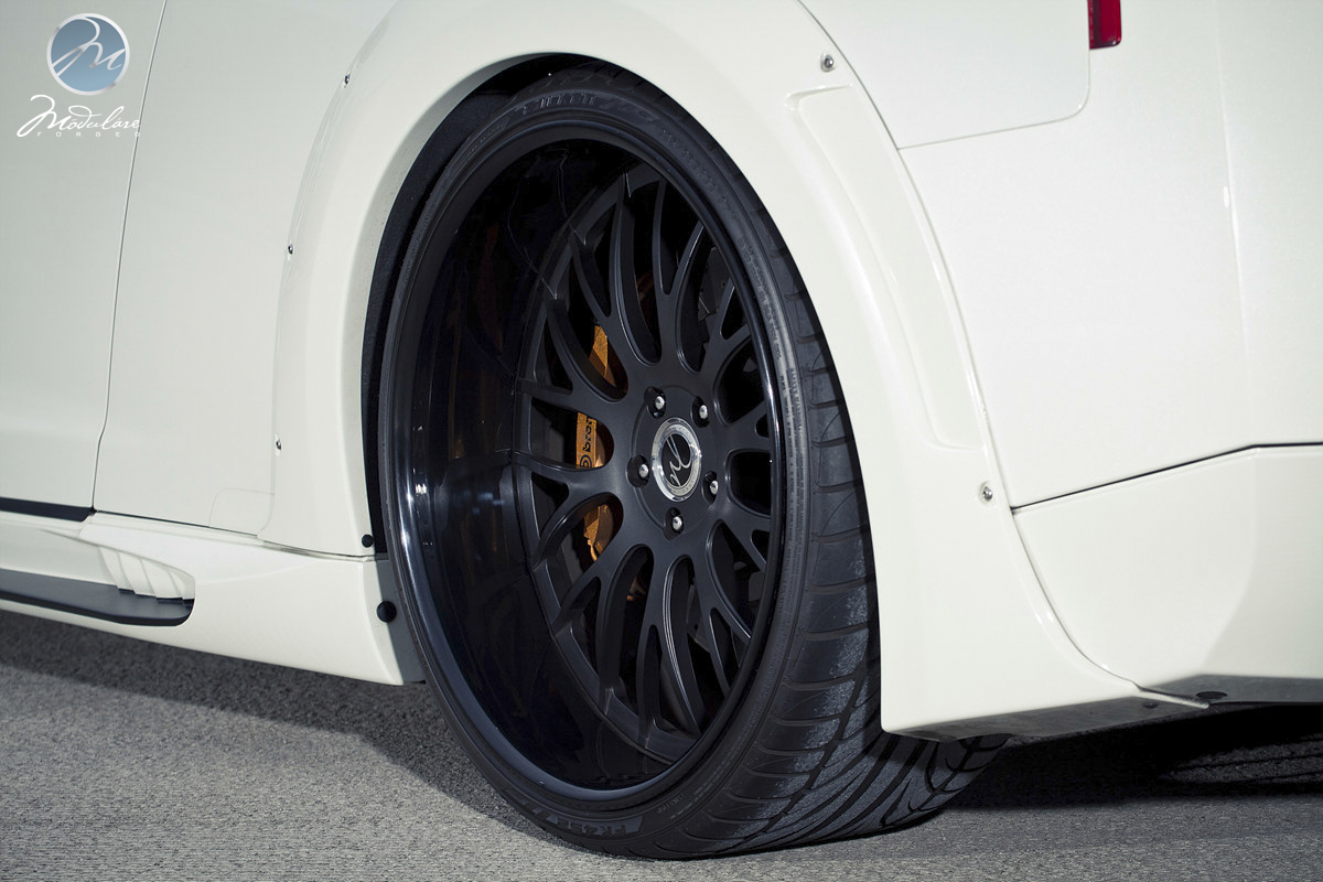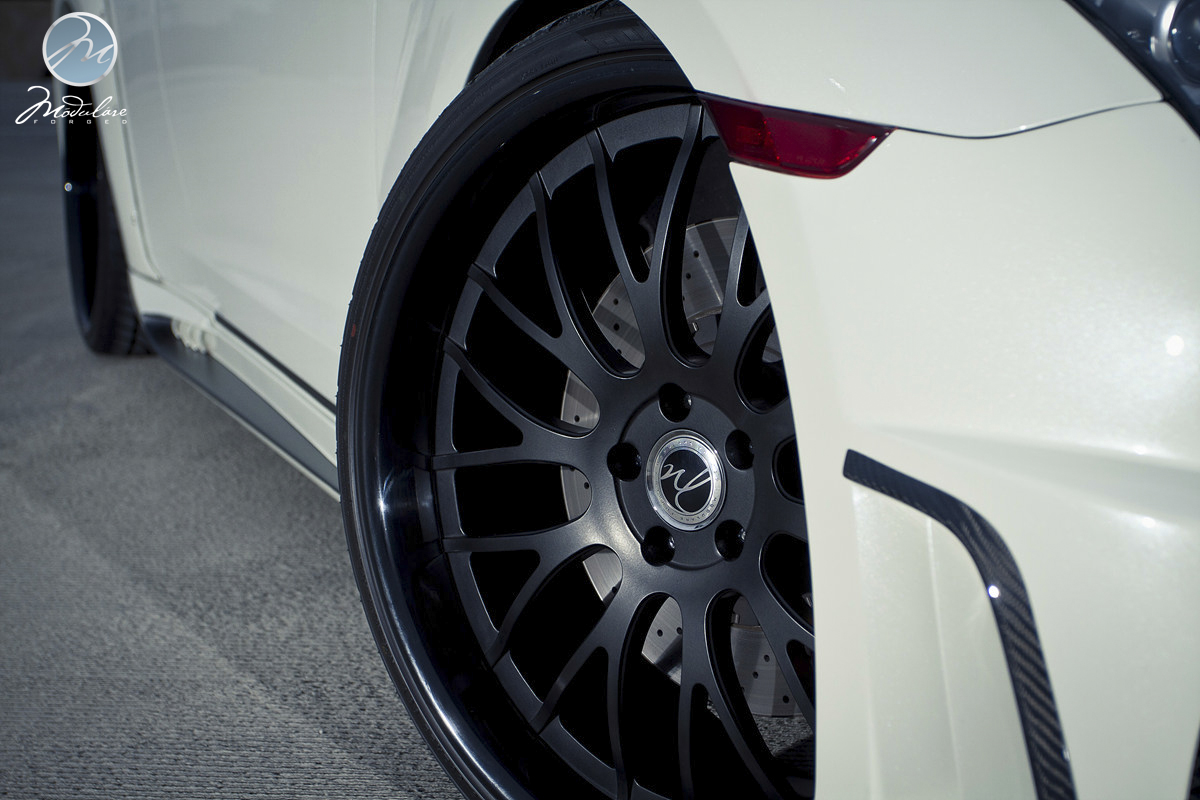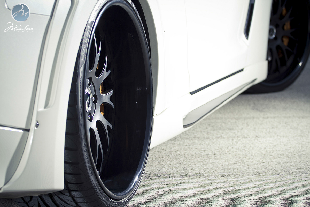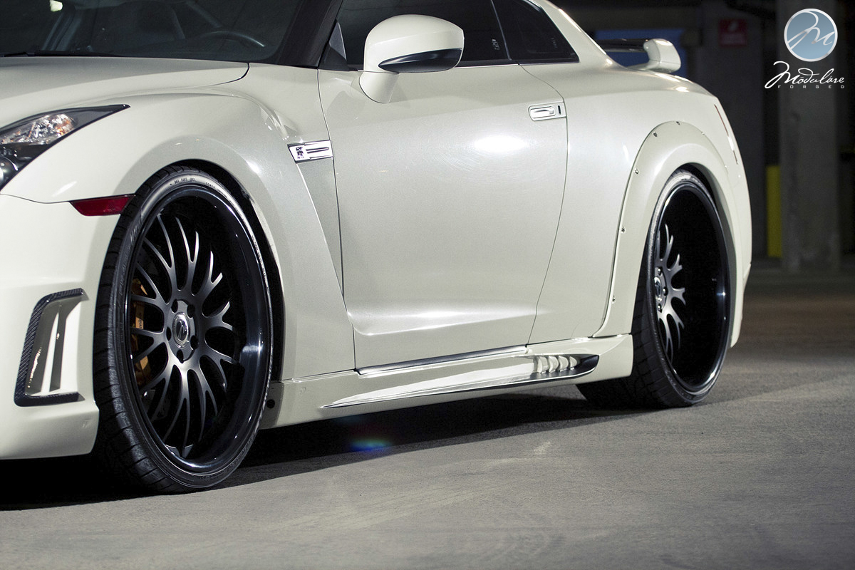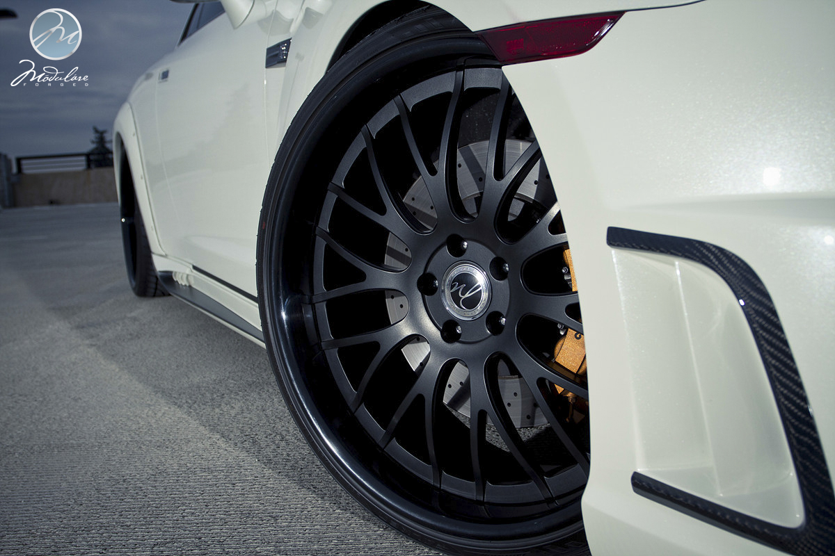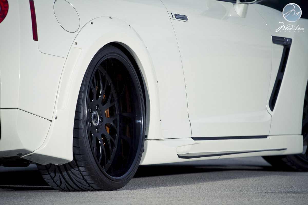 那麼,就東瀛戰神Nissan R35 GT-R的外觀改裝來說,尤其是寬車體空力套件,來自日本的知名品牌Wald International絕對是世間首選之一。今天帶給各位這部白色塗裝Nissan R35 GT-R便是裝著全車Wald International空力套件,包含全新設計的前保桿、側裙組、後保桿、後下擾流板與後上小鴨尾翼等部品,完整了這部東瀛戰神動感兼具質感的扮相。除此之外,為了搭配提升後的外觀,改裝廠選用Modulare Wheels出品、型號H4的三片式鍛造輪圈,尺寸為前22x9.5J、後22x11J的前後配設定,圈面施以消光黑色塗裝,整體質感一流。