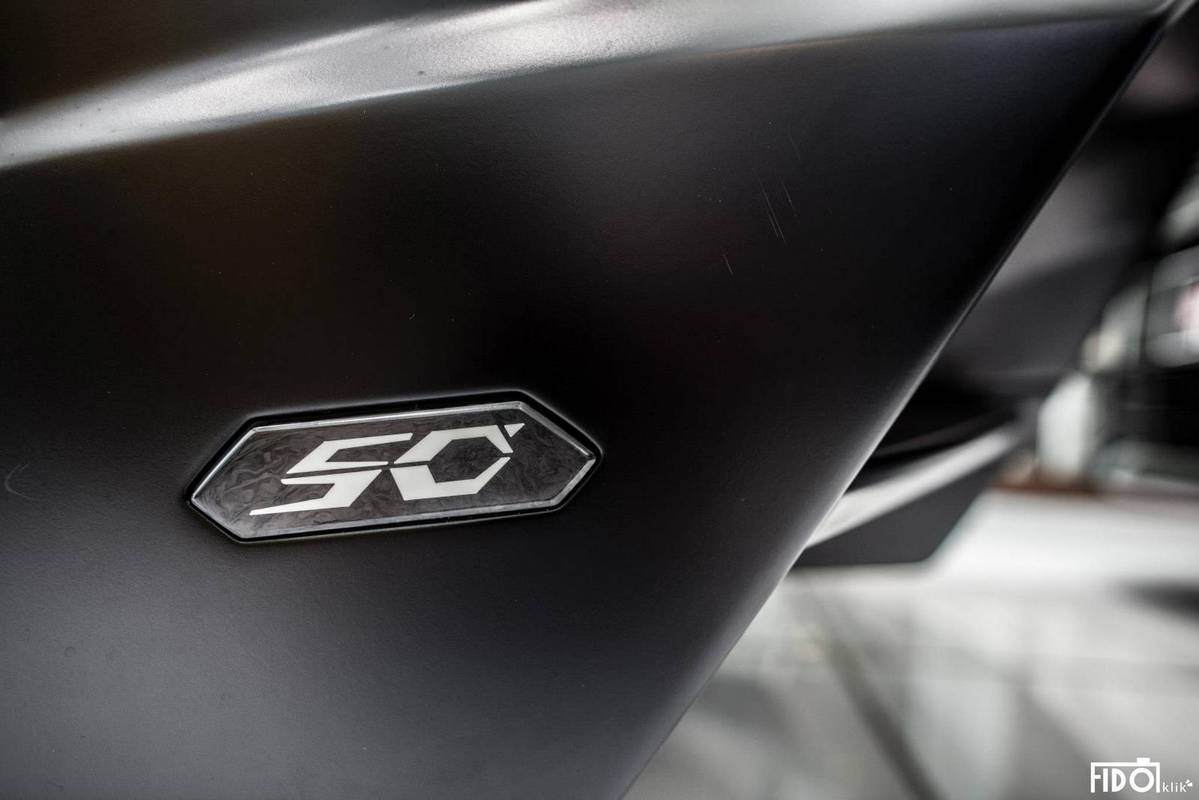 顧名思義,這部稀有旗艦車款所搭載的6.5升V12自然進氣引擎擁有720HP的最大馬力,輔以ISR智慧型變速箱與四輪驅動的加持,百里加速僅需2.9秒,極速超過350km/hr,再次將旗下V12領域超跑之動力提升至全新領域。除了動力較普通版本Aventador LP700-4提升20HP以外,外觀部分,Aventador LP720-4 50° Anniversario擁有專屬的空力套件,出廠時統一以消光黑色塗裝處理,讓整部車呈現更強烈的肅殺氣氛。