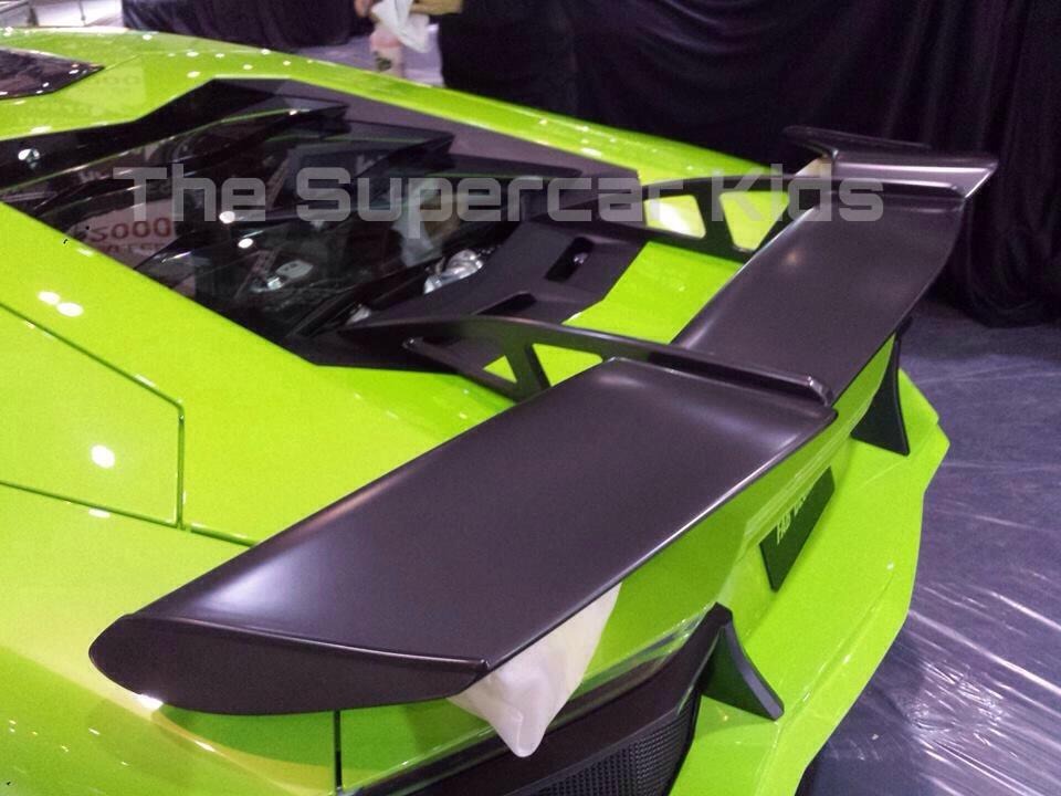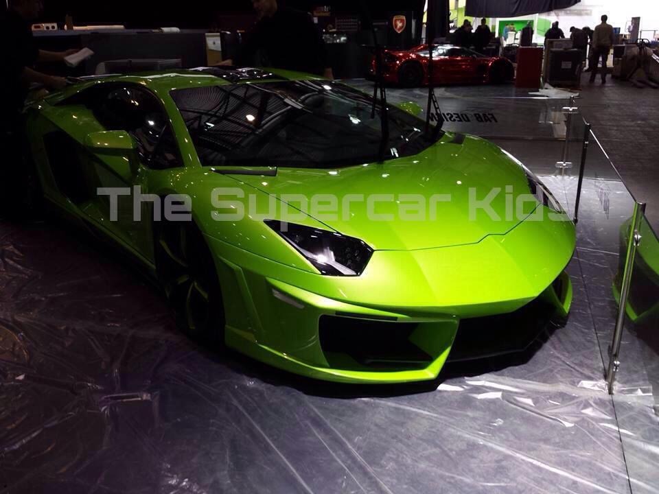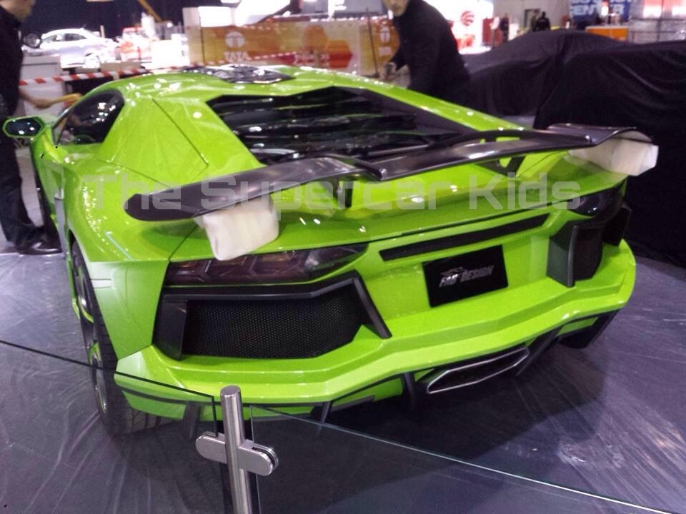 此時此刻,國際知名品牌FAB Design在日內瓦車展(Geneva Motor Show)會場中正在整理他們剛完成的曠世巨作Lamborghini Aventador。這部Verde Ithaca綠色塗裝的Lamborghini Aventador LP700-4換裝由FAB Design全新設計的空力套件,包含前保桿、側裙組、後下擾流板與車頂飾蓋等部品,最耀眼的莫過於由後引擎蓋延伸出來的後擾流尾翼,與許多大廠的設計方式不同。由這些國外媒體The Supercar Kids所提供之照片看來,前保桿部分採用加裝方式完成,同時將原廠前保桿側燈移植到加裝的套件中,細微的動作營造出另類美感,而從車尾45度望去,加裝之碳纖維車頂飾板恰好呼應原廠後引擎蓋,輪圈也以與車身同樣的綠色做出局部妝點,整體質感一流。