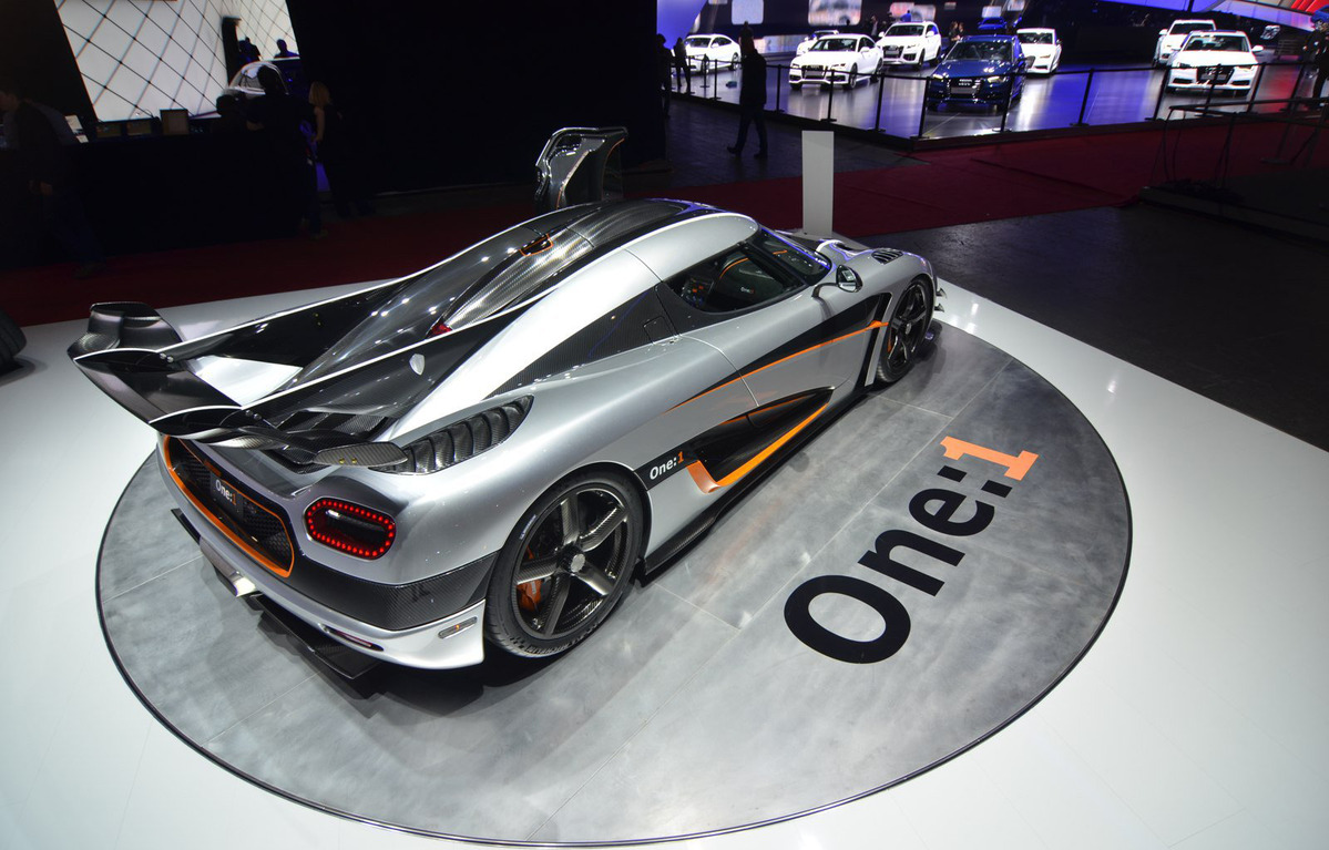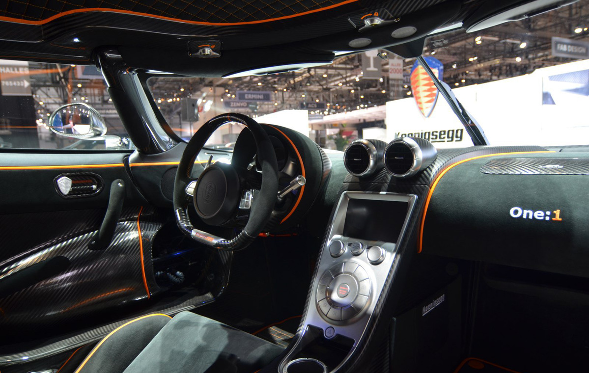 針對Koenigsegg One:1,原廠也提供多項選用配備,包含賽車座椅、全車碳纖維裸色、客製化車身飾條、進階版音響系統、煞車卡鉗上色、原廠行李箱組、鑲嵌鑽石鑰匙、鈦合金排氣管尾飾管、靜音閥門、增壓表與客製化內裝工程等。根據Koenigsegg的說法,配額僅六部的Koenigsegg One:1大部分會被銷往中國,其中兩部會留在歐洲,而眼前這部參展車在門檻處標示Development Car,可能表示該車將不會對外銷售,僅作為測試與研發用途。