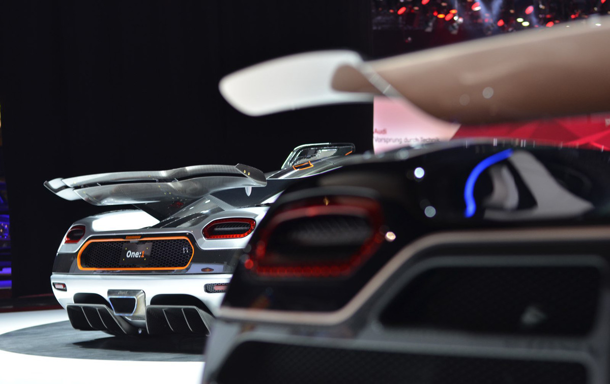 今年日內瓦車展(Geneva Motor Show)當中排名前幾名的熱門焦點之一便是眼前這部馬力重量比趨近1:1、來自瑞典的超級跑車Koenigsegg One:1,國外媒體已經不是用supercar來稱呼它、甚至連hypercar都不足以解釋,而是用上少見的megacar來表示,而陪伴著Koenigsegg One:1出席的黑色塗裝Koenigsegg Agera S在一旁似乎顯得相當落寞,原廠刻意這樣安排可能也是為了讓觀眾清楚看見普通版本與競技版本的差別,雖然目光都集中在One:1身上,但是Agera S依舊是相當迷人!