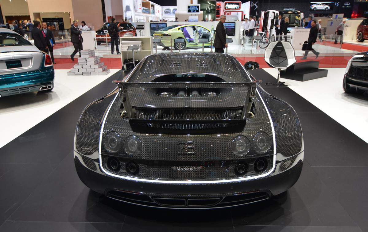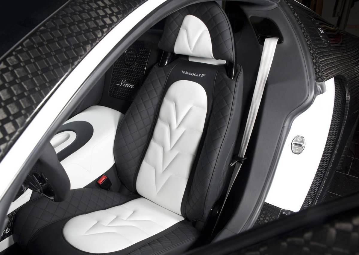 國際知名改裝品牌Mansory最膾炙人口的作品之一便是以法國超級跑車Bugatti Veyron為基礎打造而來、取名Mansory Vincero的改裝車款,而如今Mansory在日內瓦車展(Geneva Motor Show)當中推出最新版本Bugatti Veyron改裝車,取名Mansory Veyron Vivere,採用重新設計的空力套件,其前氣壩下緣的V字型設計讓這部法國超級跑車擁有極佳車頭辨識度,侵略性十足。另外,車體採用白色塗裝的Mansory Veyron Vivere在前引擎蓋局部、車尾延伸至C柱等處披上正方格狀的碳纖維紋路,營造出質感出眾的優異對比視覺效果。