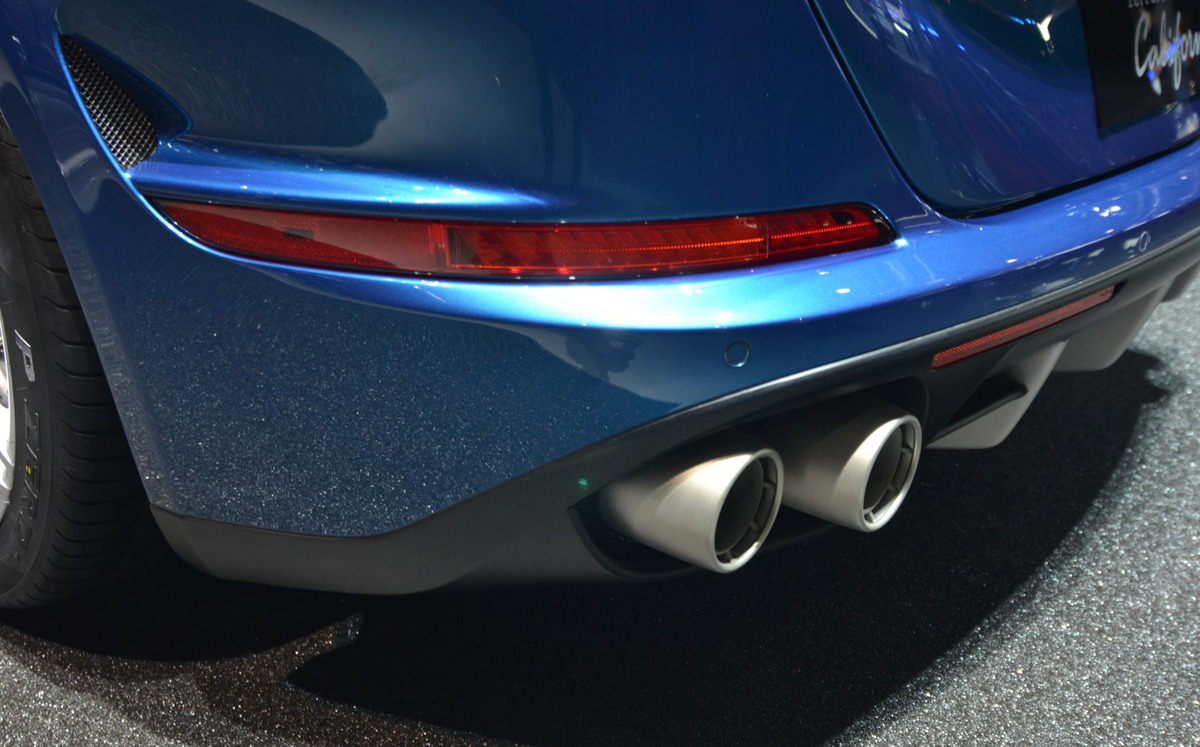 California那趾高氣昂的車屁股。引擎蓋上則增設了兩個相當侵略性的氣流孔洞,車頭採用全新的設計,而車側則與Ferrari