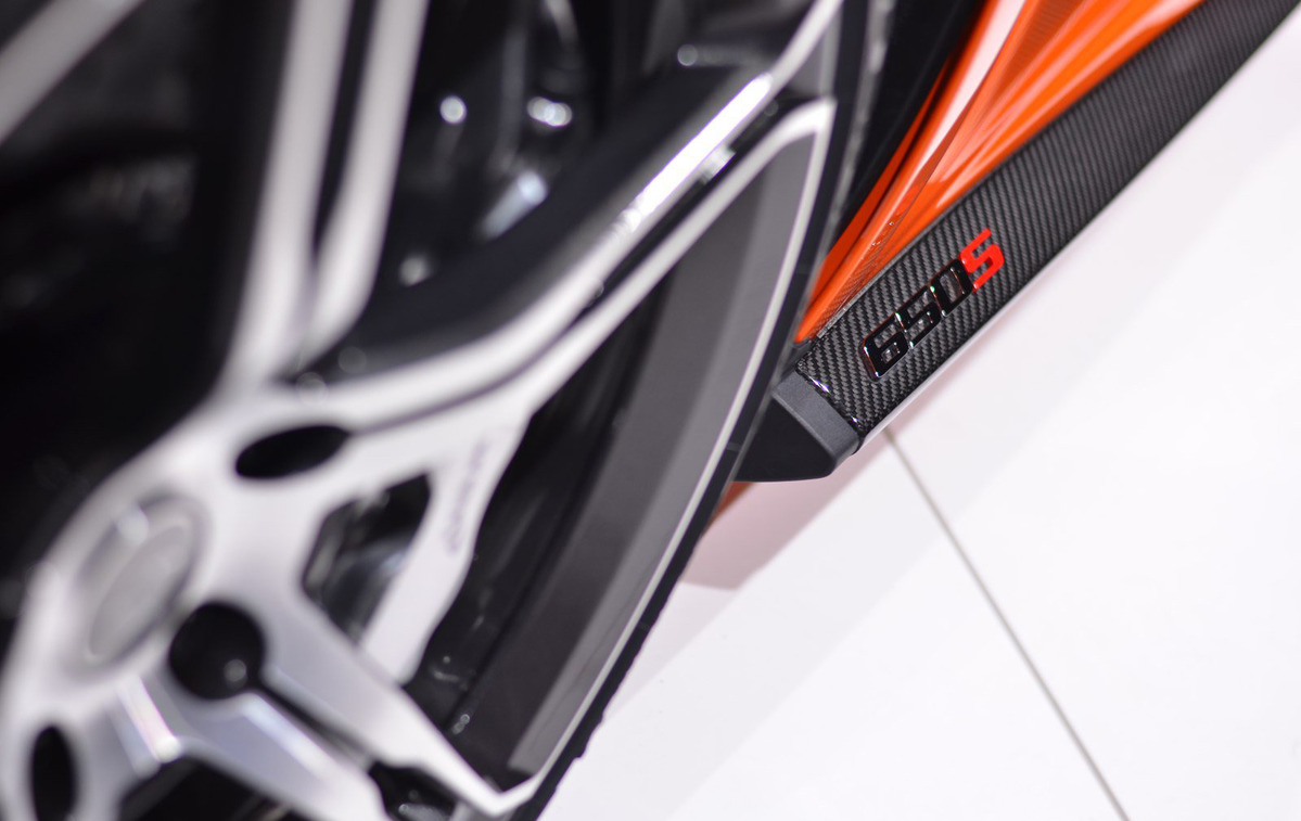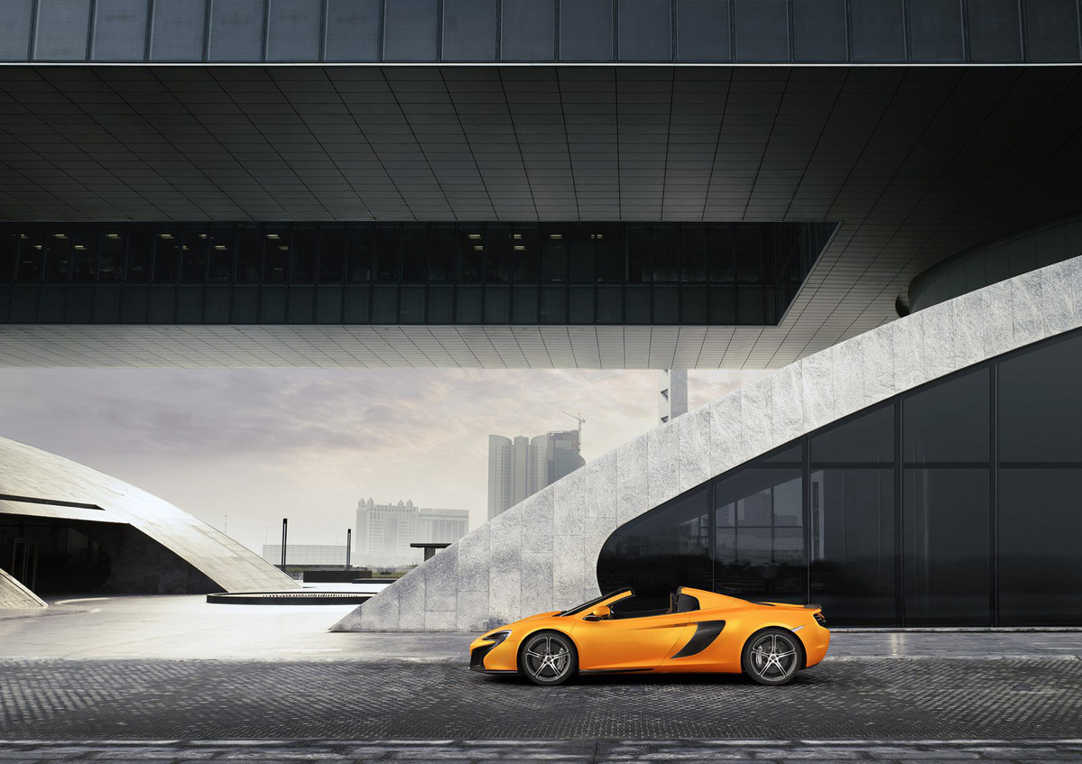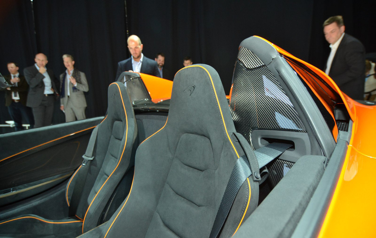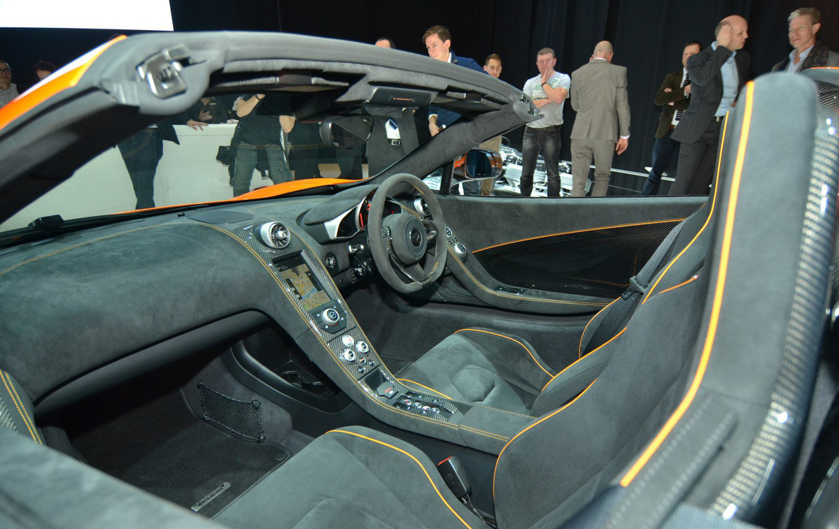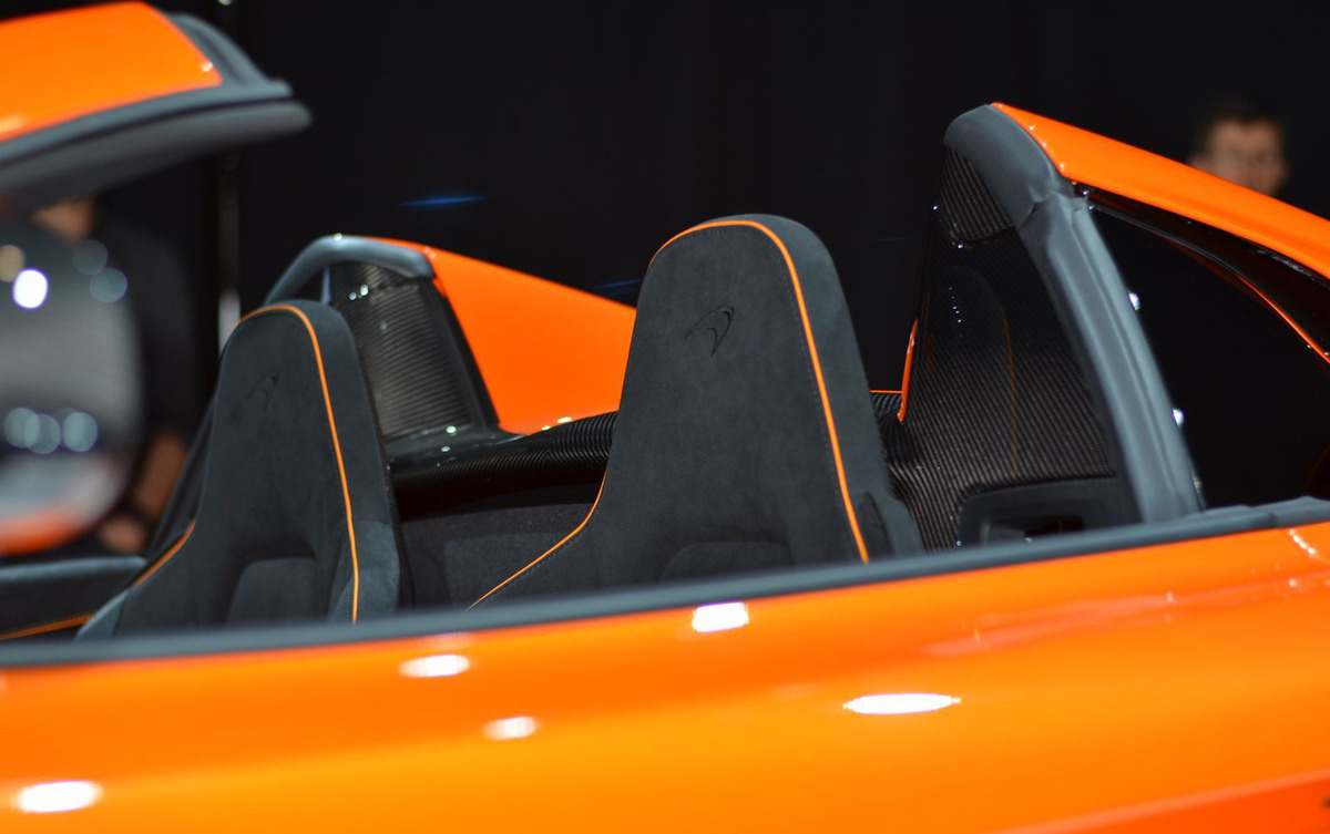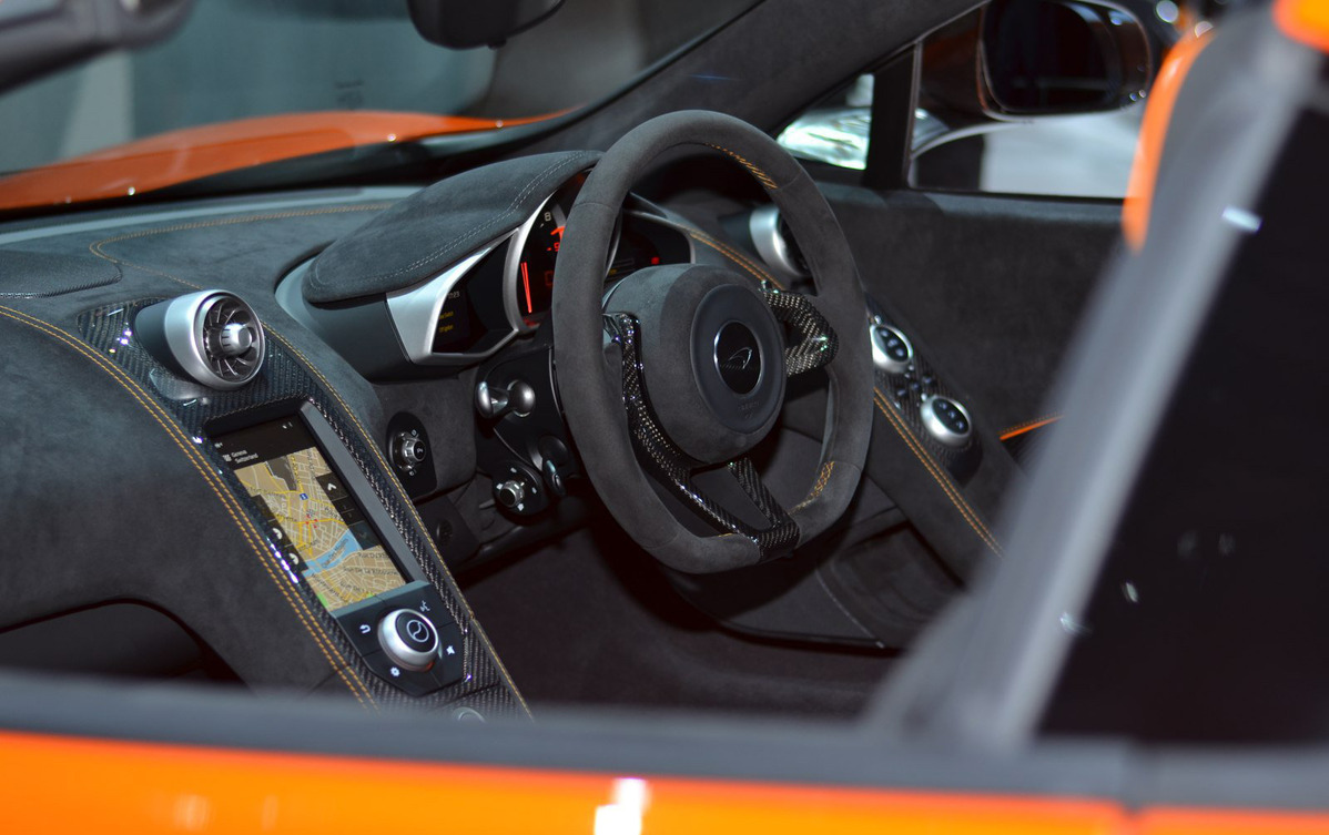 其餘配備方面,McLaren 650S Spider與雙門車型同樣將12C車型需額外加價約110萬才能擁有之陶瓷碳纖維煞車系統納入標準配備當中,再加上專屬輕量化輪圈與Pirelli P Zero Corsa高性能跑胎,足下功夫精進不少。另外,該部橘色展示車在內裝選用全車麂皮包覆,搭配碳纖維門板、碳纖維方向盤飾板、門飾板與車身對比色車縫線等,讓座艙極具戰鬥氣息,其餘像是觸控式中央螢幕、整合式按鍵與門板上的空調旋鈕等便利性配備同樣一應具全。