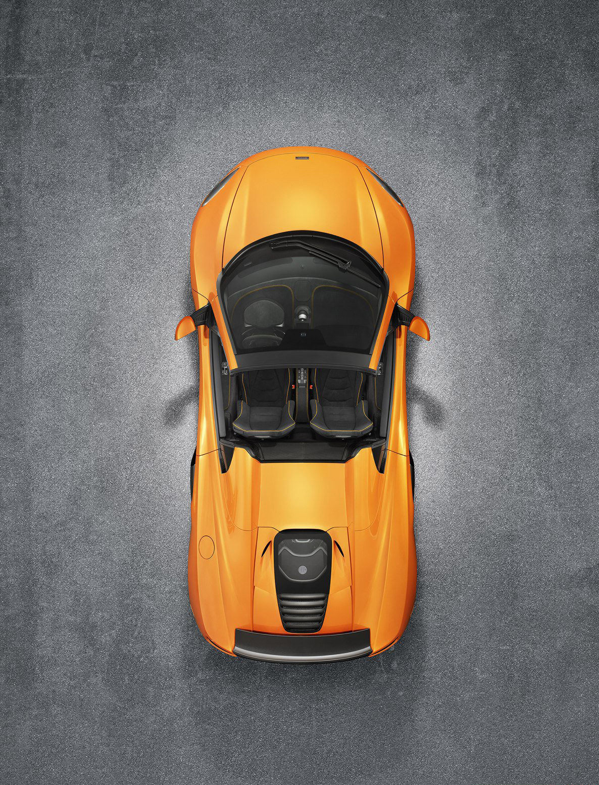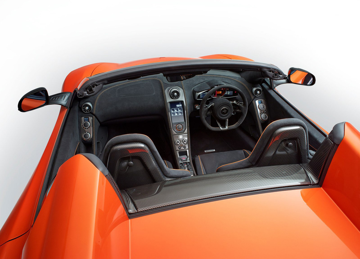 McLaren 650S Spider採用與12C Spider相同的結構,搭載代號M838T的3.8升雙渦輪增壓V8引擎,最大馬力與650S雙門車款同樣為650HP,百里加速成績同樣為3.0秒、由靜止加速至時速200km/hr則為8.6秒,比雙門車型稍慢0.2秒,極速可達329km/hr。車重方面,同樣採用碳纖維單體車艙設計的McLaren 650S Spider較雙門車型增重40公斤,其敞篷作動時間為17秒,可於時速30km/hr以下進行操作,相當便利。