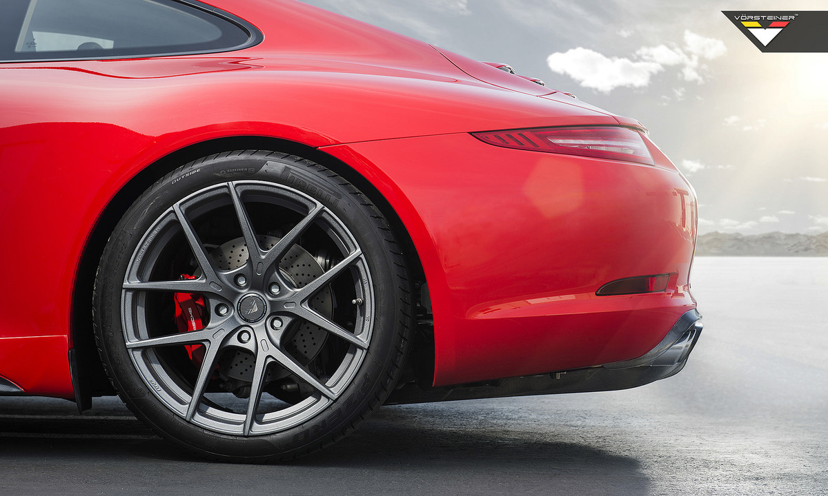 今天帶給各位的是一部991型、由知名改裝品牌Vorsteiner所推出的2014年款式Porsche 911 Carrera S,換裝型號V-GT的空力套件,包含碳纖維前下巴、側裙組與後下擾流板等,輪圈選用同樣來自Vorsteiner、型號VFF 101的鍛造輕量化款式,另外透過高低軟硬可調式避震器組的換裝將車身降低,火紅色的車身塗裝更是散發出致命吸引力,在靜候991 GT3消息的同時,不妨先妝點一下自己的991!