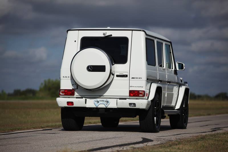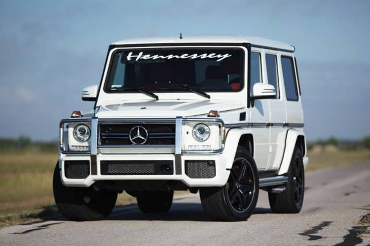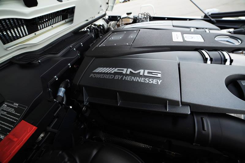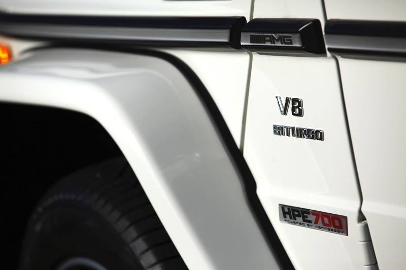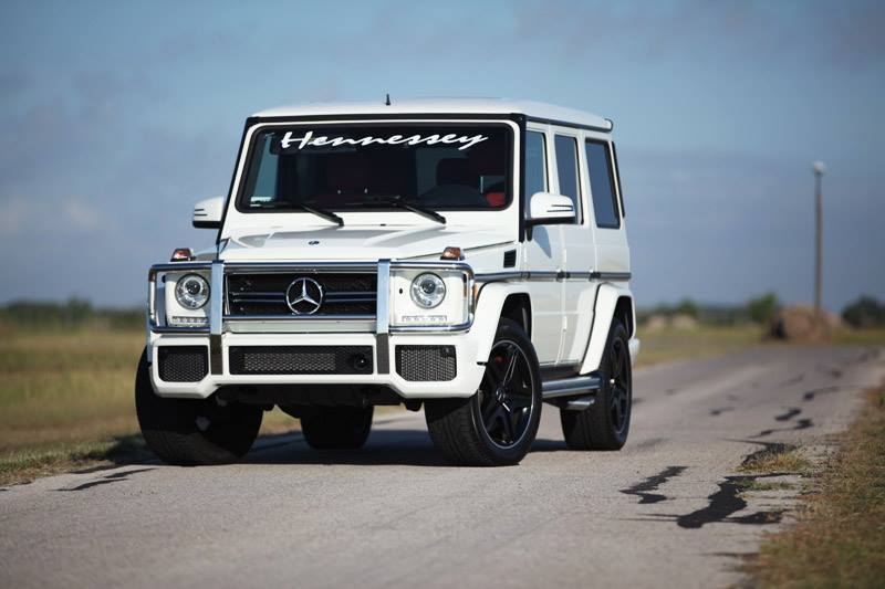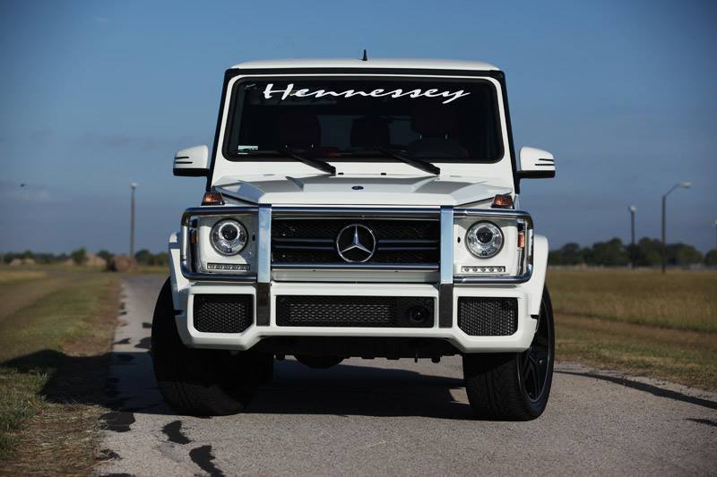 今天帶給各位一部白色塗裝、由改裝廠Hennessey Performance所操刀的Mercedes Benz G63 AMG,擅長於改裝美國性能車種的他們為這部德國SUV植入取名HPE700的動力提升套件,使得最大馬力提升至700HP,外觀則是大致上維持原廠配置,僅在前擋上緣、車尾、引擎上蓋與前葉子板兩側等處貼上各式Hennessey品牌logo,強調性能為主的改裝,而為了展現對產品的信心,Hennessey Performance針對HPE700套件提供3年3.6萬英里的保固。