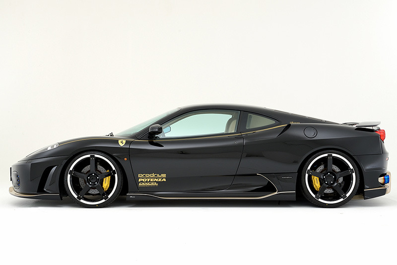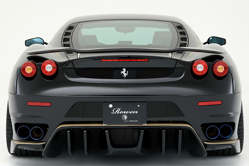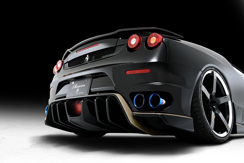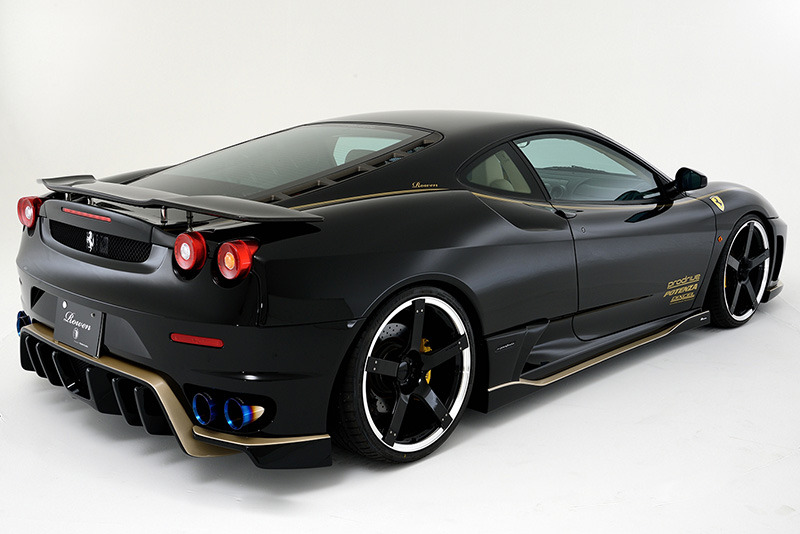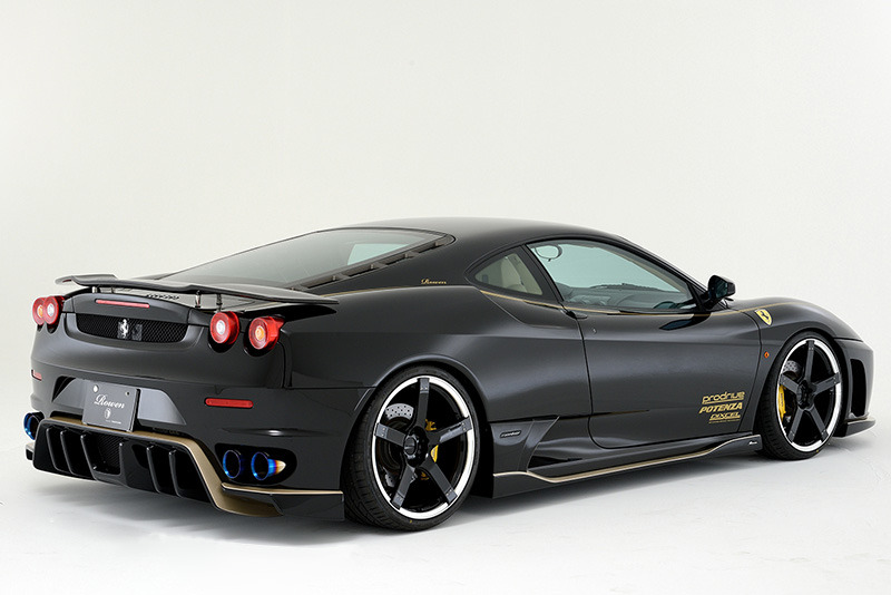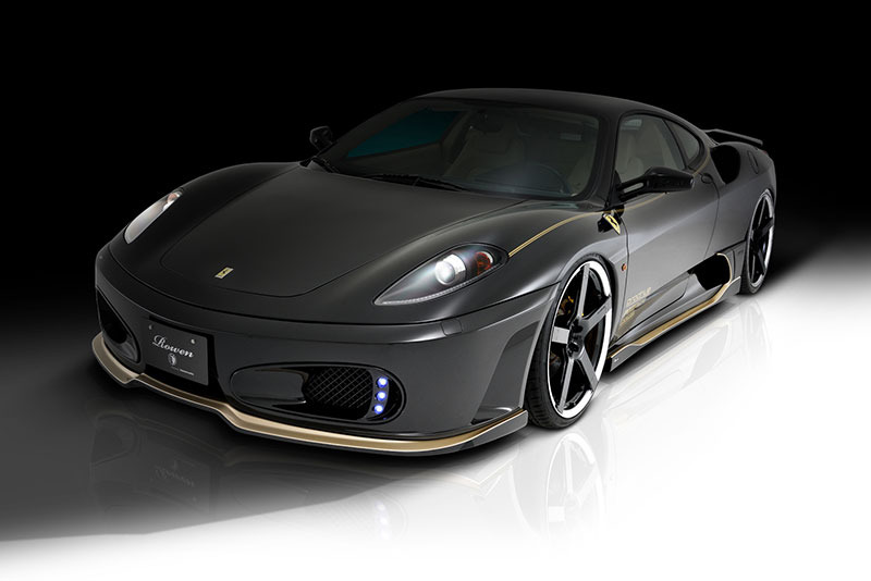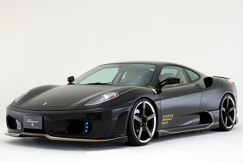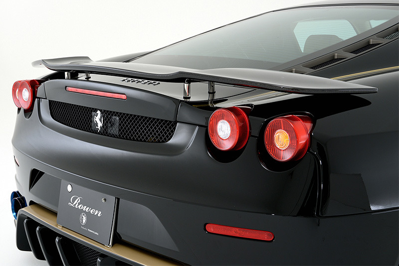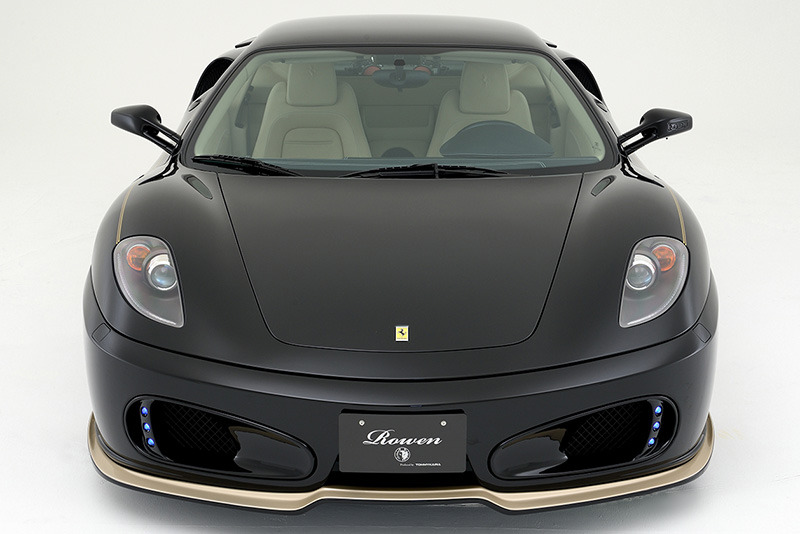 時光飛逝,從某個角度來看,Ferrari F430似乎已經逐漸退潮,但是如果將車況保存得完整或是配上精美改裝部品,魅力依舊強大。今天帶給各位由日本改裝廠Rowen Design所操刀的黑色塗裝Ferrari F430,外觀方面選用前下巴、側裙組、後下擾流板與後上擾流尾翼等部品,同時於前保桿處新增LED日間行車燈組並於加裝套件部分施以局部金色塗裝。另外再換裝Rowen Design鈦合金高性能排氣管與知名品牌Prodrive、型號GC-05N的五幅輪圈,尺寸為前20x8.5J、後20x11J的前後配設定,搭配前235/30R20、後305/25R20的Bridgestone Potenza S001跑胎,營造出難以言喻的雋永質感。