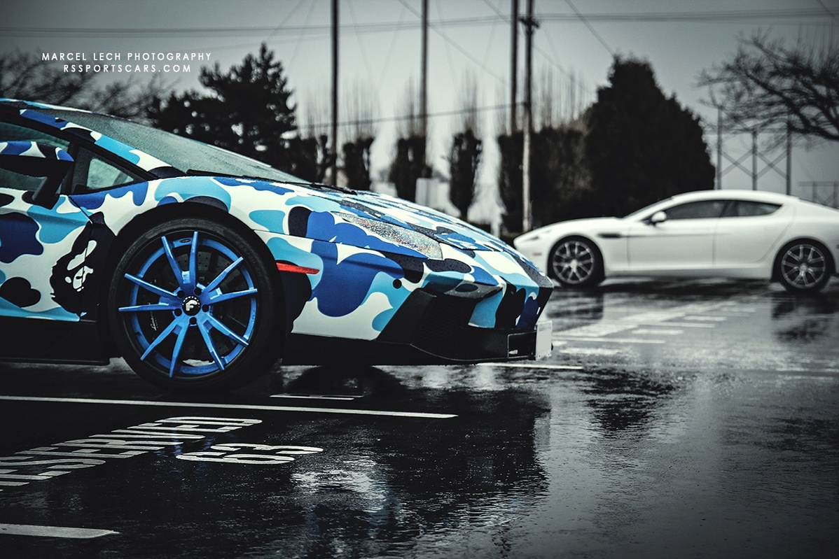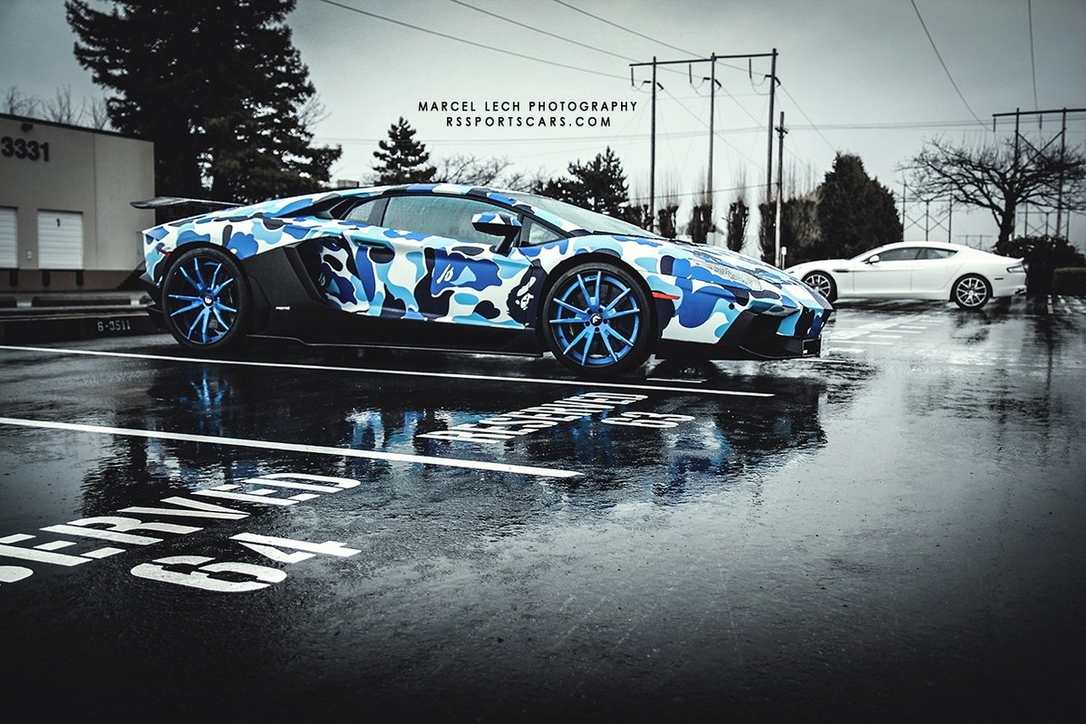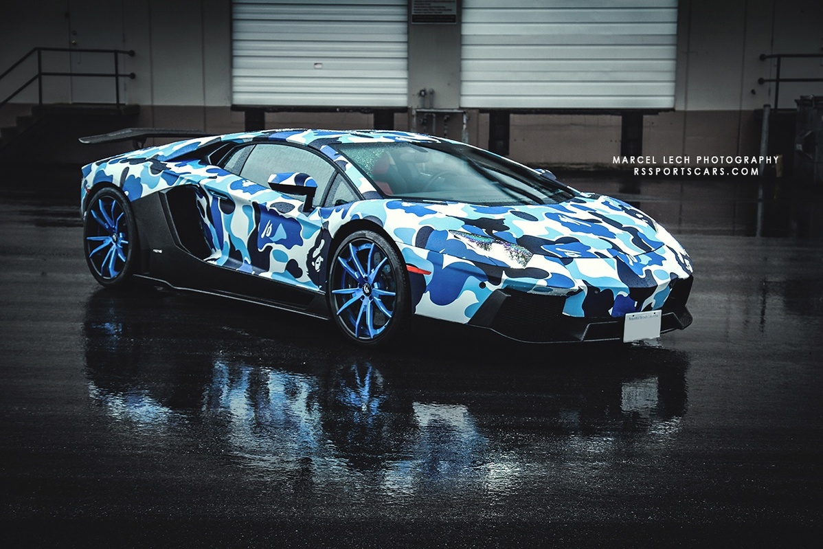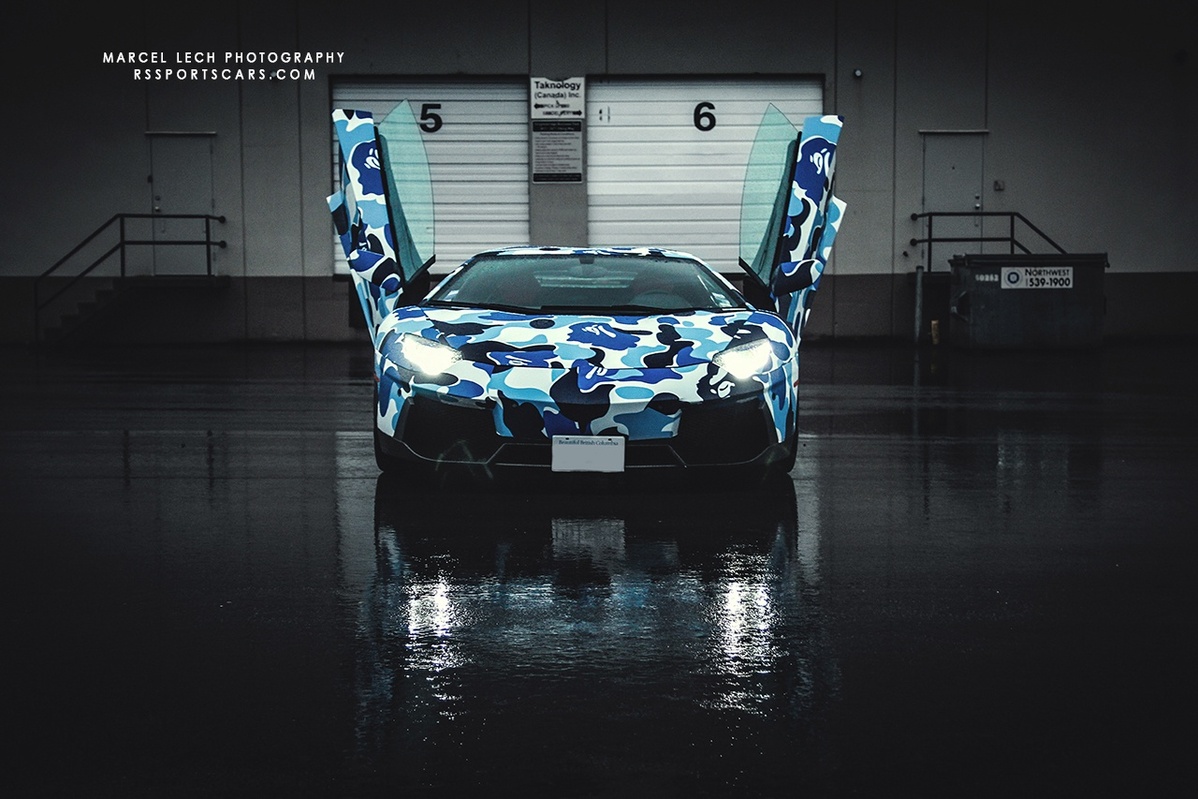 常被老一輩誤以為是鬍鬚張的BAPE應當是讀者們相當熟悉的潮流品牌,而先前也為各位報導過覆上綠色BAPE圖騰的Ferrari 458 Italia,而今天要帶給各位由攝影專家Marcel Lech所拍攝的是藍色版本、BAPE式樣的Lamborghini Aventador LP700-4。該車另外裝有日本品牌Liberty Walk Performance出品的碳纖維前下巴、側裙組、後下擾流板與後上擾流尾翼等配件、輪圈來自Forgiato Wheels,而排氣管則選用Innotech部品,無疑地,即使沒有這些精裝部品加持,這樣貼滿BAPE圖騰有Lamborghini Aventador LP700-4也絕對吸睛滿點。