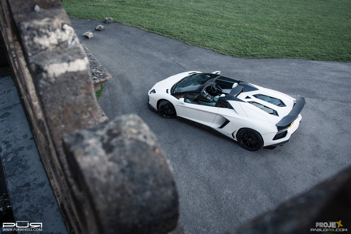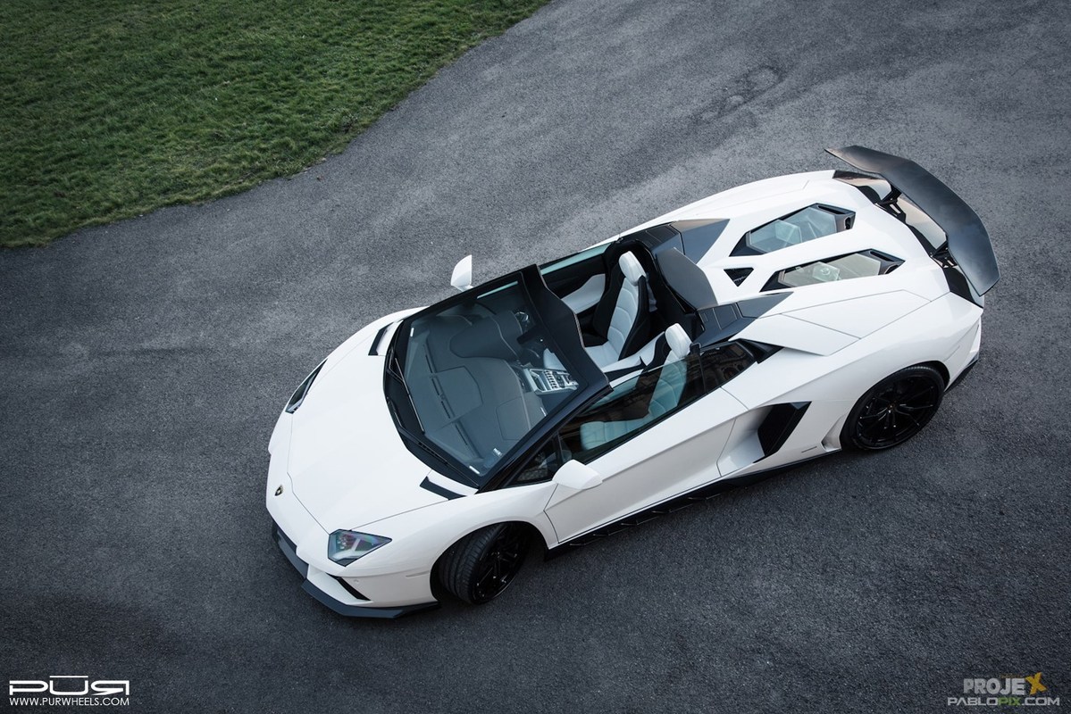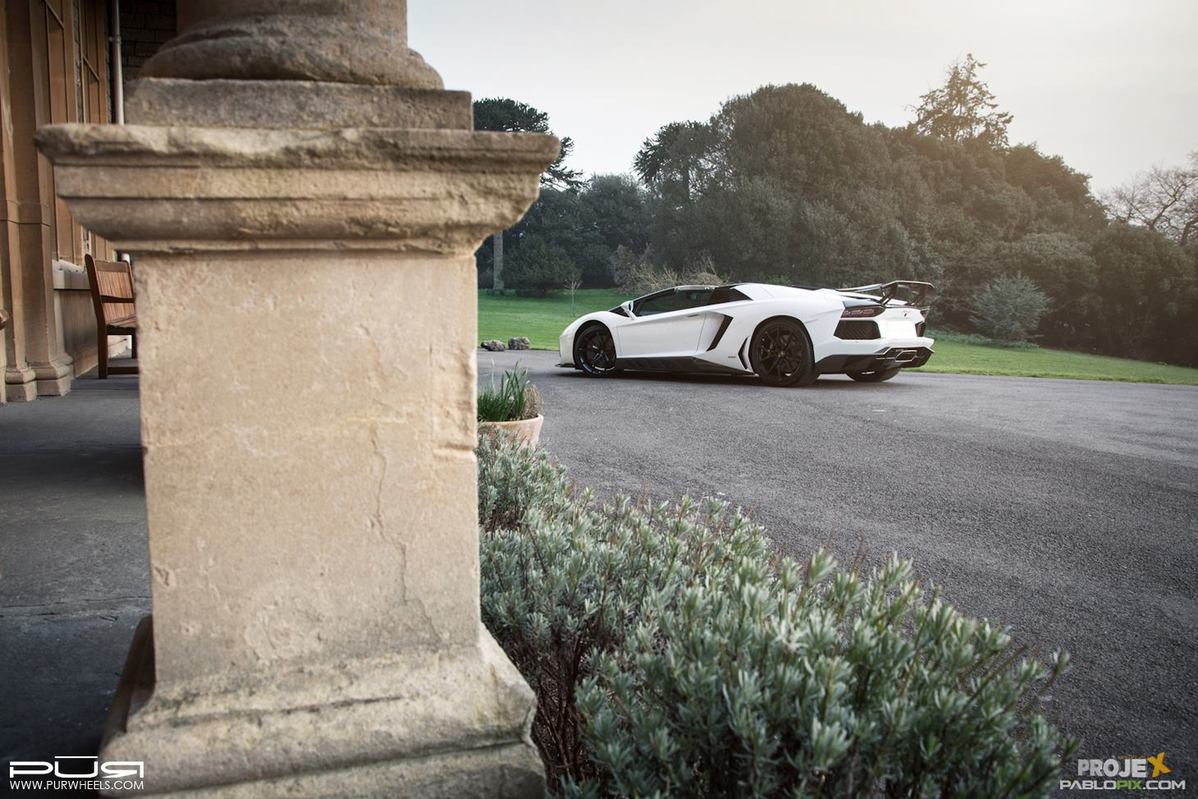 今天與各位分享英國著名店家Projex Design UK所操刀改裝的Lamborghini Aventador LP700-4 Roadster,由攝影專家Pablopix.com提供一系列精美照片。熟悉Lamborghini Aventador車系改裝部品的眼尖讀者想必一眼就認得出,這部上空超級跑車裝著的是來自Novitec Torado的碳纖維側裙組,而該車另外加裝PUR出品的碳纖維前下巴、後下擾流板與後上擾流尾翼等部品,連同原廠黑色塗裝的Dione版本輪圈,配在白色塗裝的車身上相當協調耐看。
