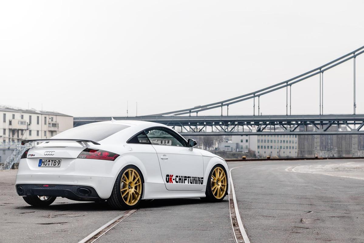 不過,這樣的容積效率對於改裝廠來說可能只是piece of cake,而且物理學也告訴我們,排氣量絕對攸關一切,否則日本改裝大廠JUN也不會將Mitsubishi Lancer Evolution身上的2.0升4G63引擎擴缸至2.4升以追求極限,再說排氣量大的渦輪引擎的確有較不易衰退的優勢,而鑽研動力提升的改裝廠OK-ChipTuning也如此認為。今天帶給各位由OK-ChipTuning所操刀的Audi TT-RS Plus,原廠搭載2.5升渦輪增壓五缸引擎,最大馬力為360HP,於出廠時便已經是TT車系當中的王者,而OK-ChipTuning改寫電腦程式、換上高效能進氣系統、Wagner Evo 2冷卻系統與DK-Turbotecnic Dortmund高性能排氣管,將最大馬力提升至453HP,扭力增強至67.2kgm,使得這部Audi小跑車繳出4.1秒的優異0-100km/hr成績。