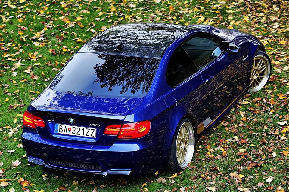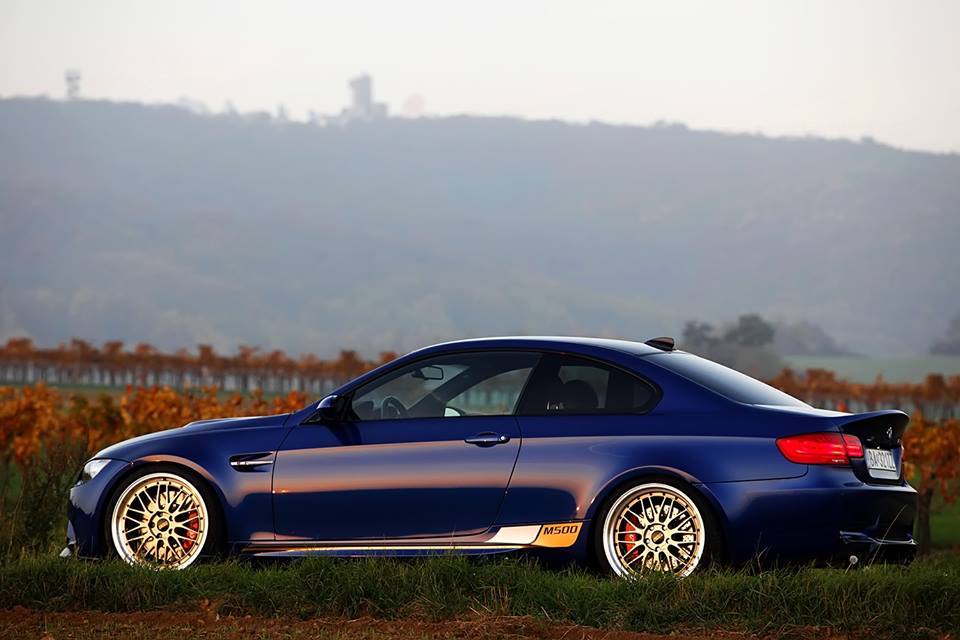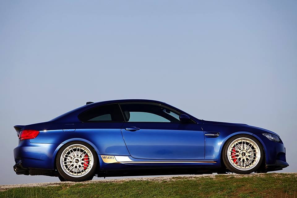 外觀方面,Petersport選用碳纖維前下巴、後下擾流板、後上擾流尾翼與開孔引擎蓋等部品。除此之外,改裝廠換裝高低軟硬可調式避震器將車身略微降低並且選用知名品牌BBS Wheels出品、型號LM的金色版本19吋輪圈搭配Pirelli P Zero高性能跑胎,同時換裝前六、後四活塞煞車系統以強化制動性。最後,Petersport將這部獨特風格的BMW E92 M3改裝車取名M500 GTR Golden Edition。