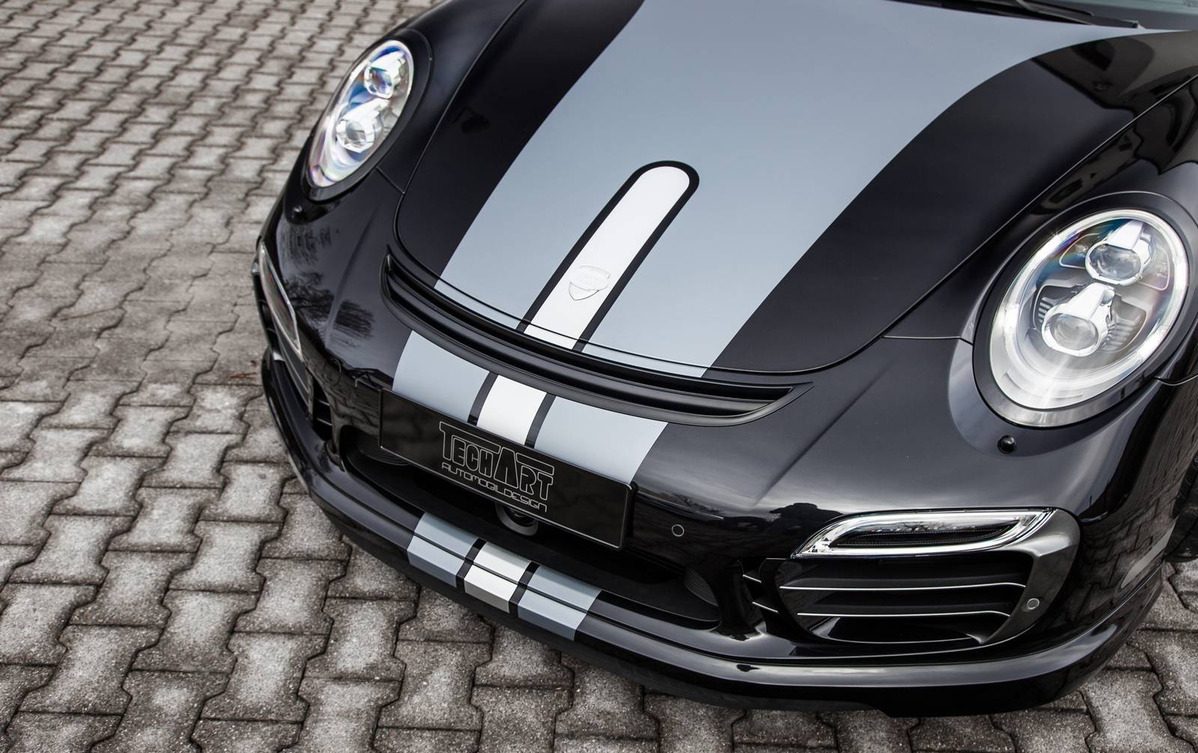 在原廠未改裝的情況下,2014年新款Porsche 911 Turbo原廠搭載3.8升水平對臥六缸雙渦輪增壓引擎,最大馬力為520HP,扭力峰值有67.3kgm,輔以PDK雙離合器變速箱與跑車升級套件,百里加速僅需3.2秒便可完成,更高階的Turbo S則僅需3.1秒。,皆已相當強悍。然而,身為Porsche改裝圈內領導品牌,TechArt從不怠慢,從埃森車展結束後便閉門造車,而強調耐用度與妥善率的他們,最後決定以代號TA091/T1.1的動力套件、將Porsche 991 Turbo S的最大馬力提升至620HP,若搭配原廠Sport Plus模式,這部TechArt 991 Turbo S能夠於2.8秒由靜止加速至時速100km/hr,強悍至極。