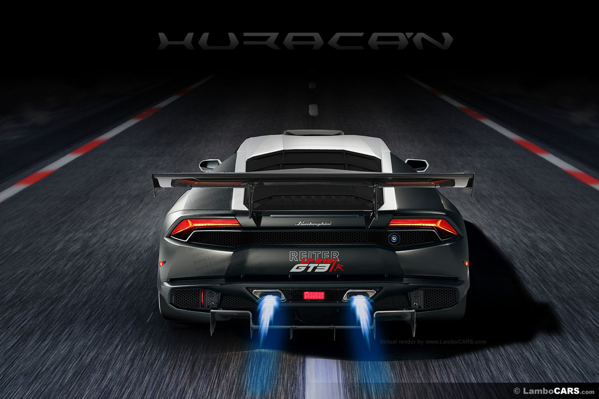 因此,面對Lamborghini Gallardo後繼車款Lamborghini Huracán LP610-4的問世,Reiter Engineering目前正在積極研發相關套件,並且預料將會在第一時間推出、取代現行Gallardo GT3廠車代表各大車隊出賽。然而,有關Lamborghini Huracán LP610-4廠車的細節,目前Reiter Engineering尚未對外公布消息,而知名媒體LamboCARS則是暫時以Lamborghini Huracán LP610 GT3-R的名稱、模擬出該部新款廠車的外觀造型。從這些假想圖來看,Reiter Engineering為這部新生代廠車換裝加裝整套碳纖維空力套件、換上單孔式樣放射狀輪圈、大型後擾流尾翼、輕量化玻璃與造型獨特的後下擾流板,同時將排氣管移至車身中央,無疑地跑格十足!