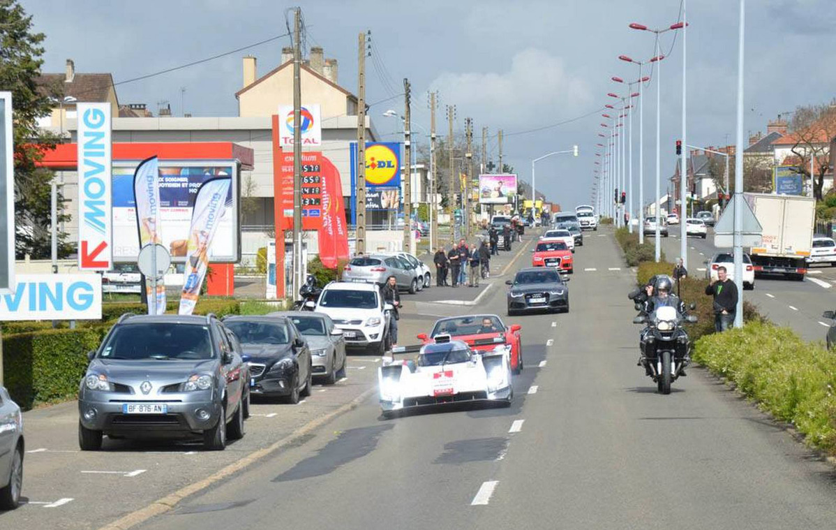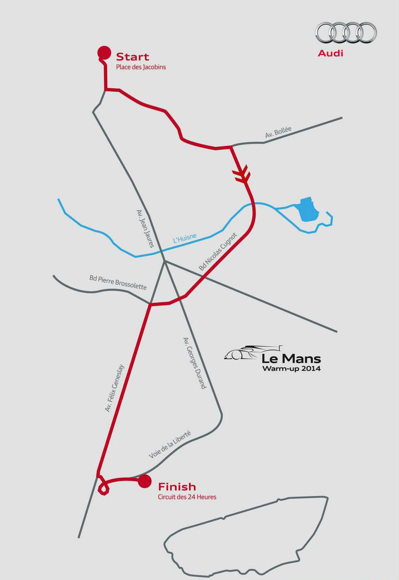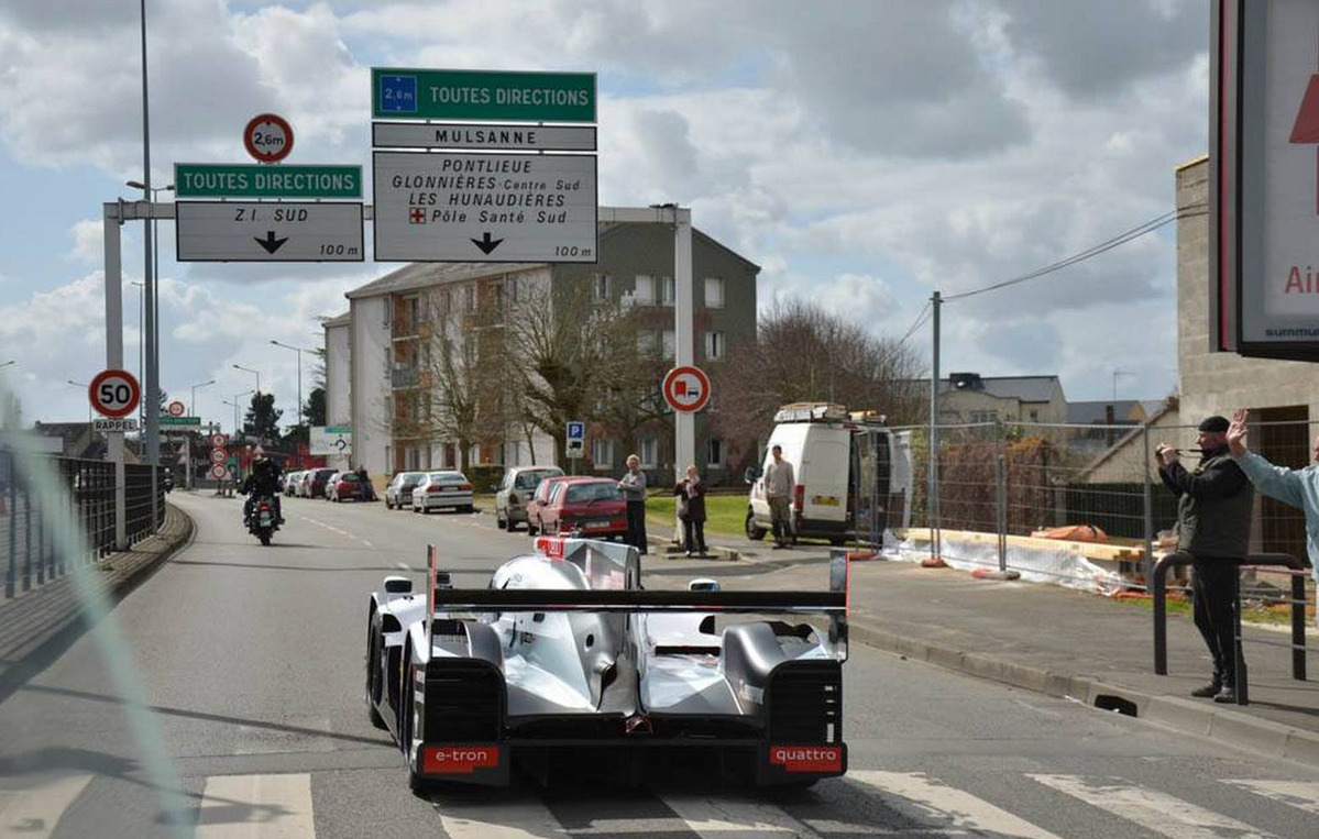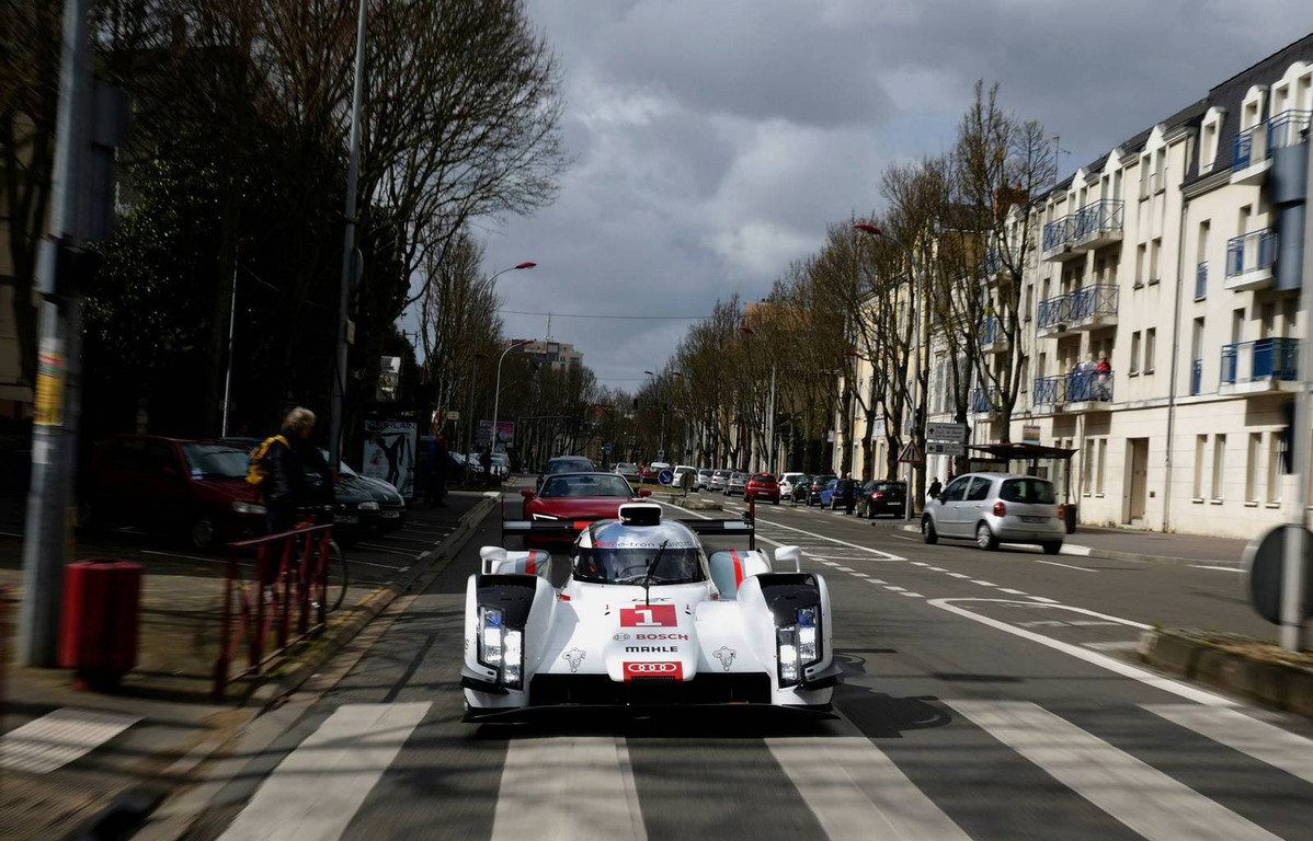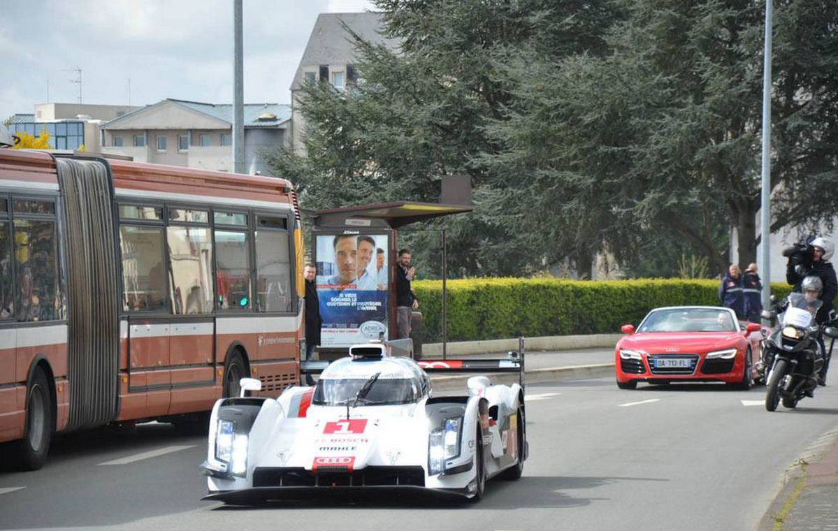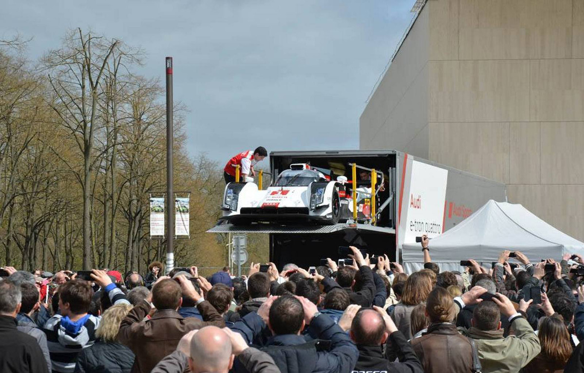 德國車廠Audi繼先前於官方網站發表2014 Audi R18 e-tron Quattro的照片後,原本預定於六月在24小時利曼耐久賽事中發表的它提前於街頭曝光,而且是以動態發表會之型態進行。發表會於法國(France)市中心的雅各賓廣場(Place des Jacobins)開始,再由賽車手Tom Kristensen駕駛著R18 e-tron Quattro前往賽道,全程約15公里的路途中,身後跟著Audi R8 Spyder、Audi RS6與Audi RS7等性能車款,一路上引來無數觀眾爭相目睹。