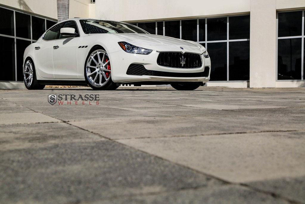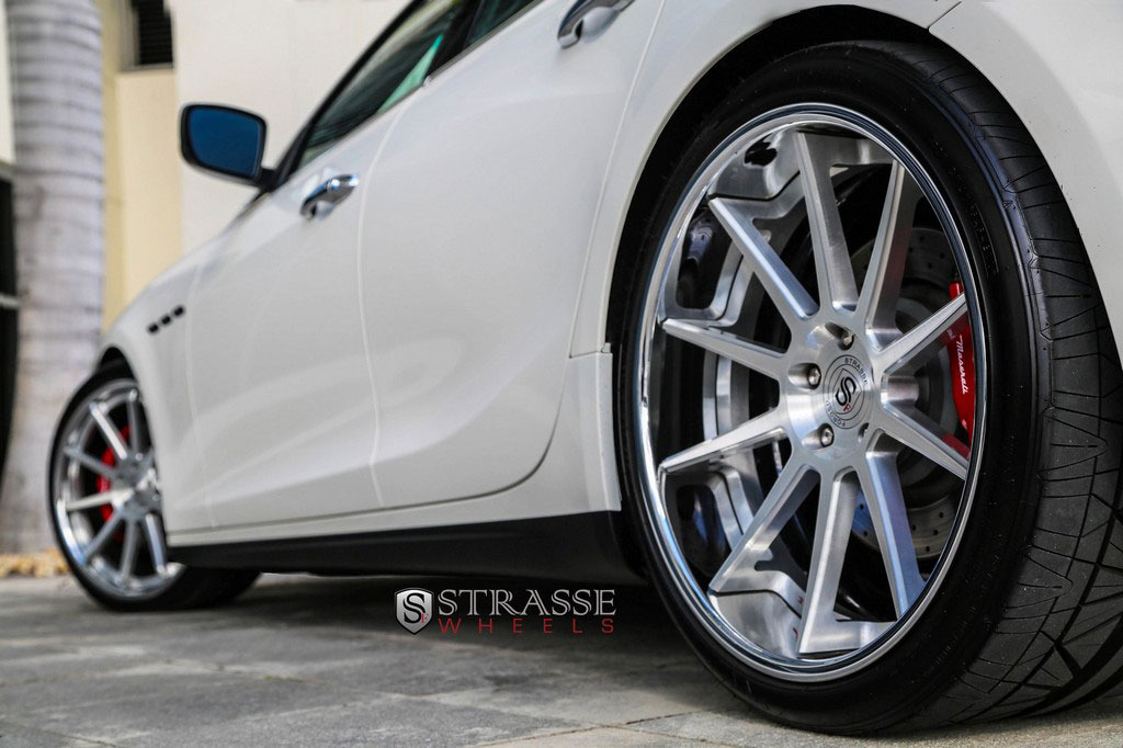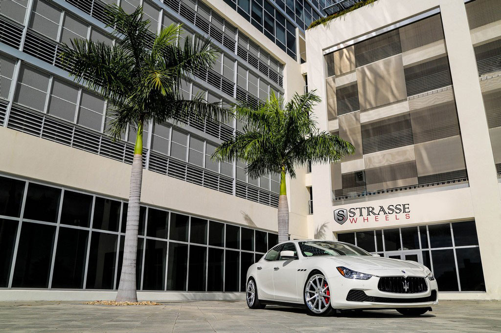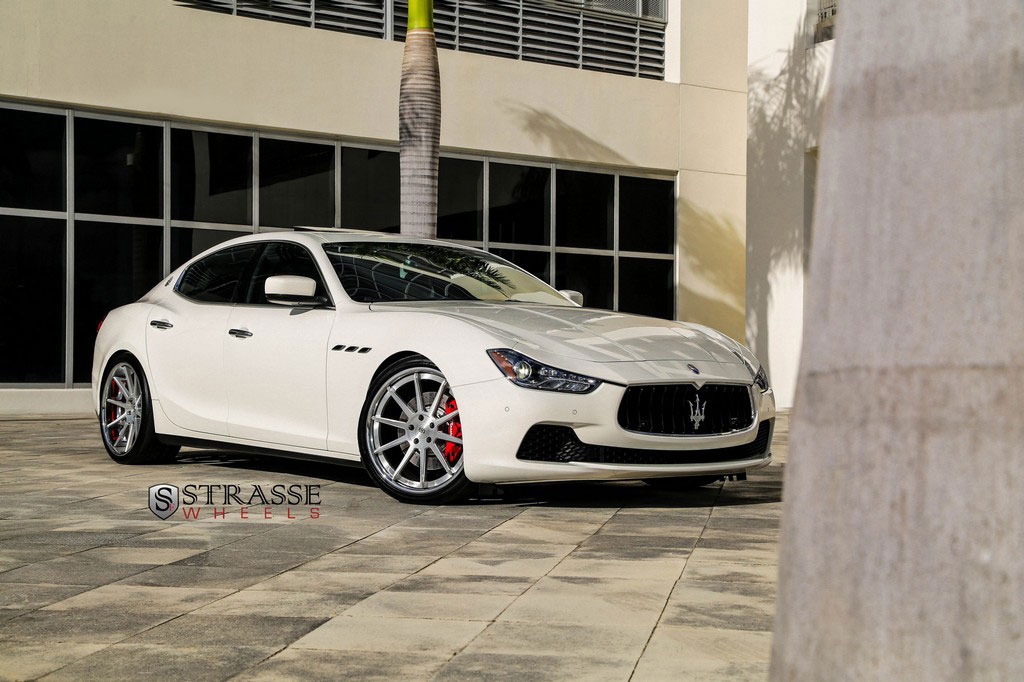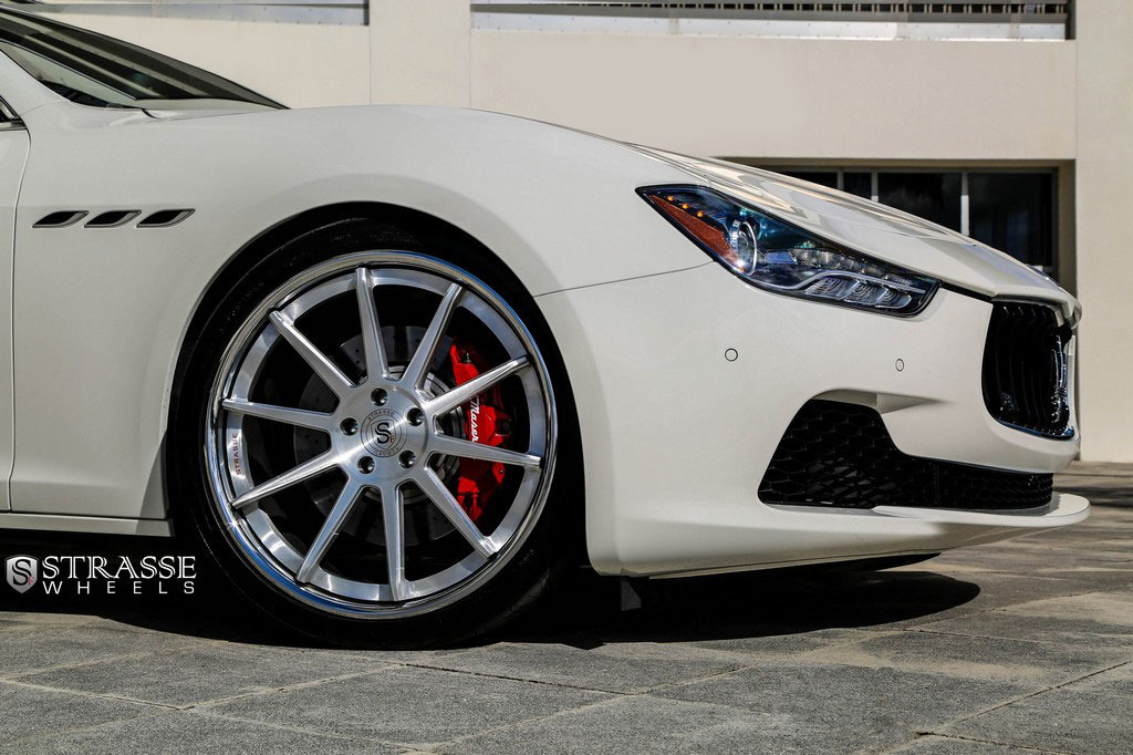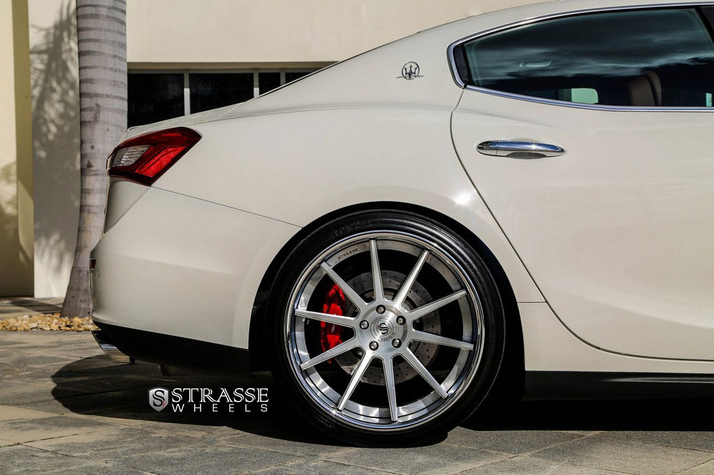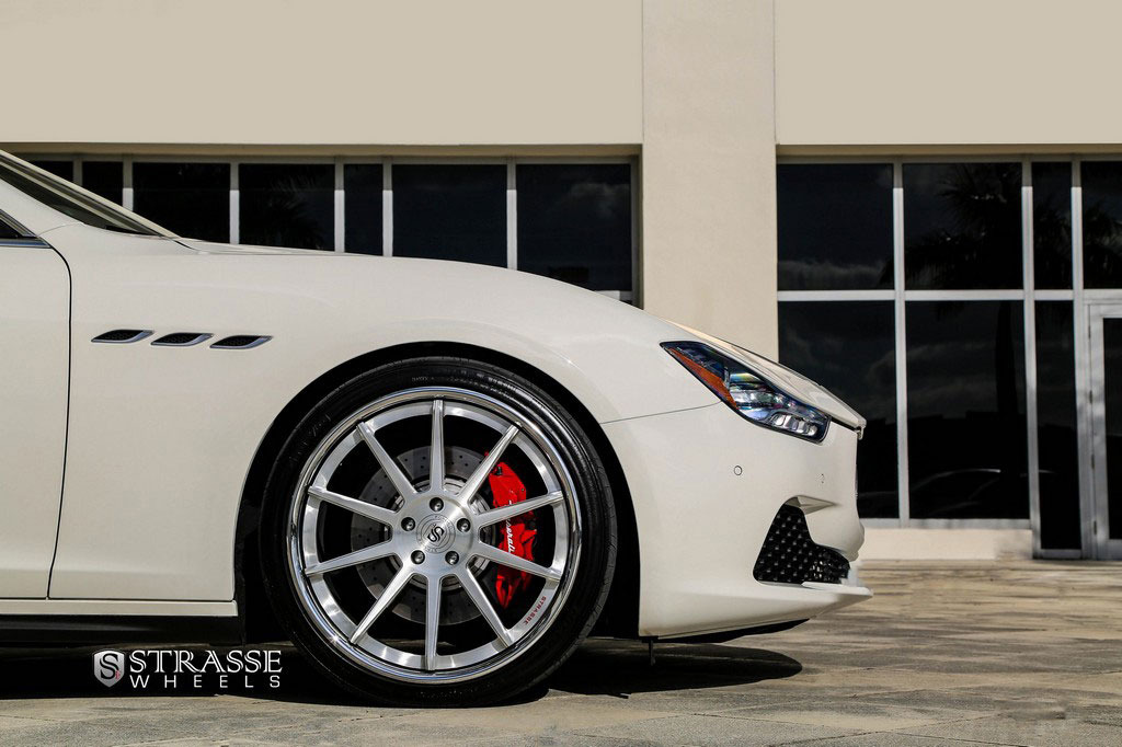 今天帶給各位的是一部由輪圈品牌Strasse Wheels所推出2014年款式Maserati Ghibli S Q4車型,換裝型號R10的內凹款式輪圈,尺寸採用前21x9J、後21x10.5J的前後配設定,搭配Nitto INVO高性能跑胎,再換裝短彈簧將車身略微降低,除了提升業已不錯的操控性能之外,也營造出與原廠不同的動感跑格。