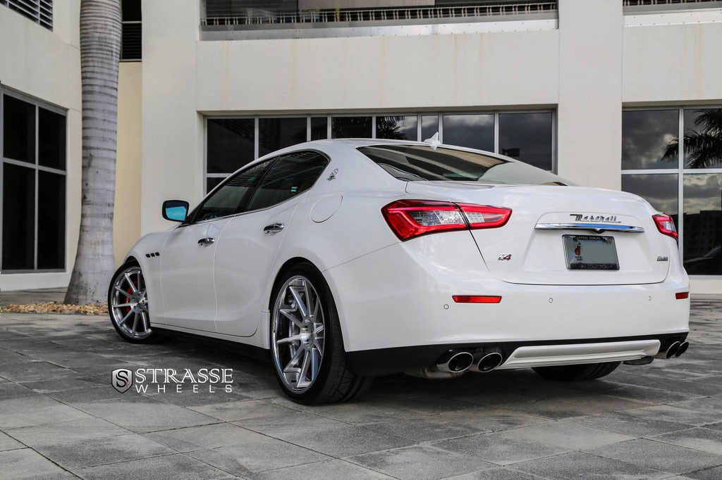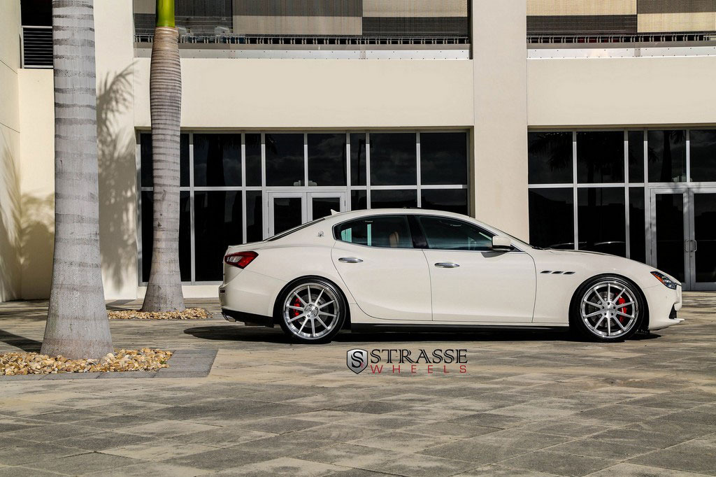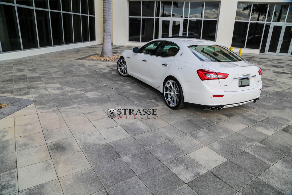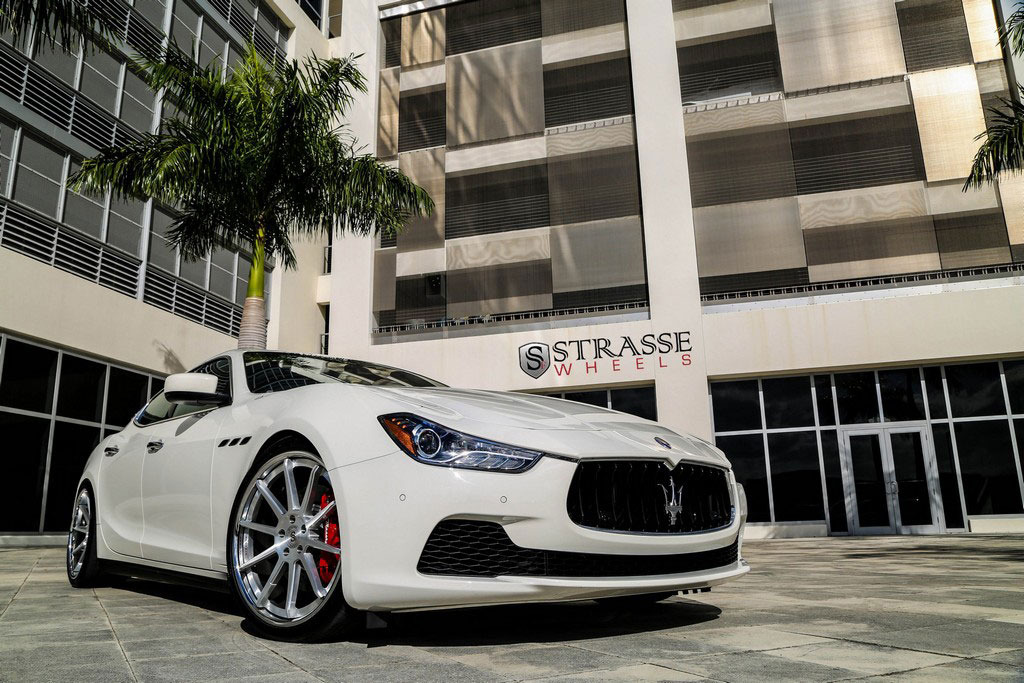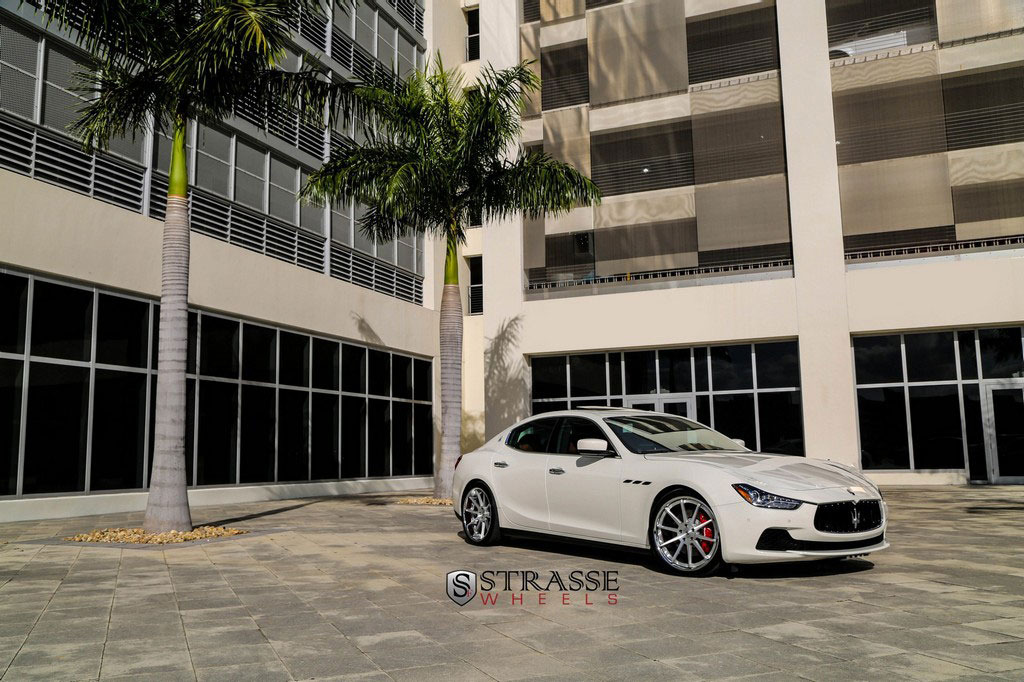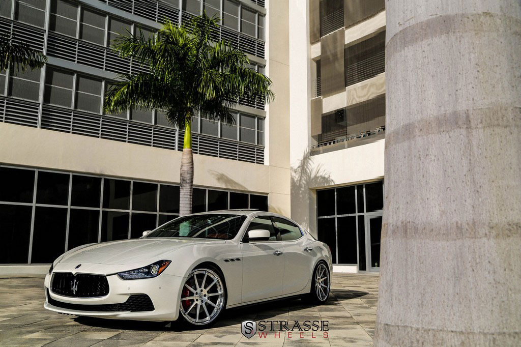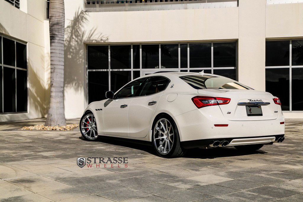 今天帶給各位的是一部由輪圈品牌Strasse Wheels所推出2014年款式Maserati Ghibli S Q4車型,換裝型號R10的內凹款式輪圈,尺寸採用前21x9J、後21x10.5J的前後配設定,搭配Nitto INVO高性能跑胎,再換裝短彈簧將車身略微降低,除了提升業已不錯的操控性能之外,也營造出與原廠不同的動感跑格。