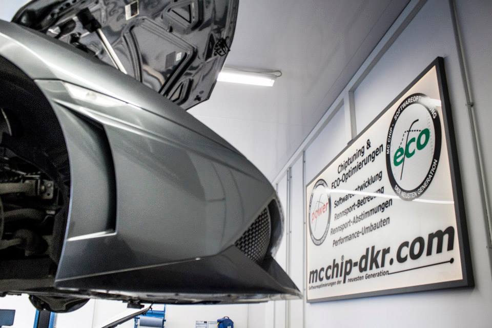 眼前這部鐵灰色塗裝、隔熱紙貼得極黑的Lamborghini Gallardo LP560-4便是Mcchip-DKR首部該組機械增壓套件之實裝車,外觀上維持得相當素雅,僅以Gallardo LP570-4 Superleggera前保桿、側裙組與後下擾流板等部品點綴,配上原廠亮面黑色塗裝Callisto款式輪圈與陶瓷煞車系統,隱約中散發出高質感殺氣,期待它完工後的實際測試報導!