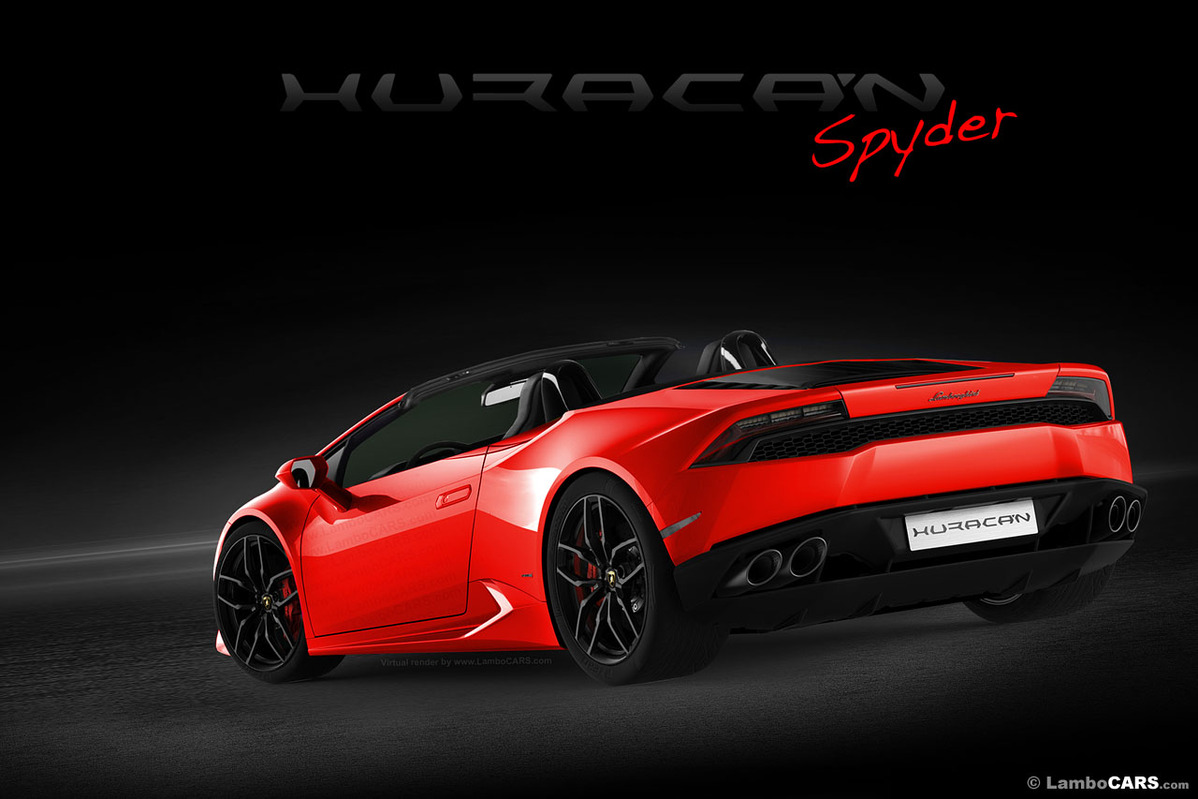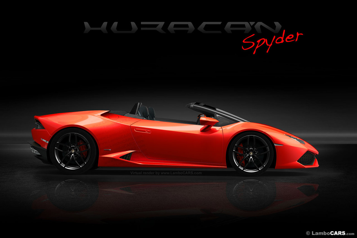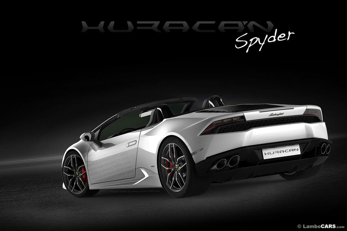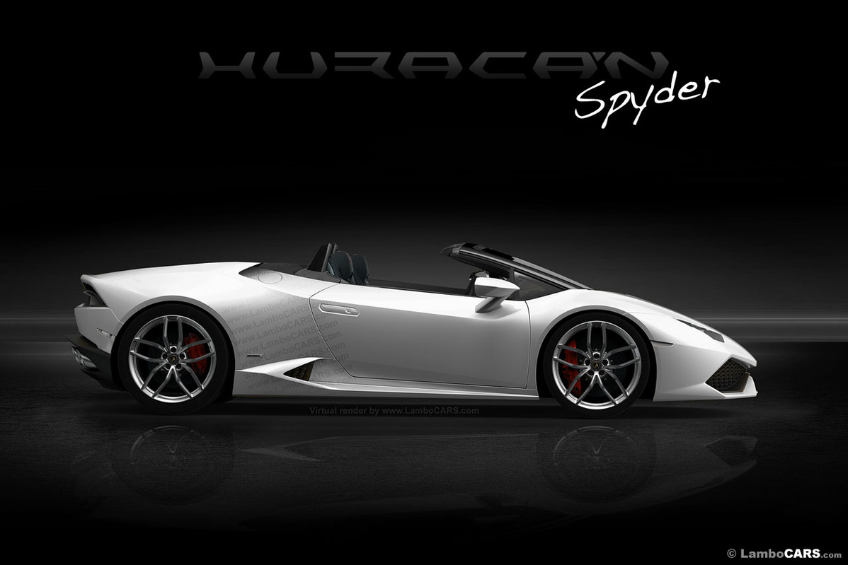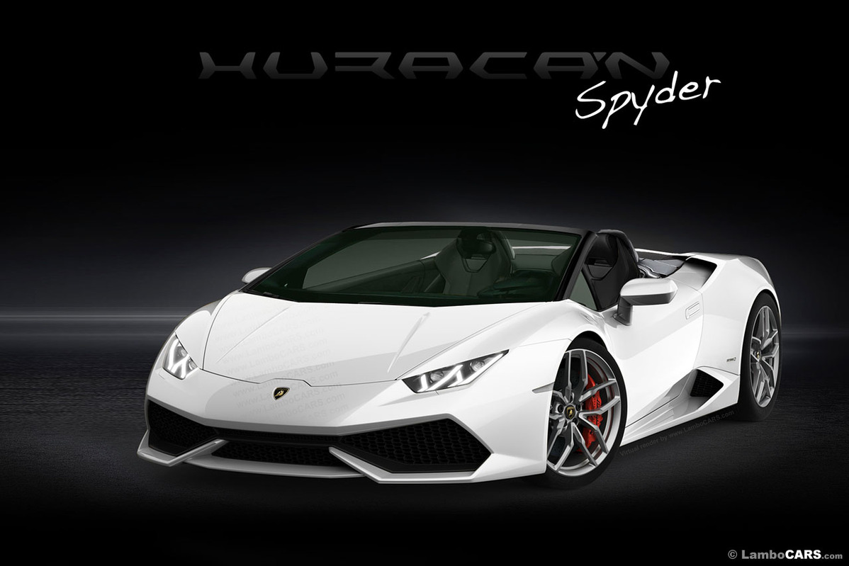 根據消息指出,Lamborghini Huracán LP610-4會比照Gallardo車系,在產品週期內推出Spyder敞篷車型與預料會有650HP最大馬力的輕量化車型,相當令人期待。另外,知名媒體LamboCars近期公布數張假想圖,大膽預測敞篷版本Lamborghini Huracán LP610-4 Spyder將會捨棄Gallardo Spyder所使用的軟頂敞篷配置,改為輕量化碳纖維材質打造而成的複合式硬頂敞篷結構,同時在椅背後方加上防滾架,整體造型極為新穎前衛。