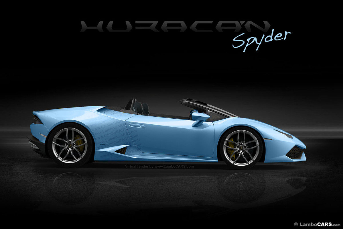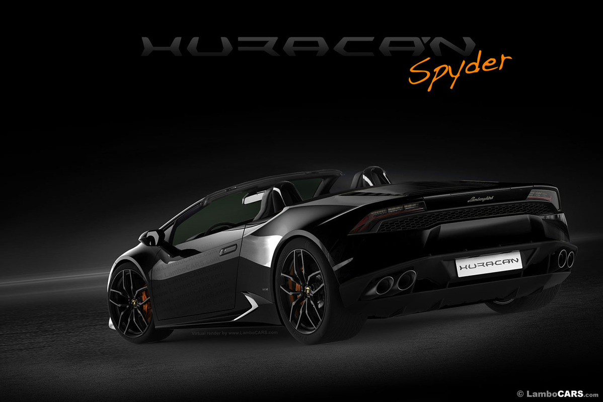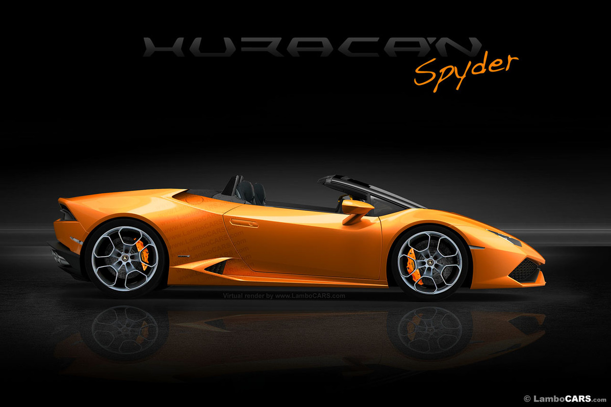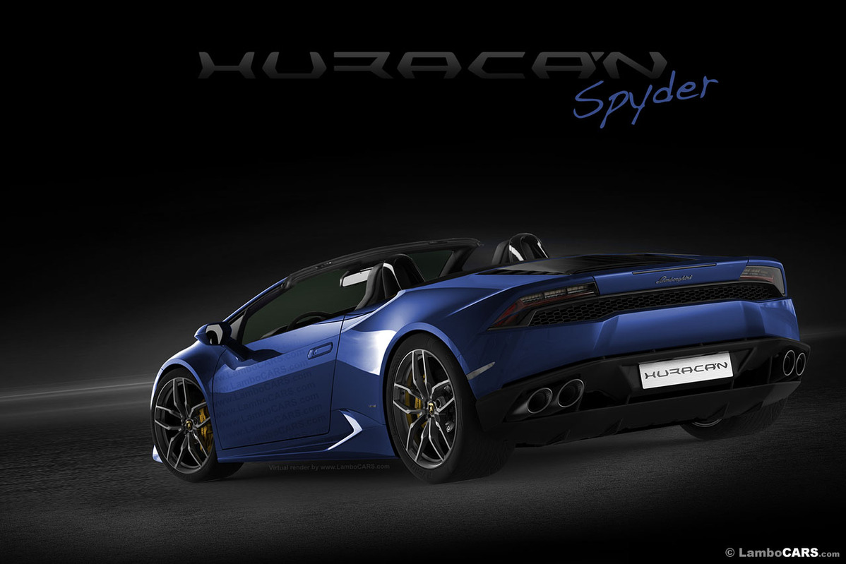 根據消息指出,Lamborghini Huracán LP610-4會比照Gallardo車系,在產品週期內推出Spyder敞篷車型與預料會有650HP最大馬力的輕量化車型,相當令人期待。另外,知名媒體LamboCars近期公布數張假想圖,大膽預測敞篷版本Lamborghini Huracán LP610-4 Spyder將會捨棄Gallardo Spyder所使用的軟頂敞篷配置,改為輕量化碳纖維材質打造而成的複合式硬頂敞篷結構,同時在椅背後方加上防滾架,整體造型極為新穎前衛。
