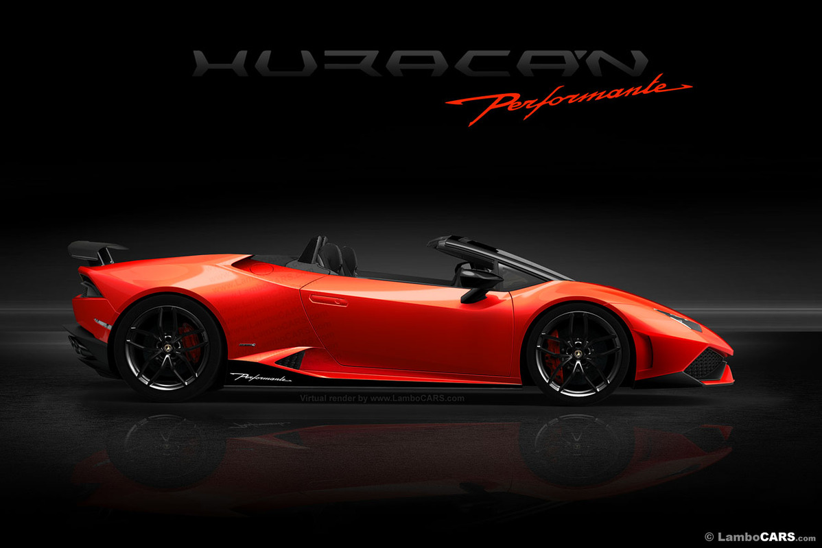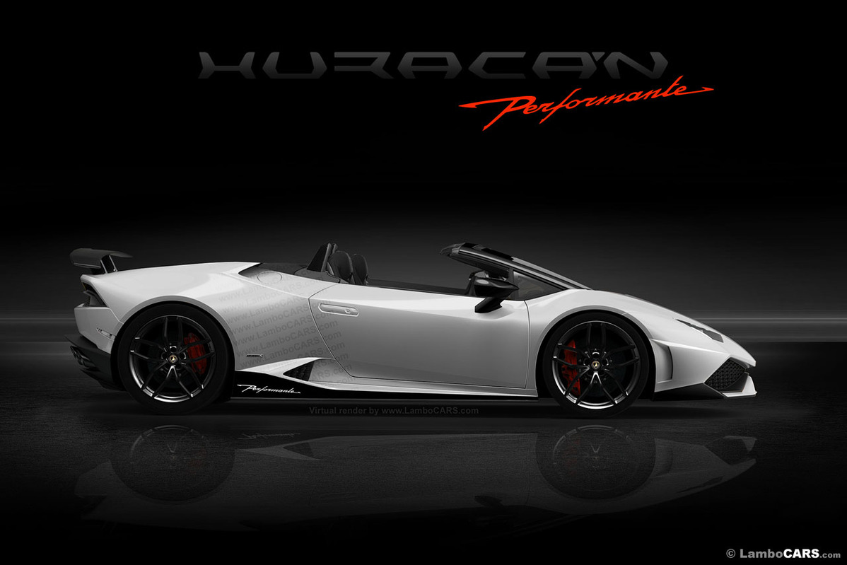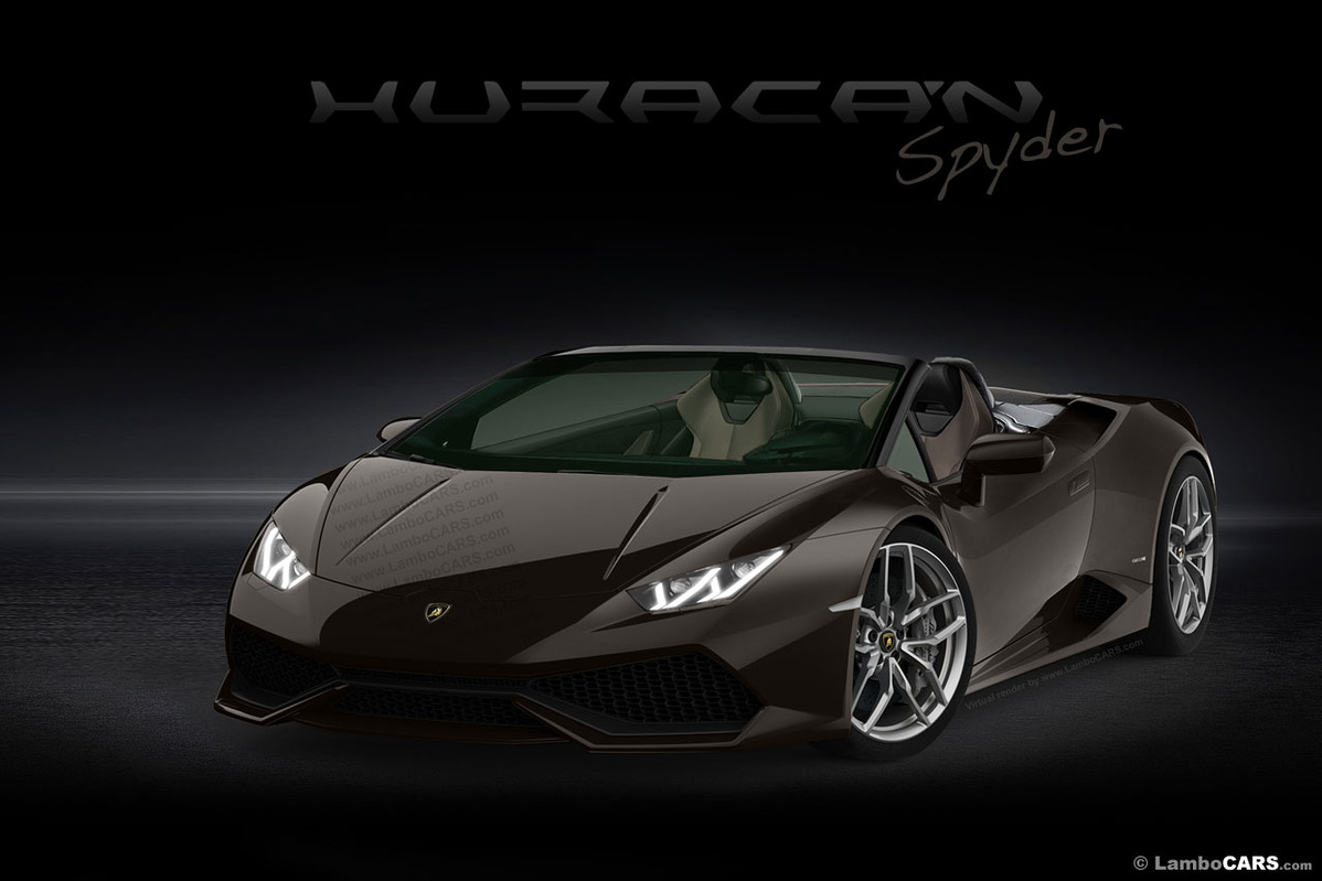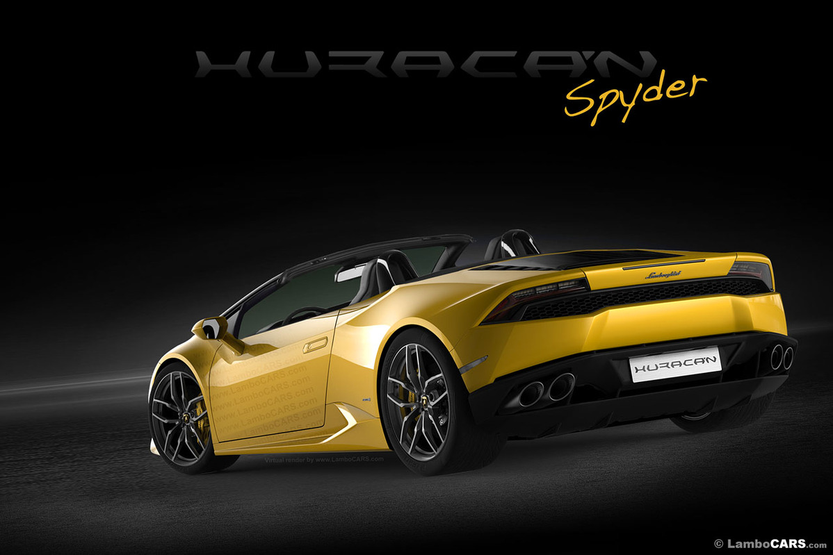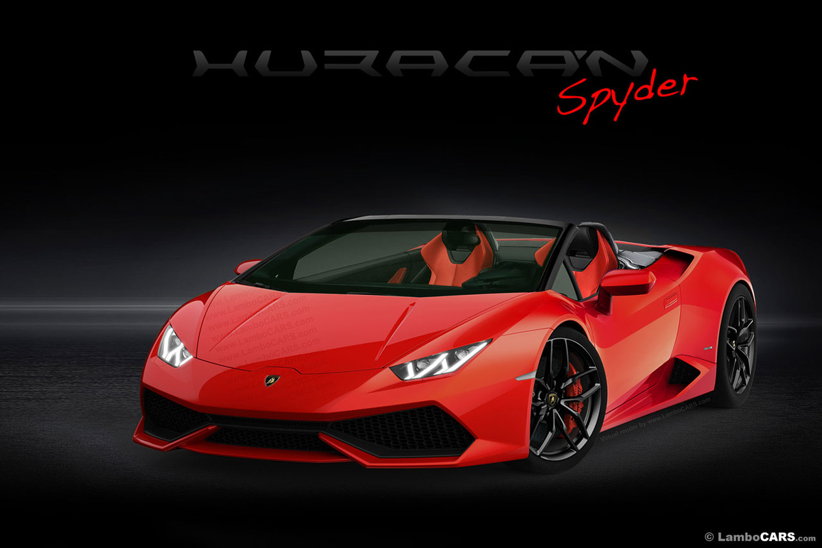 根據消息指出,Lamborghini Huracán LP610-4會比照Gallardo車系,在產品週期內推出Spyder敞篷車型與預料會有650HP最大馬力的輕量化車型,相當令人期待。另外,知名媒體LamboCars近期公布數張假想圖,大膽預測敞篷版本Lamborghini Huracán LP610-4 Spyder將會捨棄Gallardo Spyder所使用的軟頂敞篷配置,改為輕量化碳纖維材質打造而成的複合式硬頂敞篷結構,同時在椅背後方加上防滾架,整體造型極為新穎前衛。