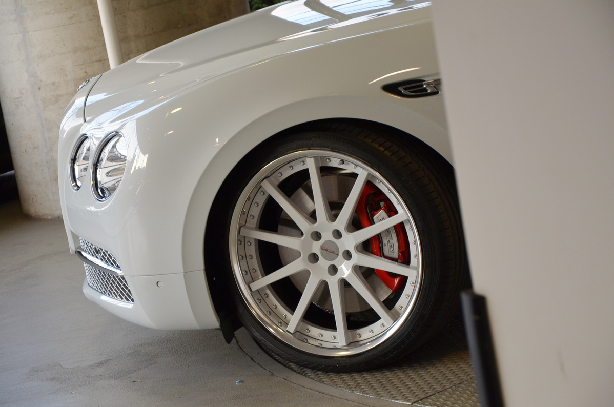 今天帶給各位由日本(Japan)知名汽車團隊Bond Group所推出的2014年Bentley Flying Spur W12,為了與其雪白高雅的修長車身搭配,店家選用來自Hyper Forged Wheels、型號HF-C10的22吋放射狀多片式輪圈,中心採用白色塗裝,外圈則是以電鍍拋光處理,搭配295/30R22的Continental Sport Contact 5P高性能跑胎,增添這部英國豪華房車的動感氣勢。