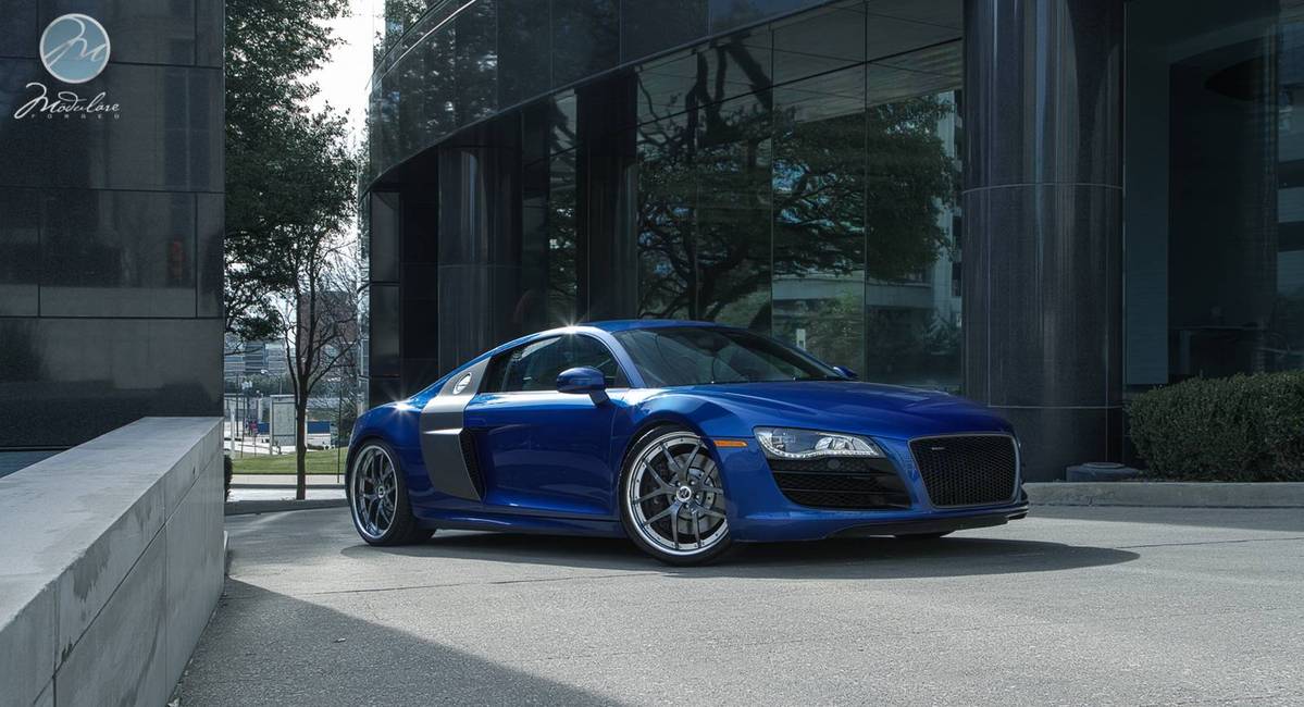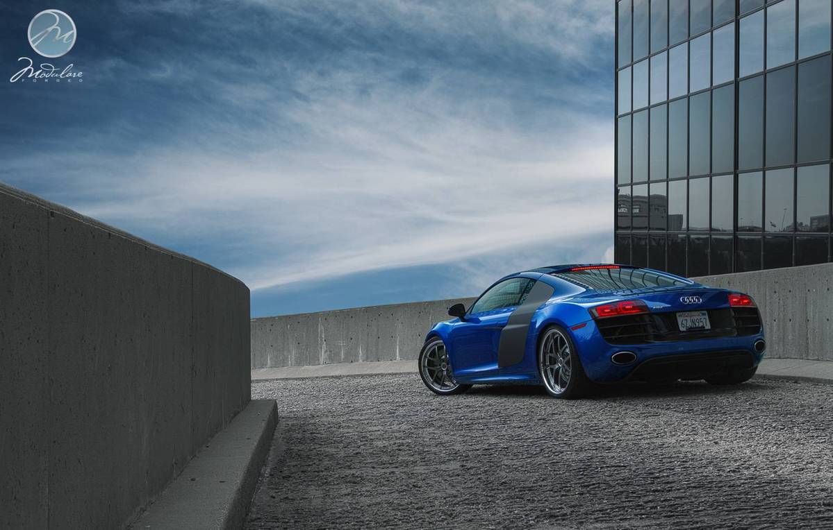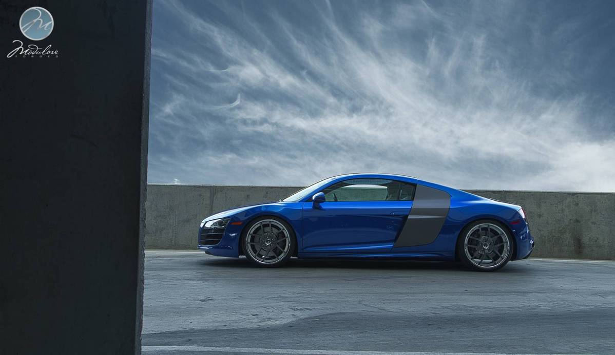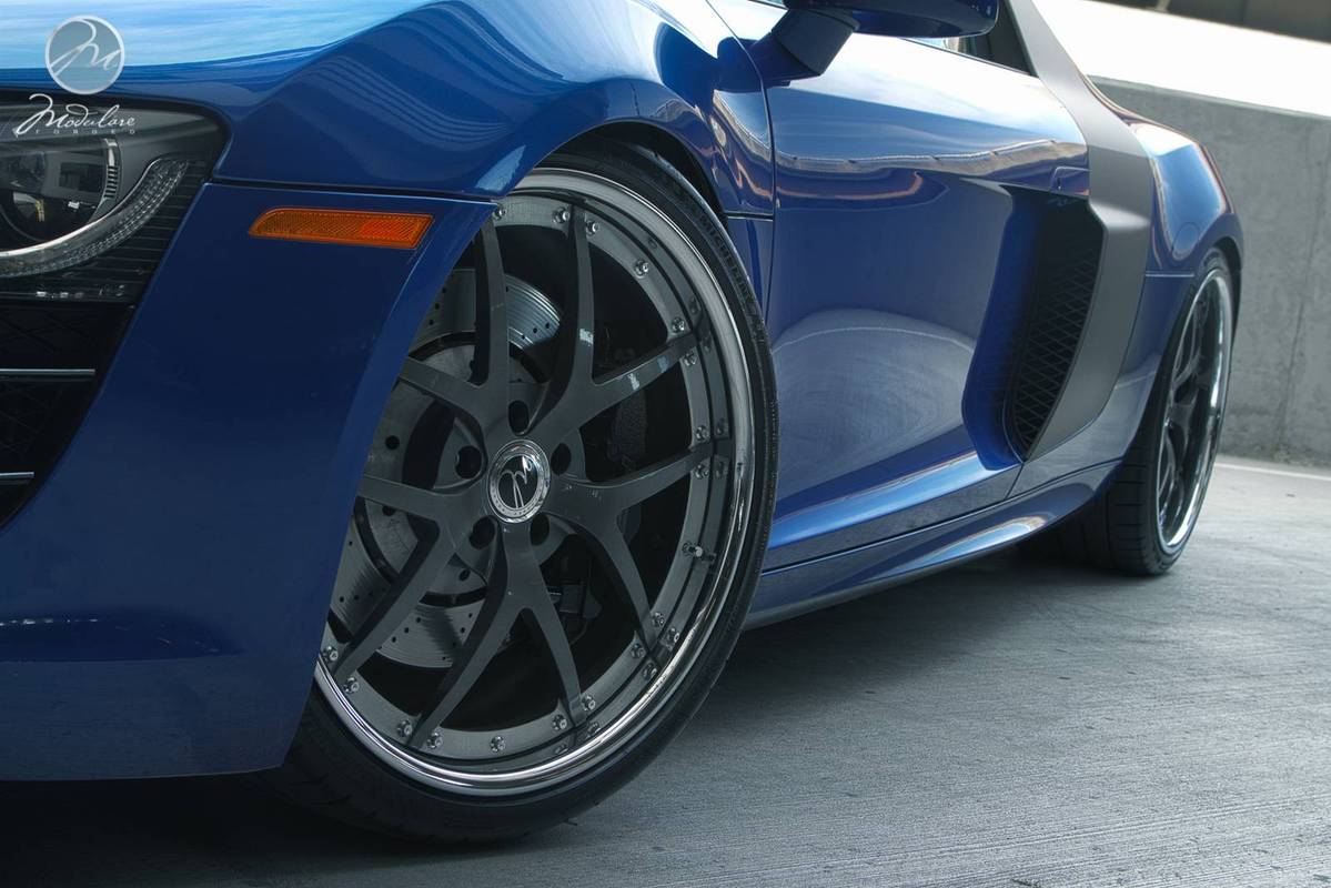 今天帶給各位一部由輪圈品牌Modulare Wheels提供、身披少見的藍色塗裝Audi R8 V10,足登型號M18的多片式輪圈,尺寸為前20x8.5J、後20x11J的前後配設定,圈面採用鈦灰色烤漆,外唇以電鍍拋光處理,另外換裝高低軟硬可調式避震器組將車身降低,除了提升操控性能外,也營造出貼地飛行的視覺效果,而光是胎圈與懸吊系統的巧妙改裝,便已讓這部德國超級跑車散發出更具質感的跑格。