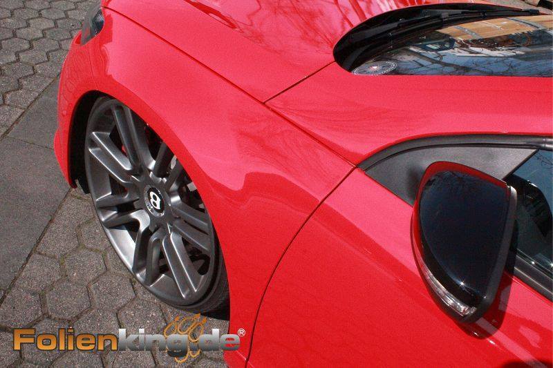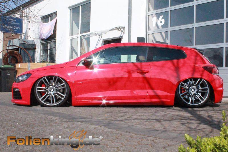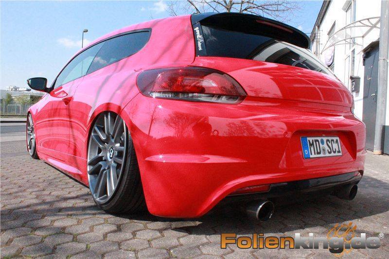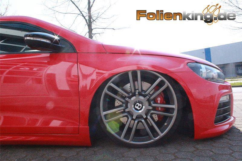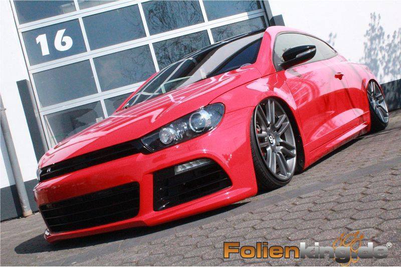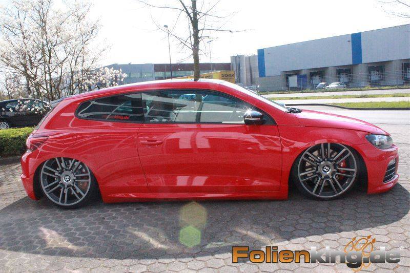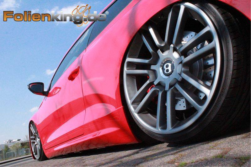 不過,今天我們要談的不是Volkswagen Scirocco的性能表現或使用心得,而是帶給各位一部巧妙改裝的Volkswagen Scirocco,眼睛夠尖銳的讀者們想必在往下看之前便已看出端倪。這是由改裝廠Folienking所操刀的Volkswagen Scirocco,流用來自英國頂級跑車Bentley Continental GT的原裝20吋輪圈,尺寸為20x9J,搭配四條225/30R20的寬扁跑胎,再將車身降得極為低趴。