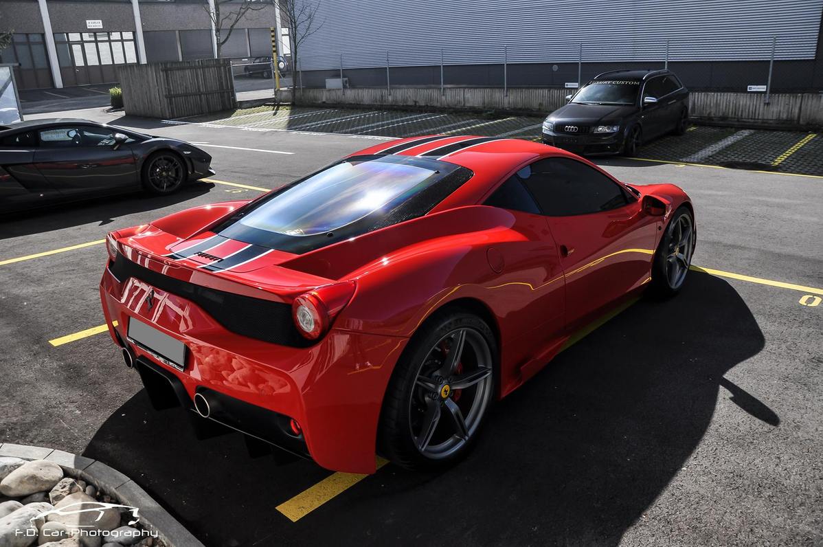 身為Ferrari 458 Italia的輕量化版本車型,近來人氣頗高的Ferrari 458 Speciale擁有高達605HP的最大馬力,使得僅種1,290公斤的它能繳出百里加速3秒整的優異成績、由靜止加速至時速200km/hr也僅需9.1秒,相當強悍。底盤方面,Ferrari 458 Speciale導入SSC(Side Slip angle Control system)側滑角度控制系統,能夠依照不同方向盤轉動幅度、側滑角度與行車速度調整電子循跡系統或防滑差速器介入時機,配上輪胎大廠Michelin最新款式Pilot Sport Cup 2高性能跑胎,於自家Pista di Fiorano測試賽道繳出1分23秒5的絕佳成績,穩坐Ferrari史上最速量產V8跑車的頭銜。