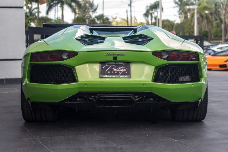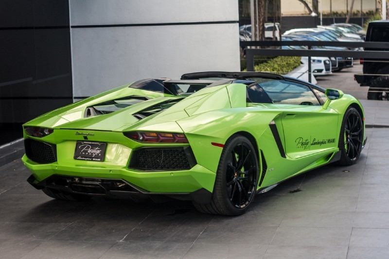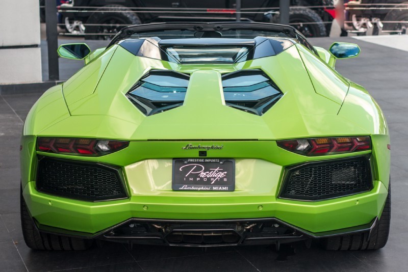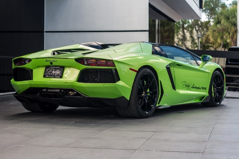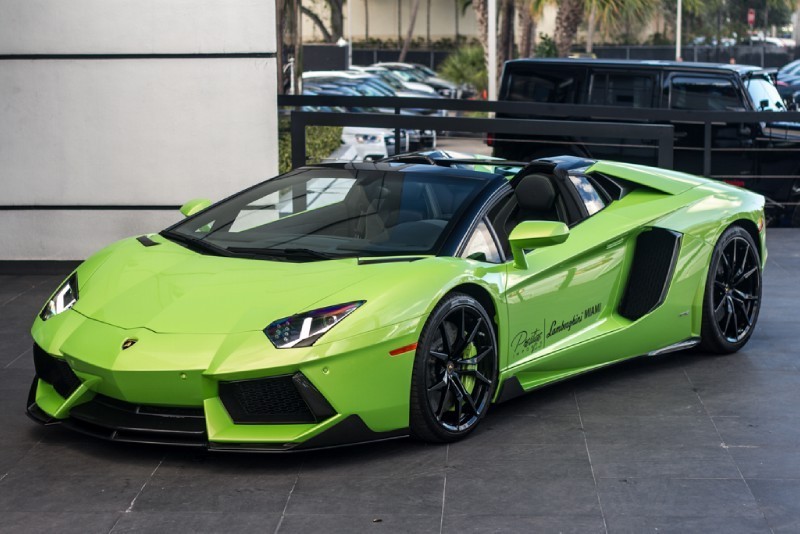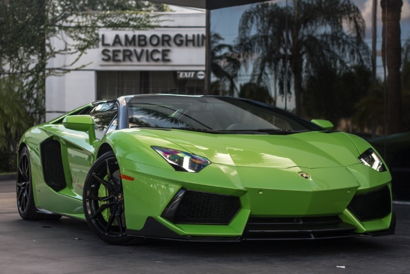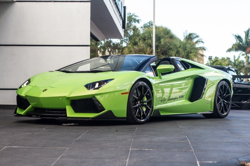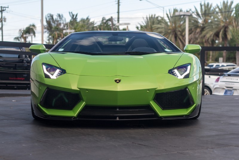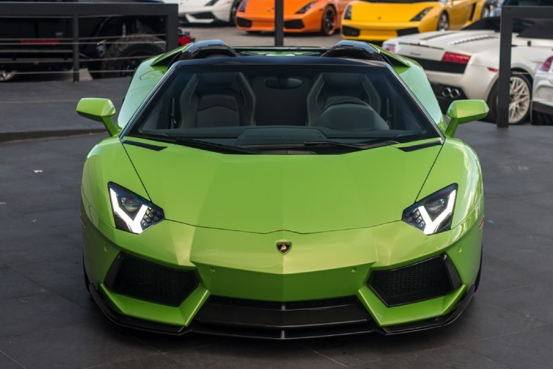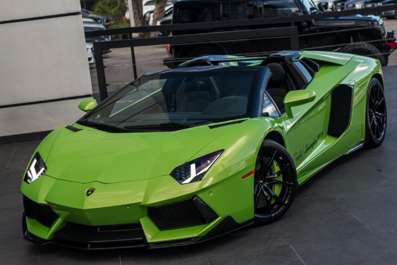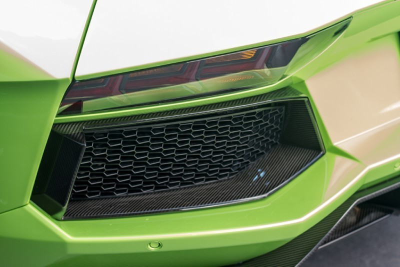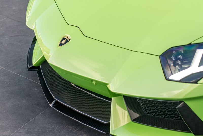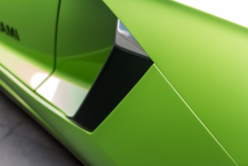 今天帶給各位的是一部2014年款式Lamborghini Aventador LP700-4 Roadster敞篷跑車,車身採用Verde Ithaca綠色塗裝,另外加裝知名品牌Vorsteiner的碳纖維空力套件,包含碳纖維側裙組、前下巴、側邊進氣孔飾蓋、後下擾流板與前後氣壩周邊飾蓋等部品,配上原廠選配的亮面黑色Dione輪圈與車身同色的煞車卡鉗,整體感十足。該車目前僅行駛237英里,幾乎等同於新車狀態,開價為$594,950美金。