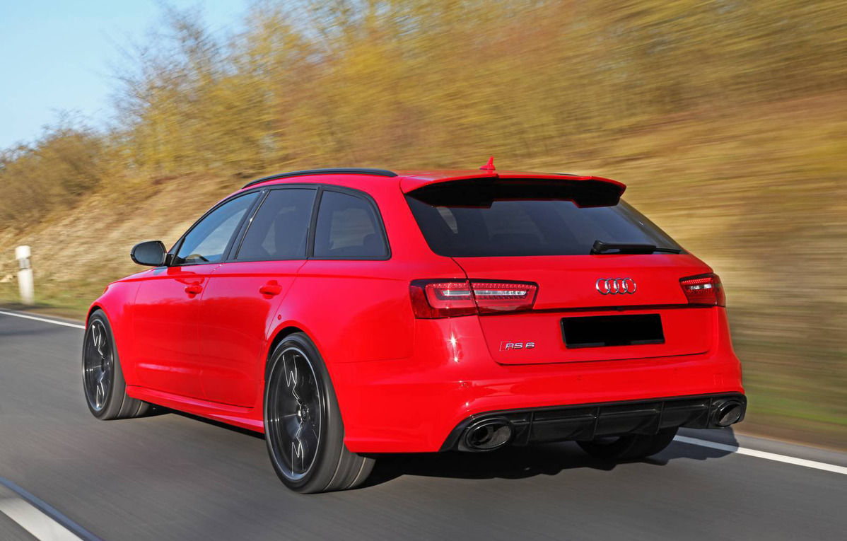 今天帶給各位一部由總部坐落於德國巴登-符登堡邦(Baden-Wuerttemberg, Germany)的改裝廠HPerformance所操刀的Audi RS6 Avant,在其耀眼的紅色塗裝之下,改裝廠為這部高性能旅行車款換上尾管口徑達70mm、附上兩種模式的排氣系統,切換模組整合於原廠MMI系統之內,便利性極佳。另外,HPerformance再透過電腦程式改寫與進氣系統強化,將最大馬力由原廠的560HP提升至700HP,扭力也躍升至87.8kgm,進步幅度相當明顯。