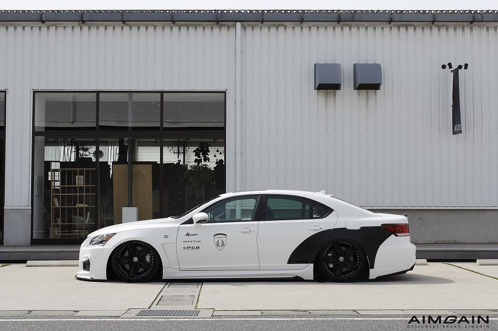 然而,專注完美、近乎苛求、本職應該是載著公司老闆出沒各大會議的新款Lexus LS460也是有人著手改裝的,而且還是眼前各位所見的這副badass模樣。這是改裝廠Aimgain的最新作品,將這部白色2014年款式Lexus LS460換上全新設計的前保桿、側裙組、後保桿與後上擾流小鴨尾翼等部品,再透過氣壓式高低可調整避震器組將車身降得貼地,另外換裝多片式黑色輪圈將輪拱塞得飽滿,讓整部車流露出濃厚的日式VIP風格,讓人眼睛為之一亮!