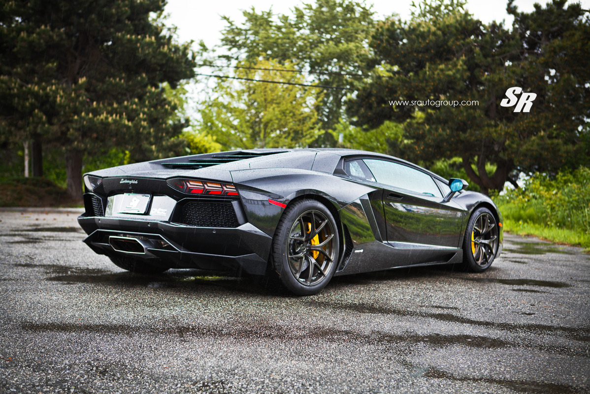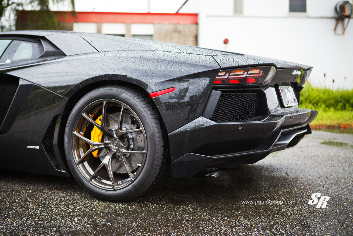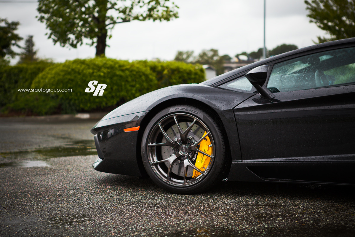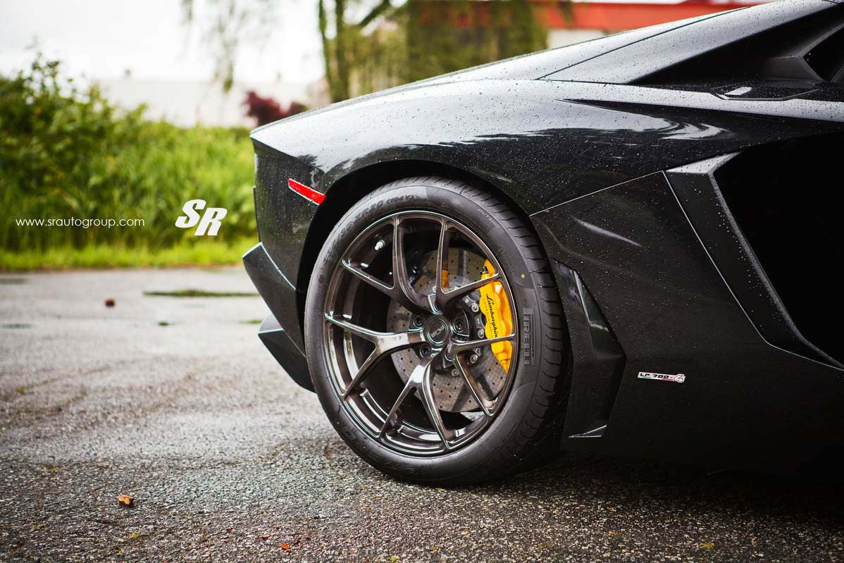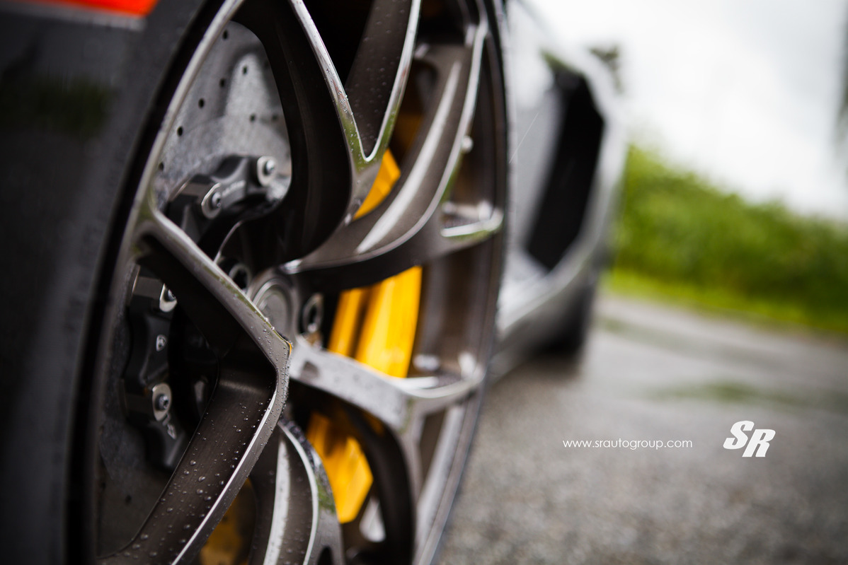 這是由改裝團隊SR Auto Group所操刀的Lamborghini Aventador LP700-4,選用PUR Wheels出品、型號4OUR的單片式鍛造輪圈,尺寸為前19x9.5J、後20x13J的前後配設定,搭配在這部煞車卡鉗選擇黃色塗裝的義大利旗艦超級跑車身上顯得落落大方,宛如原廠部品般地協調,而SR Auto Group刻意在雨中進行拍攝,別有一番風味。