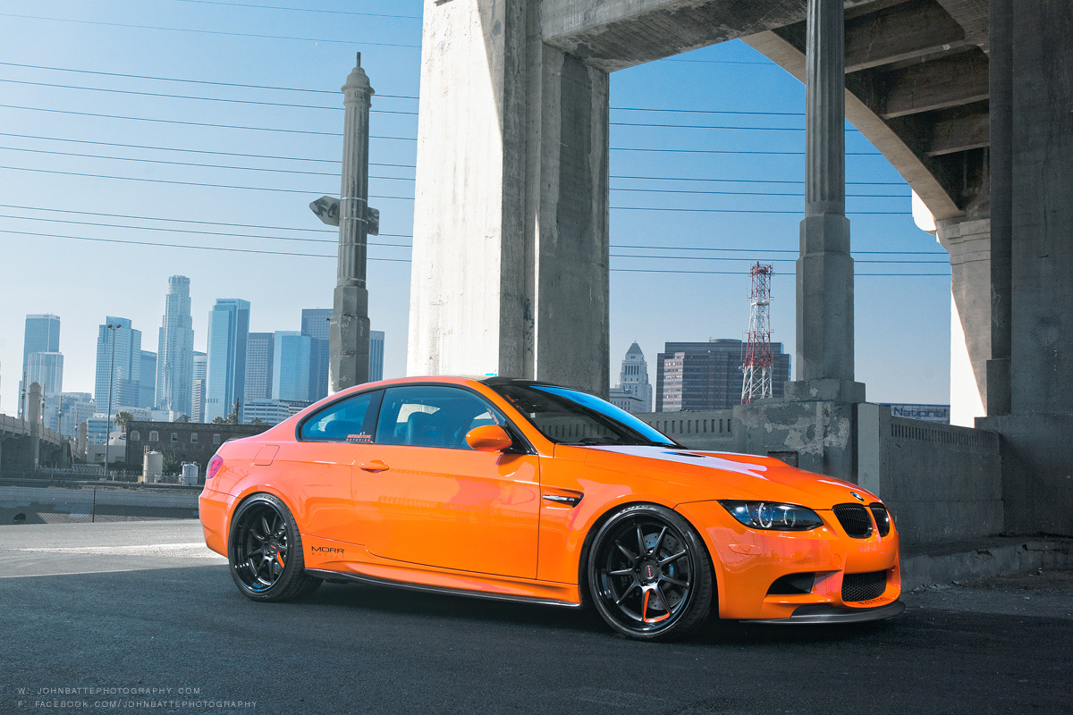 今天帶給各位一部全球限量200部的BMW E92 M3 Lime Rock Edition,採用專屬的Fire Orange火橘色塗裝,配有碳纖維前下巴、後擾流尾翼、碳纖維車頂與包含輕量化排氣管的原廠Competition Package性能套件,在出廠時與其餘普通版本的BMW E92 M3相同,搭載由前代E60 M5之5.0升V10引擎修改而來的4.0升V8引擎,最大馬力為420HP,扭力峰值為40.7kgm,紅線轉速高達8,300rpm,表現可圈可點。不過,眼前這部BMW E92 M3 Lime Rock Edition並不滿足於原廠狀態,加裝來自ESS、型號VT2-650的機械增壓套件,另外換裝ACM頭段排氣管與Akrapovic鈦合金中尾段排氣管,再透過電腦程式的調校與進氣系統的強化,將最大馬力由原廠的420HP提升至600HP。