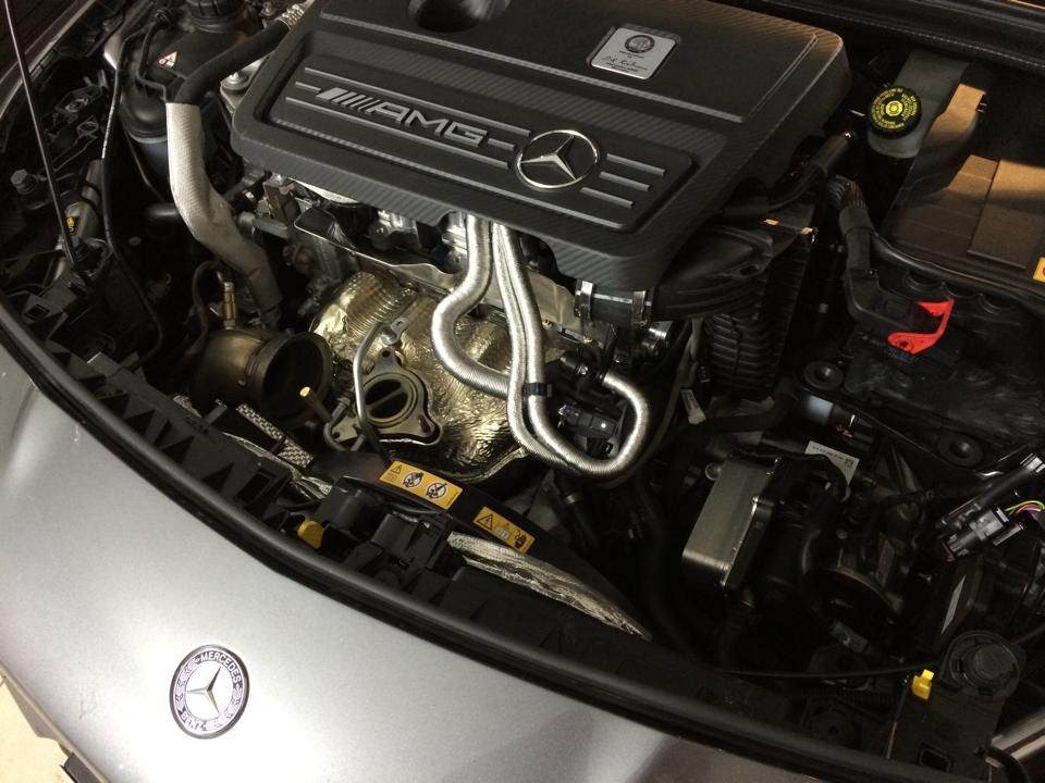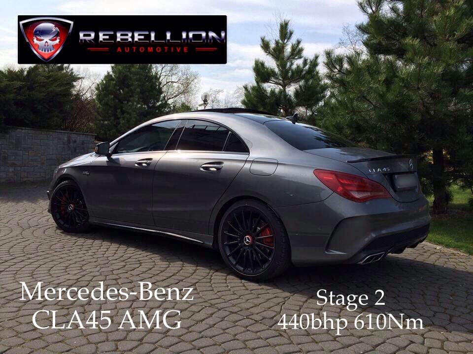 然而,這樣的動力表現對於狂熱的改裝愛好者來說依舊不夠,可能頂多在交車後的幾個禮拜內會有悸動,再來就會麻痺。有鑑於此,英國改裝廠Rebellion Automotive在經過數個月的研發之後,推出數款針對這具代號M133的引擎之動力提升套件,將渦輪增壓四缸引擎的極限再度提高。透過電腦程式改寫、渦輪機葉片改良與冷卻系統強化等工程,加上換裝效率更好的進氣系統與高性能排氣管等部品,將眼前這部鐵灰色塗裝的Mercedes Benz CLA45 AMG的最大馬力提升至440HP,扭力峰值可達62.2kgm,使得這部小型房車的百里加速成績挺進至3.8秒,由靜止加速至時速200km/hr也跑入13秒內,幾乎可以說是超級跑車等級的性能表現!