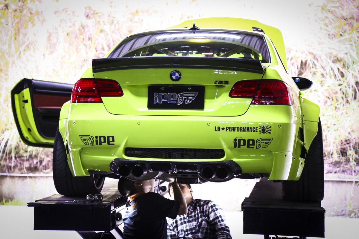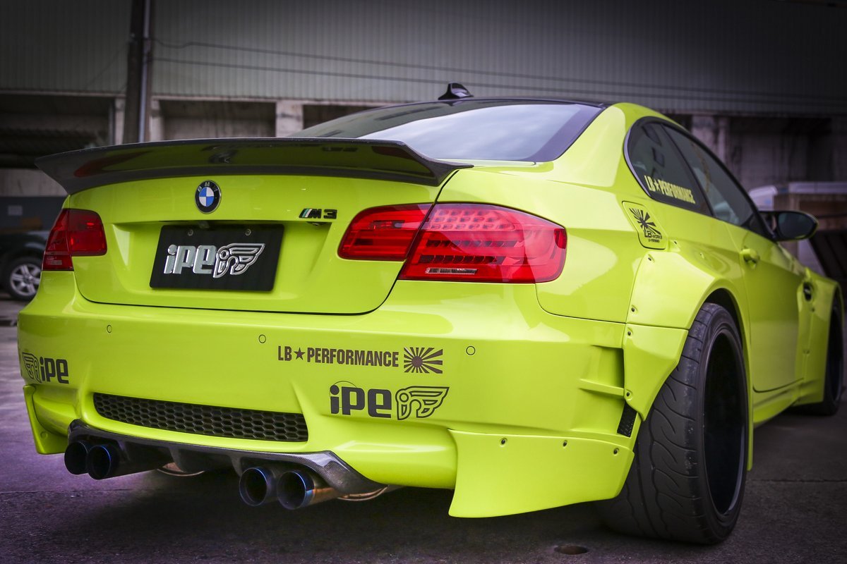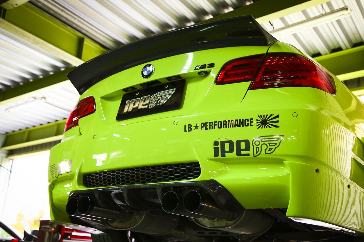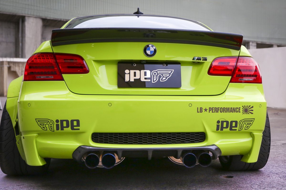 今天帶給各位一部由本地排氣管改裝品牌iPE Innotech所推出的一部萊姆綠色BMW E92 M3,身穿來自Liberty Walk Performance的寬車體套件,包含碳纖維前下巴、寬體葉子板套件與碳纖維後小鴨尾翼等,引擎蓋與後下擾流板則是選用來自Vorsteiner的碳纖維部品,搭配HRE Performance Wheels、型號C103的前後配、大內凹黑色輪圈與Yokohama Advan Neova AD08的高性能跑胎,煞車系統選用StopTech的部品,在耀眼車身顏色的襯托下,顯得霸氣騰騰。