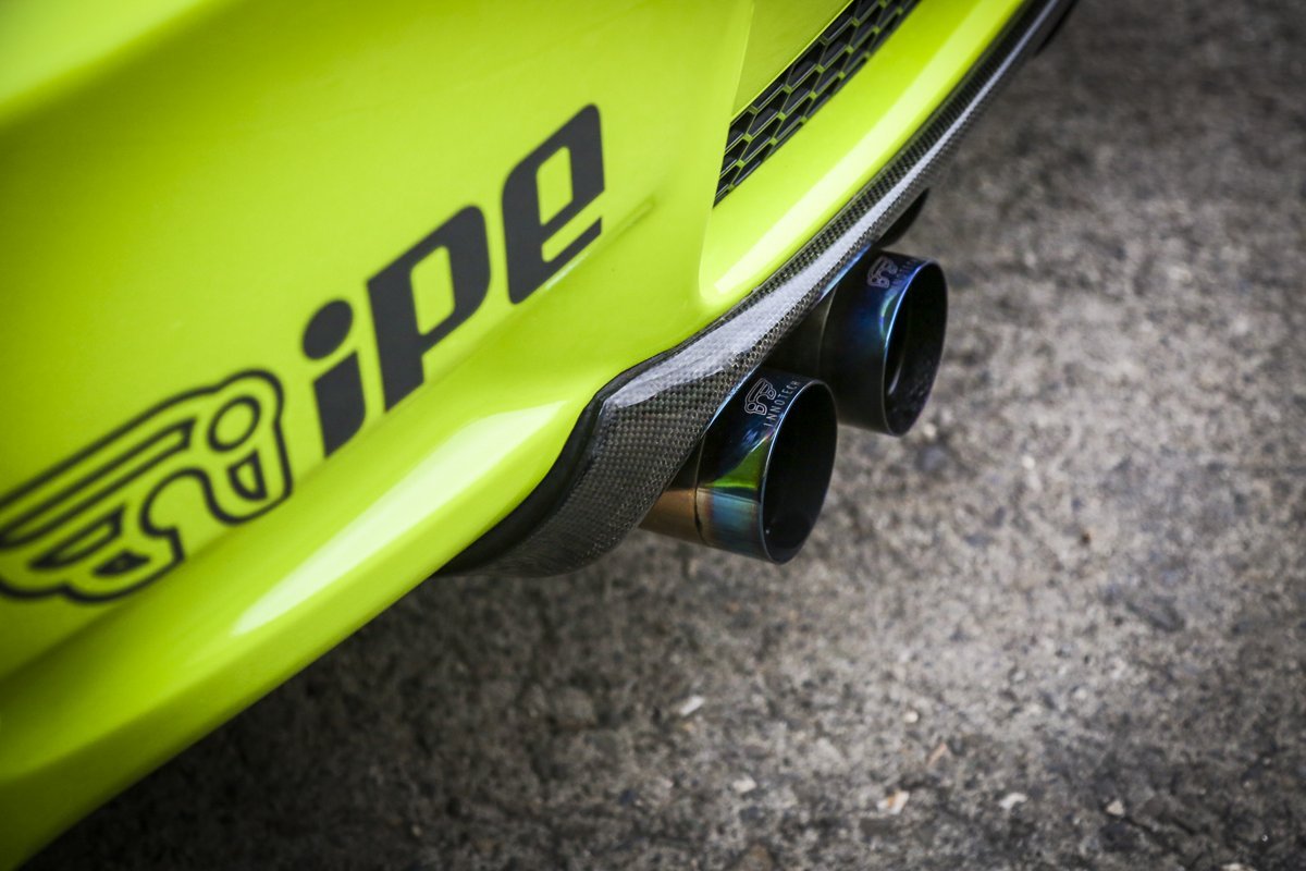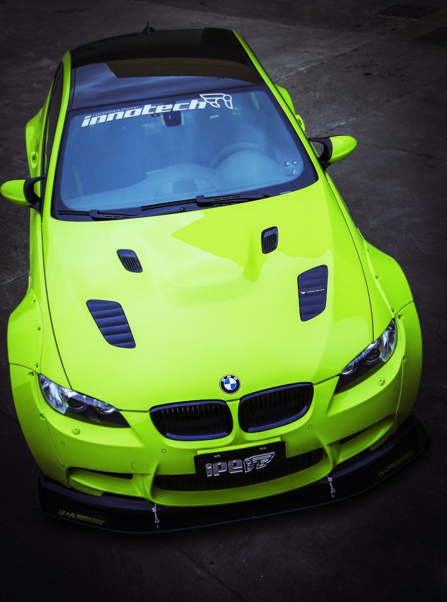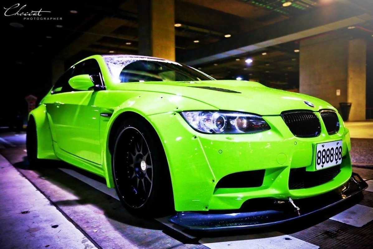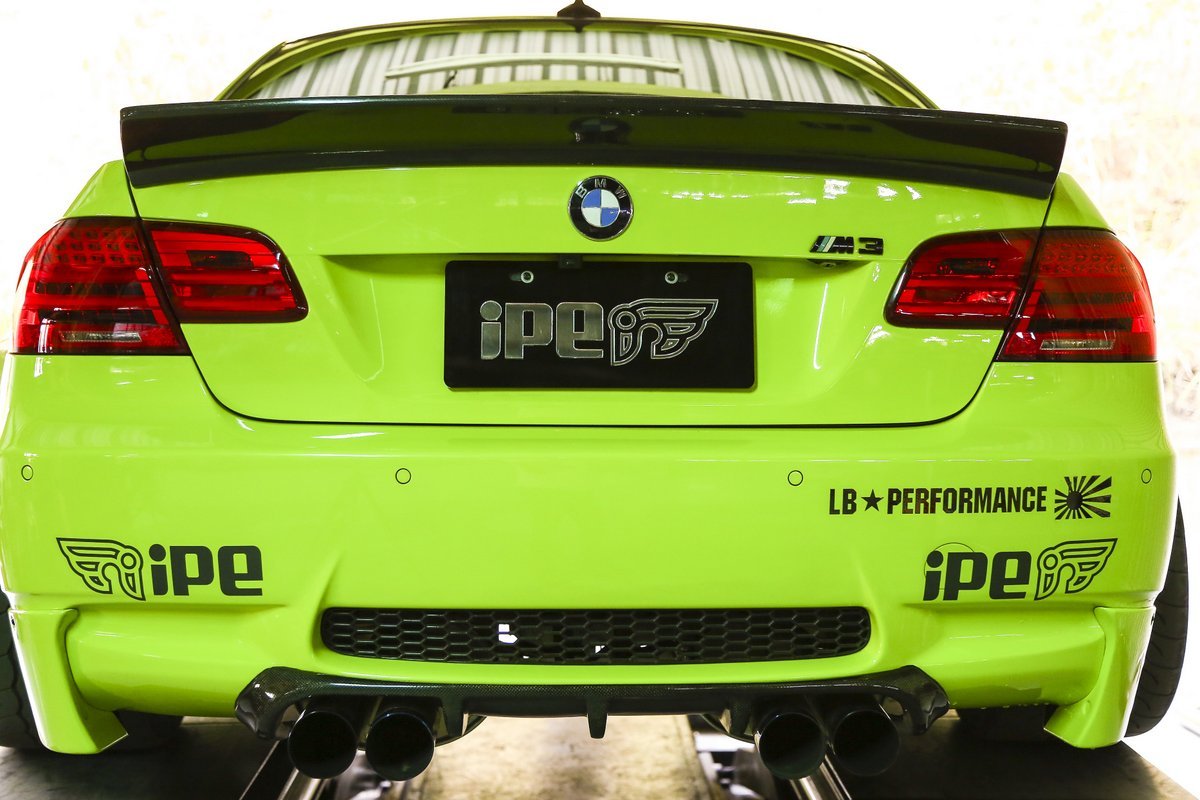 今天帶給各位一部由本地排氣管改裝品牌iPE Innotech所推出的一部萊姆綠色BMW E92 M3,身穿來自Liberty Walk Performance的寬車體套件,包含碳纖維前下巴、寬體葉子板套件與碳纖維後小鴨尾翼等,引擎蓋與後下擾流板則是選用來自Vorsteiner的碳纖維部品,搭配HRE Performance Wheels、型號C103的前後配、大內凹黑色輪圈與Yokohama Advan Neova AD08的高性能跑胎,煞車系統選用StopTech的部品,在耀眼車身顏色的襯托下,顯得霸氣騰騰。