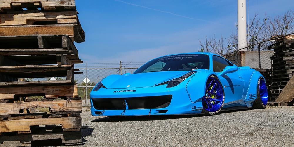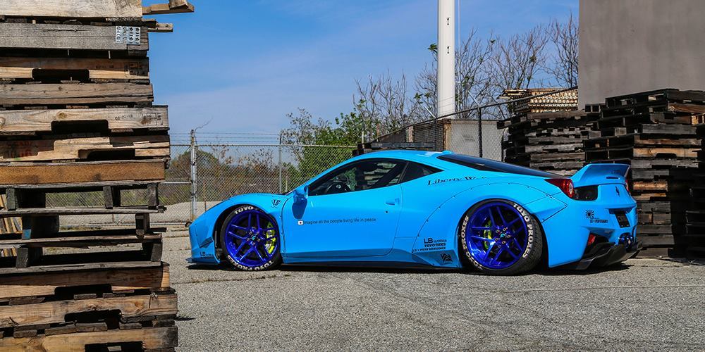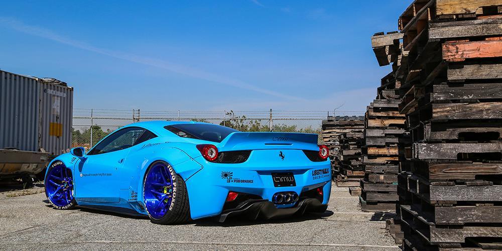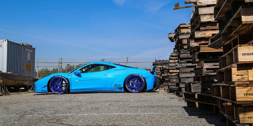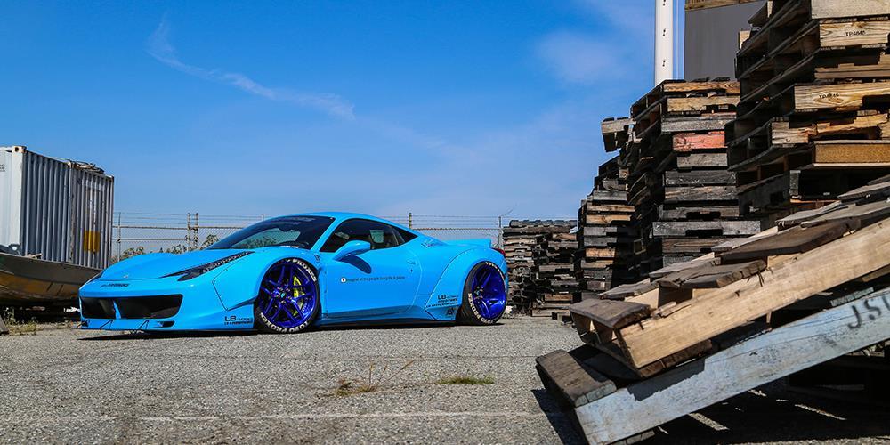 在去年精彩無比的美國拉斯維加斯SEMA改裝車展當中,最具話題性的車款之一便是由日本改裝品牌Liberty Walk Performance所操刀設計的Ferrari 458 Italia,當時採用較為內斂的鐵灰色塗裝,如今該部明星展示車已經被換成亮眼的淡藍色塗裝,再度現身時已是眼前這番模樣。