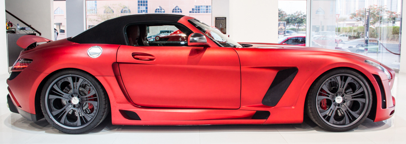 今天帶給各位的便是一部FAB Design Jetstream SLS AMG Roadster,車身採用消光紅色塗裝,配上FAB Design全車空力套件,包含附上直列式LED日間行車燈的前保桿、寬車體葉子板、側裙組與後下擾流板等部品,搭配可變閥門高性能四出排氣管,跑格十足。除了外觀方面的進化之外,FAB Design也針對動力部分施以強化工程,透過電腦程式改寫、進氣系統強化與排氣管換裝,將這具6.2升V8自然進氣引擎由原廠的571HP提升至610HP,使得這部FAB Design Jetstream SLS AMG Roadster的百里加速成績挺進至3.6秒,極速可達325km/hr。