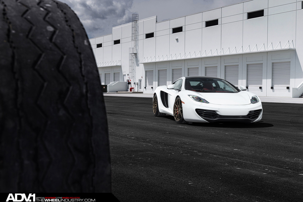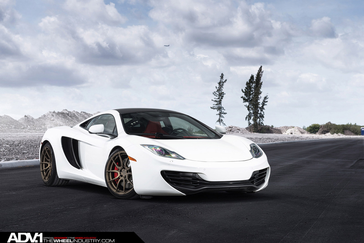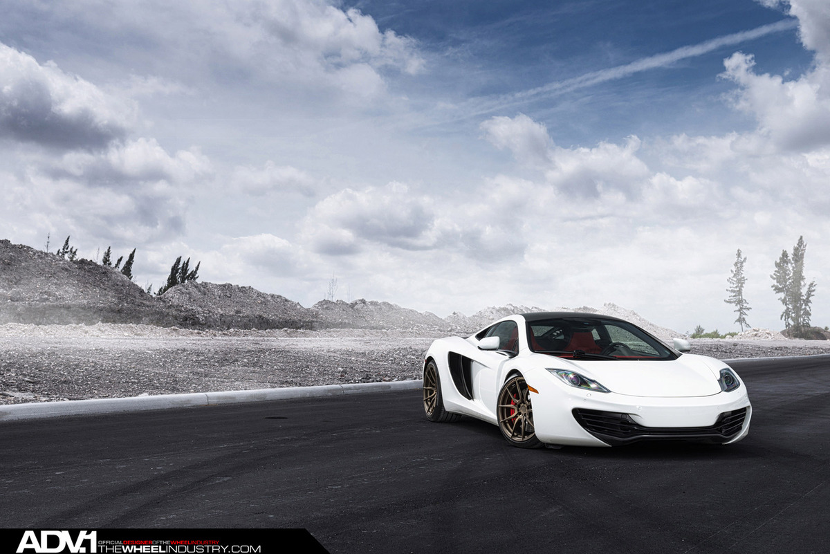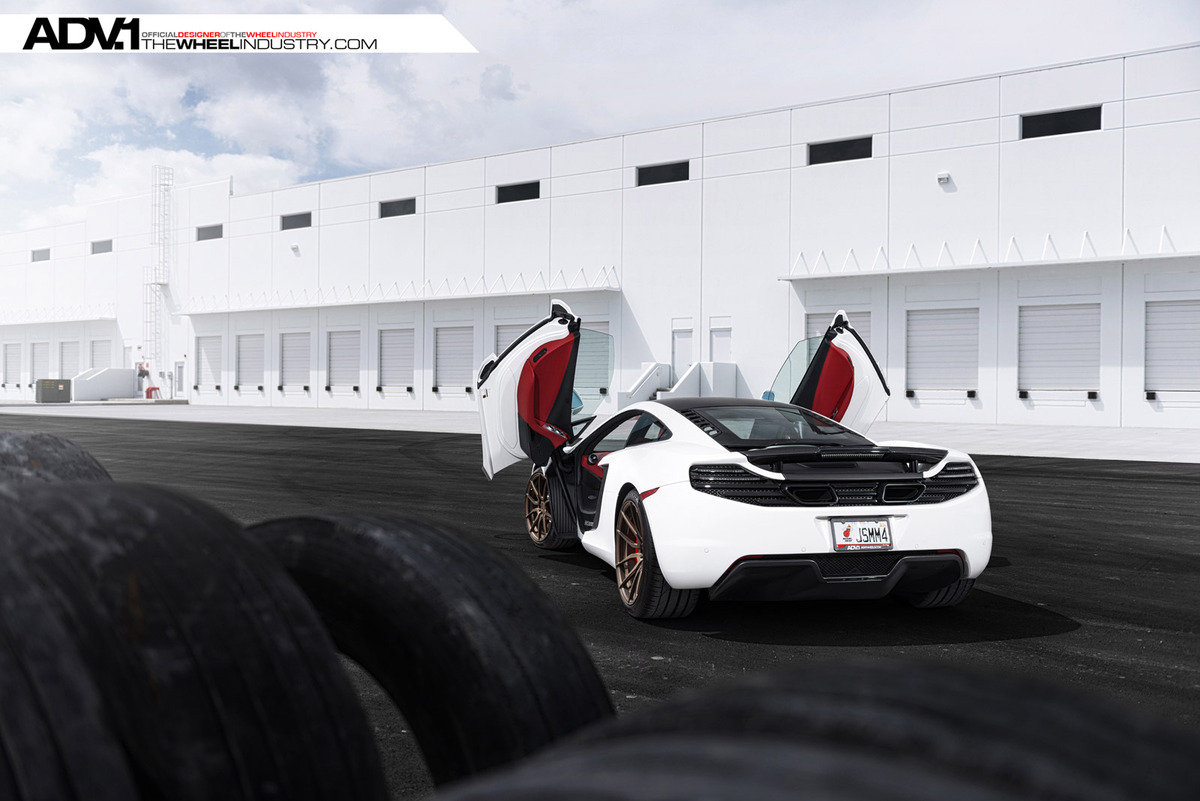 從性能的角度來看,新登場的McLaren 650S與12C其實沒有差別很多,要增加25HP馬力可能透過電腦程式調校便可達到,因此,簡單來說,650S可以說是改了車頭、多出數樣選配部品的12C。所以,現在持有McLaren 12C的朋友們無須太過沮喪,反而你們有了改裝愛車的動機,而且McLaren應當要感謝這類首批捧場的貴客們。今天帶給各位一部由輪圈品牌ADV.1 Wheels所提供的白色塗裝McLaren 12C,內裝採用局部紅色真皮配置,呼應紅色塗裝的煞車卡鉗,另外選用ADV.1 Wheels、型號ADV5.01 MV1 CS的輕量化古銅色輪圈,尺寸為前19x9.5J、後20x12J的前後配設定,讓整部車散發出濃烈的賽車氣息。